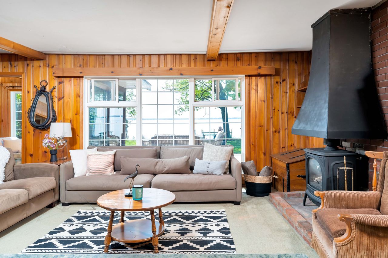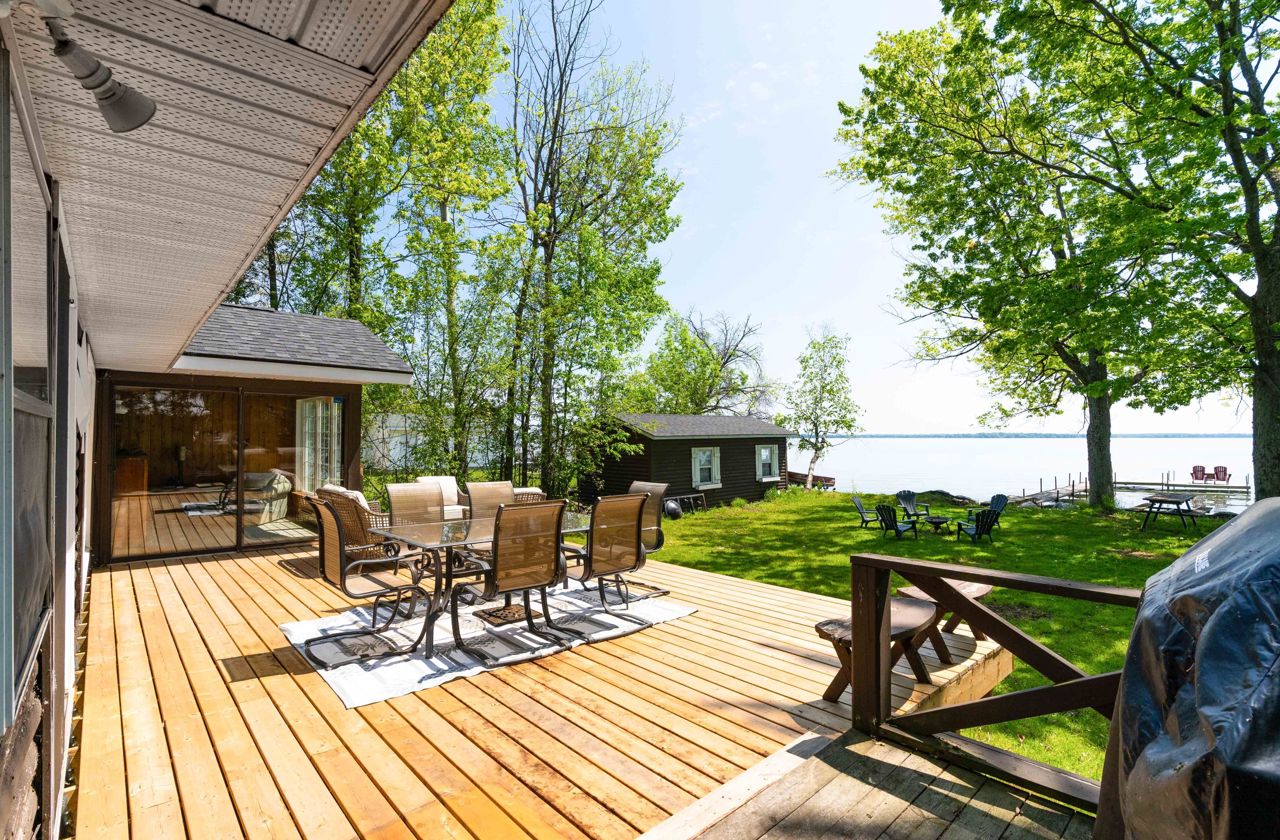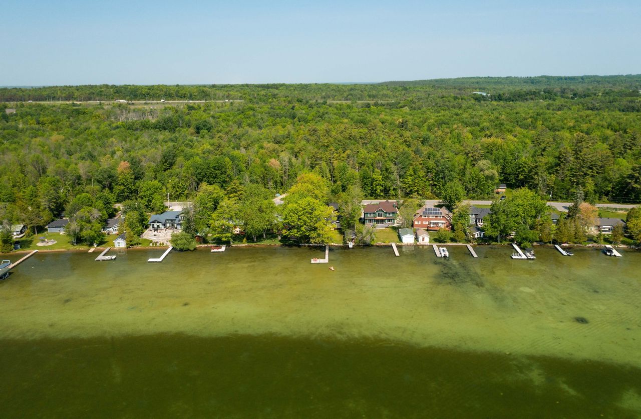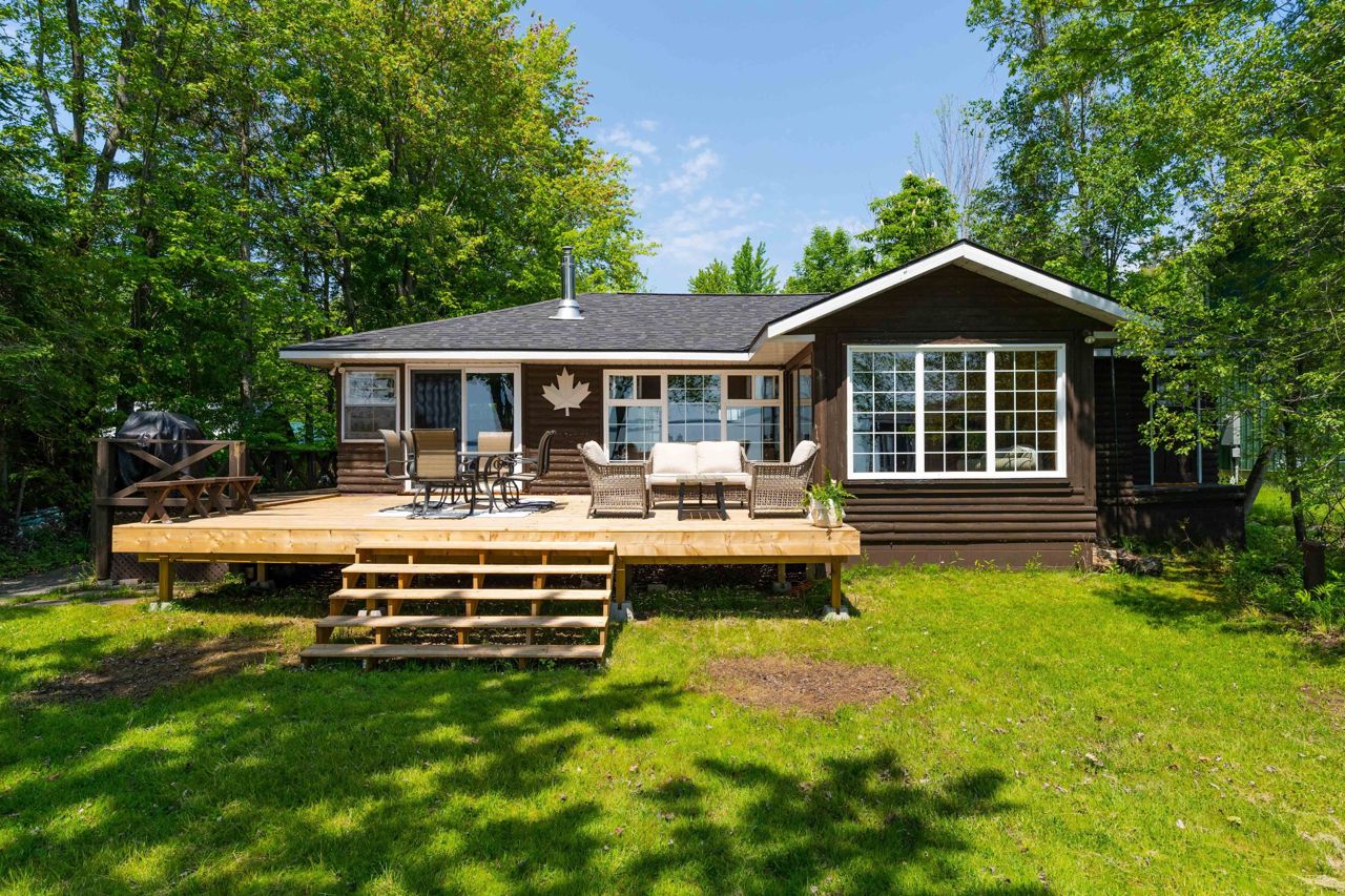 LAKE COUCHICHING waterfront cottage with magical South, East views! This classic winterized, 3 bdrm, 2 bathroom with ensuite sits on a stunning private, level lot (75 x 200) on Wilson Point Orillia. Large picture windows overlook the 75' foot sandy, waterfront w/ updated stone retaining wall, standing dock and boat house. Generous sized bedrooms, open concept living / kitchen with walk out wrap around deck and wall to wall windows will a separate walk out to the waterfront deck make this a perfect place for entertaining. The double garage features a separate space, previously used as a bunkie for extra guests. 6 car parking with paved driveway back onto the quiet street, ideal for biking and walking or shoot some hoops in the driveway. Enjoy area features like the Grant Wetlands Nature Reserve, Orillia Millennium Trail, boat or bike to downtown Orillia for dining, shopping and entertainment. Don't miss this gorgeous property just 1.5 hours from GTA in the up and coming area of Orillia