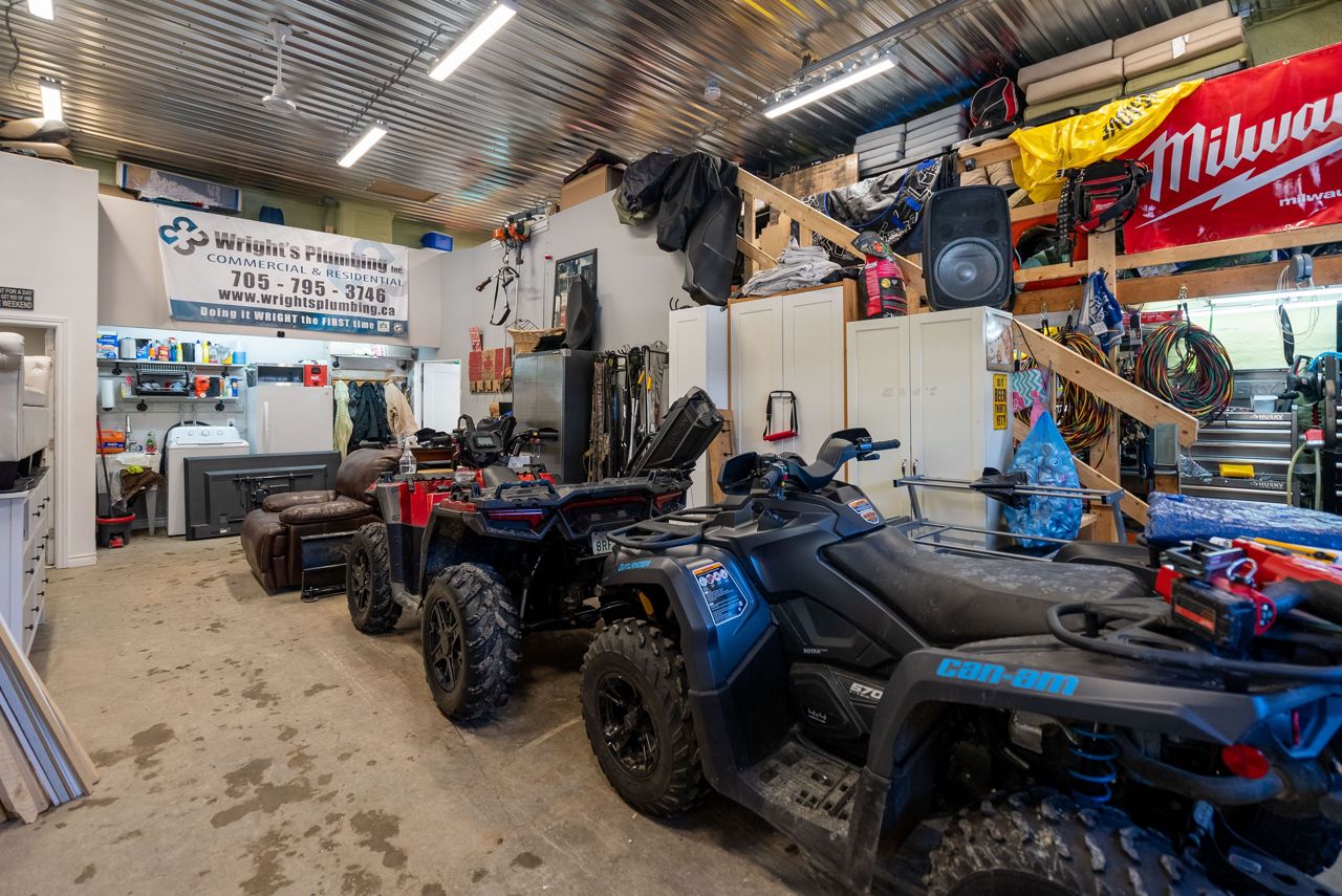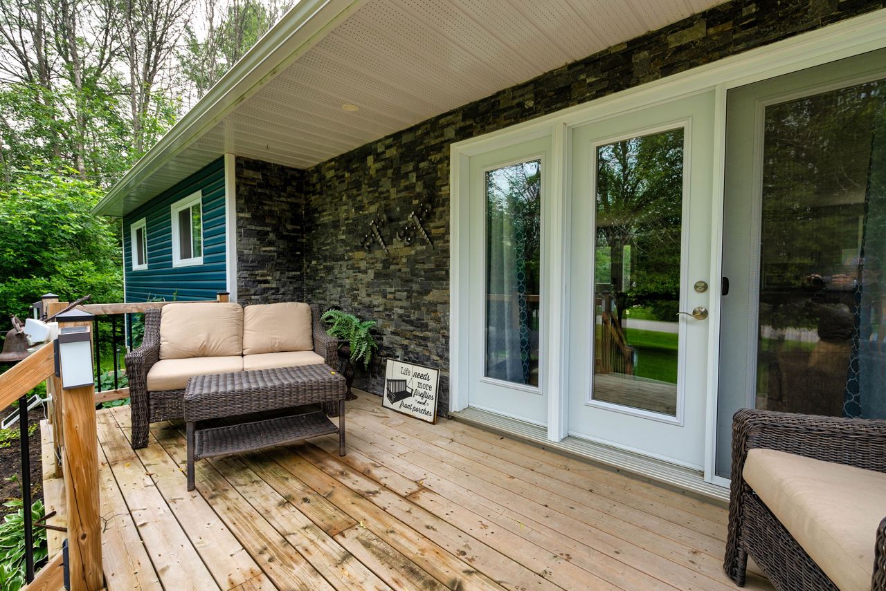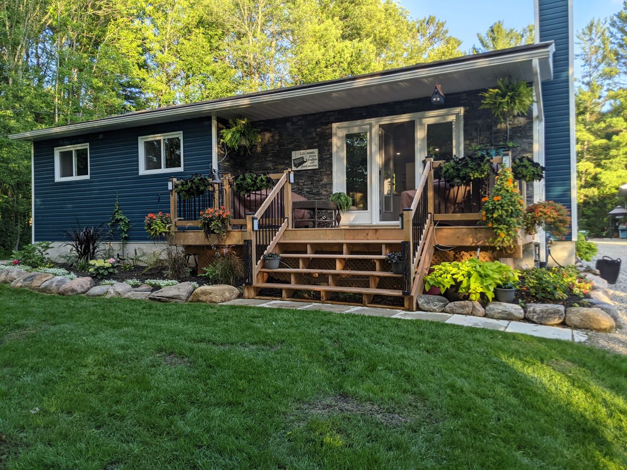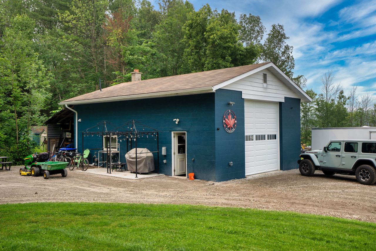 Sun-Filled Charming Bungalow will warm your soul as your enter this Farmhouse meets Modern cozy family home, offering over 1/2 acre treed lot for your privacy and enjoyment. Incredible 26' x 36' Heated workshop w Office, washroom & Mezzanine. Every inch of this home has been perfectly thought through, utilizing space to perfection. Renovated & upgraded top-bottom, Open Concept kitchen, new appliances, electrical/pot lights, lower level fully finished and Master Ensuite to Impress! New Drilled Well, all New Plumbing/Electrical, Furnace 2020, New water filtration system w UV & RO, Water softener, Upgraded insulation, Invisible Dog Fencing.Newly built decks surrounding the home, Hot Tub, Lawn and Perennial Gardens irrigation system, See Full list of upgrades!