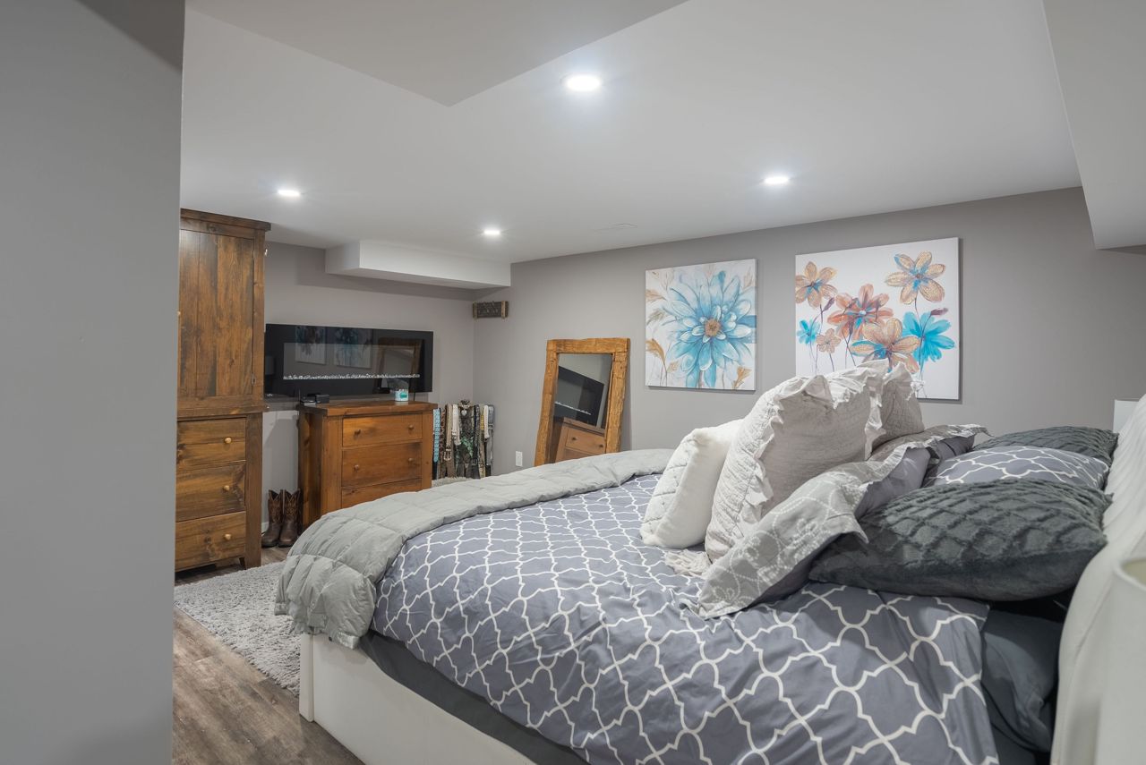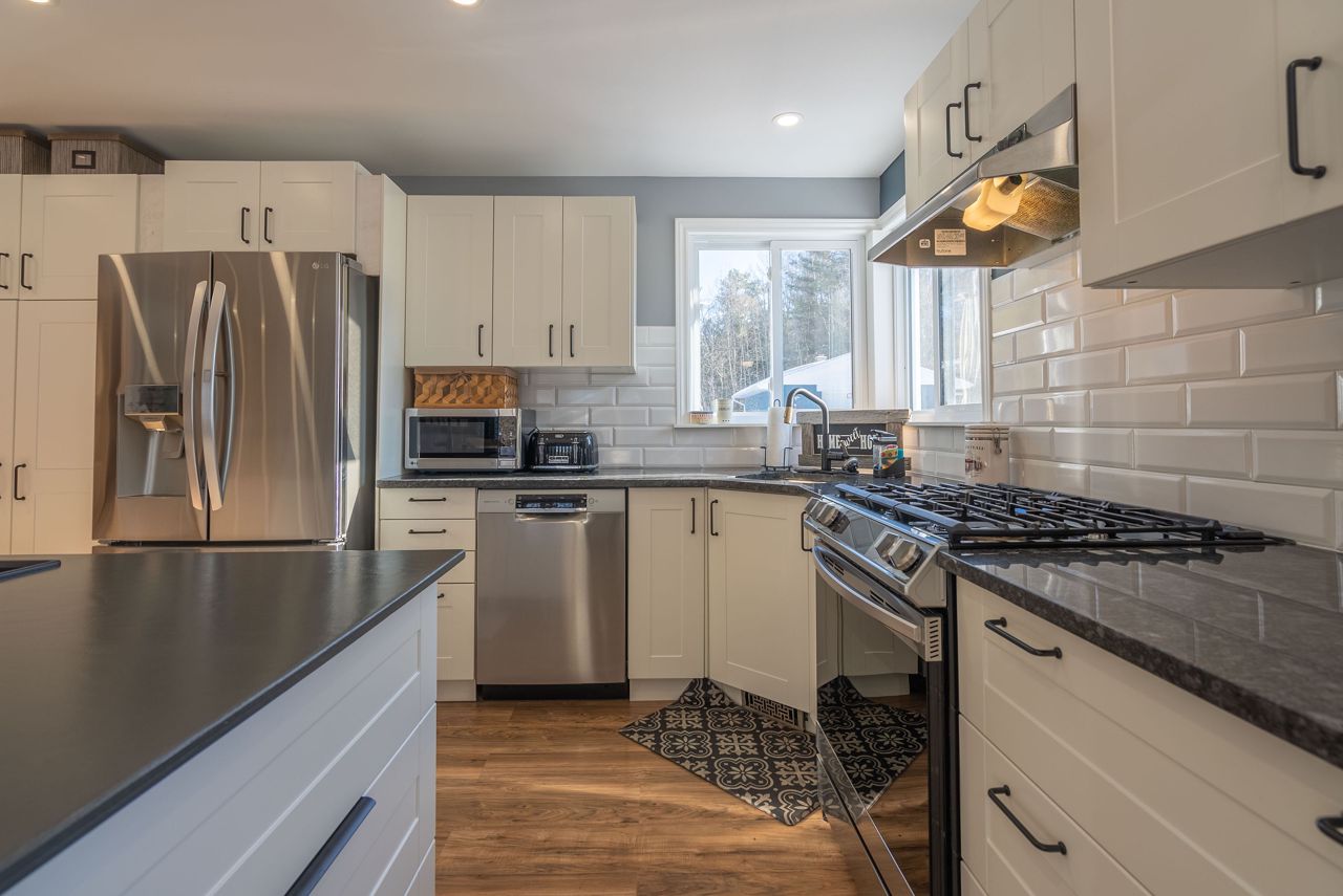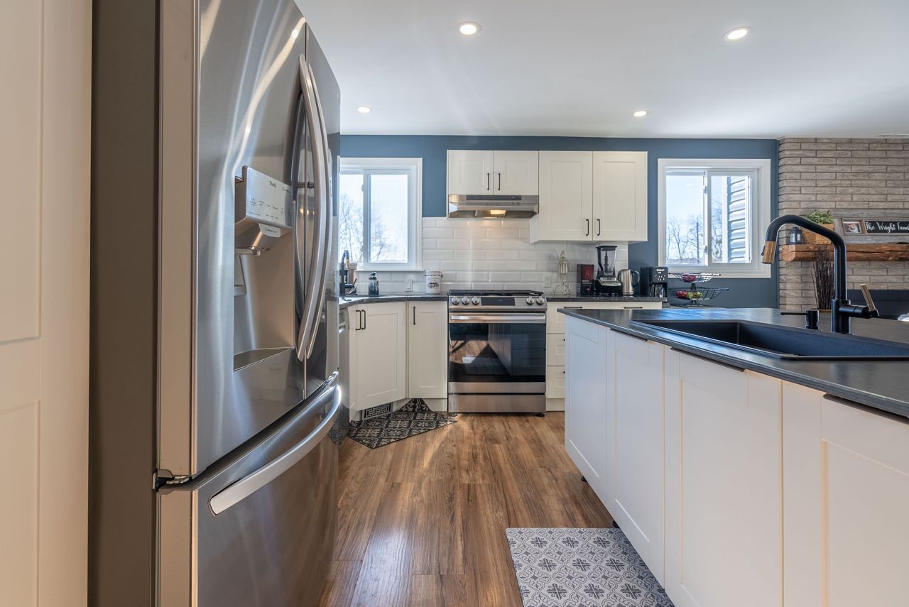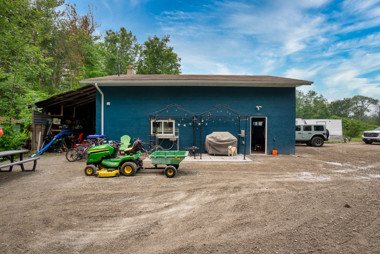Sun-Filled Charming Bungalow will warm your soul as your enter this Farmhouse meets Modern cozy family home, offering over 1/2 acre treed lot for your privacy and enjoyment. Incredible 26' x 36' Heated workshop w Office, washroom & Mezzanine. Every inch of this home has been perfectly thought through, utilizing space to perfection. Renovated & upgraded top-bottom, Open Concept kitchen, new appliances, electrical/pot lights, lower level fully finished and Master Ensuite to Impress! New Drilled Well, all New Plumbing/Electrical, Furnace 2020, New water filtration system w UV & RO, Water softener, Upgraded insulation, Invisible Dog Fencing.Newly built decks surrounding the home, Hot Tub, Lawn and Perennial Gardens irrigation system, See Full list of upgrades!