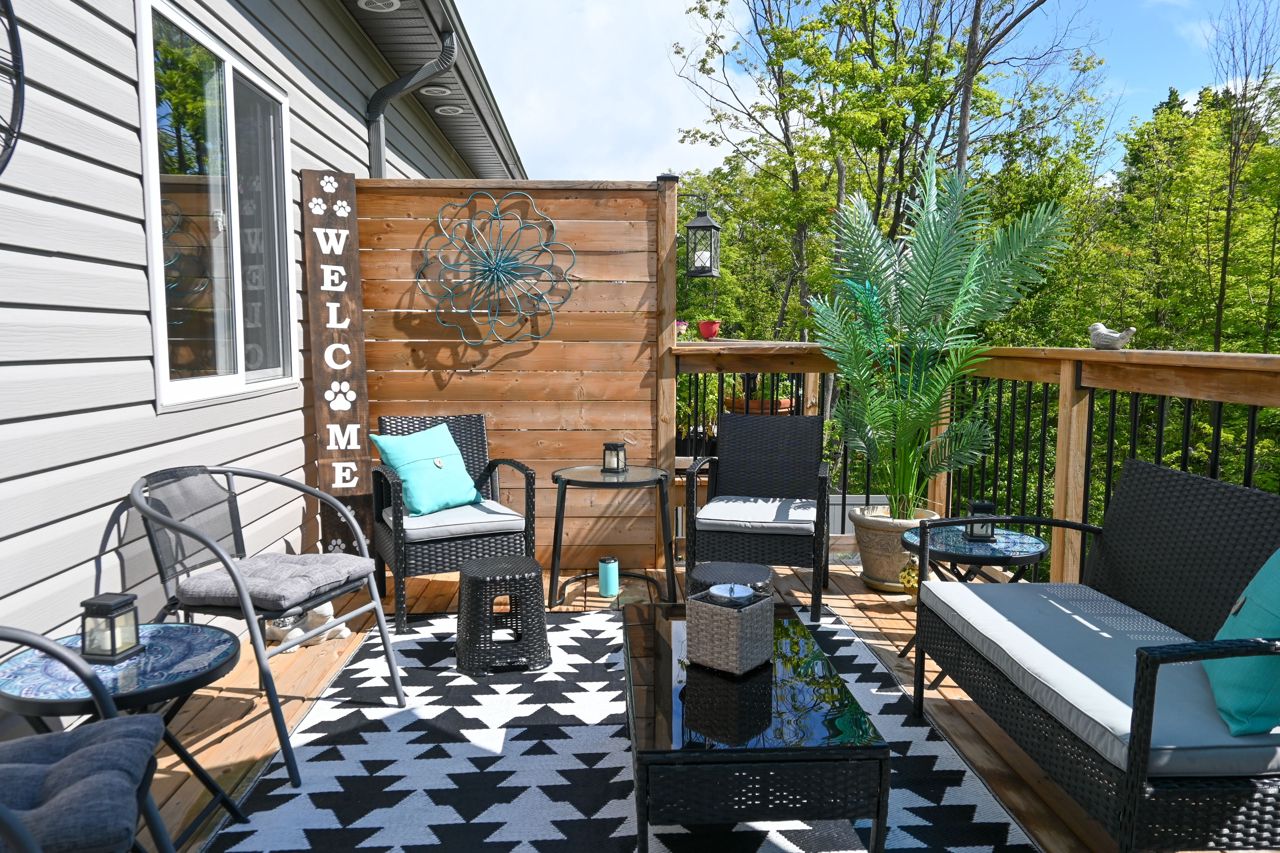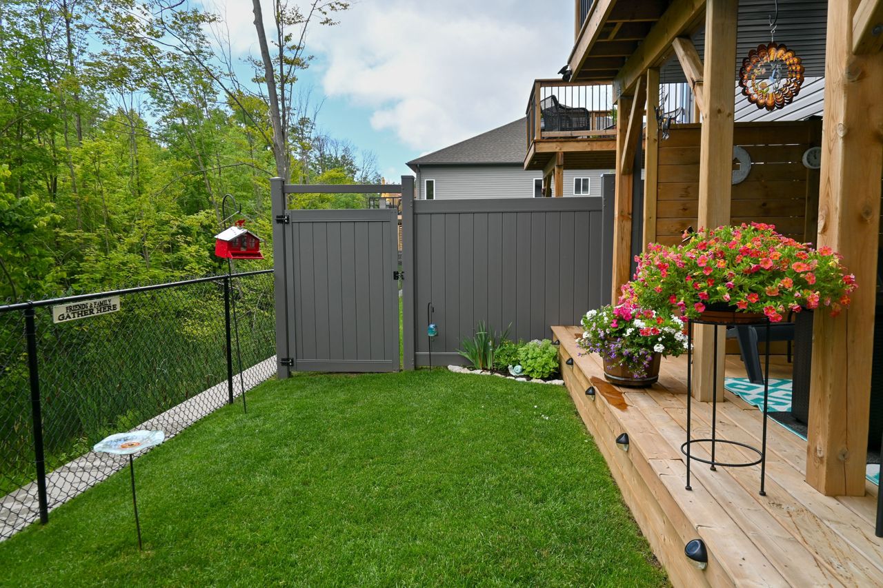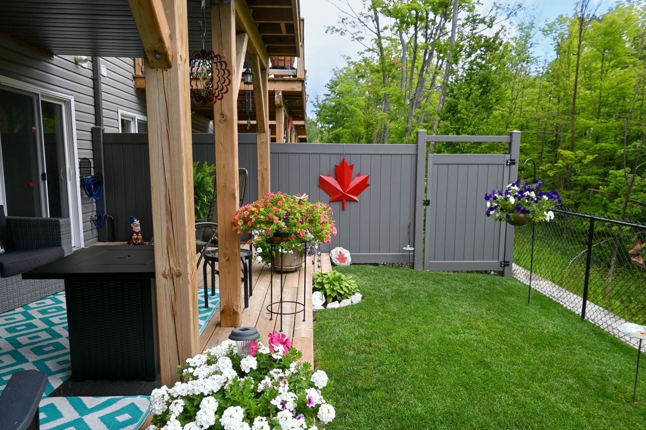 waterproof covered lower deck and beautiful fenced-in backyard.Convenience is ensured with easy access to Highway 11, ample visitor parking, and steps to the millennium trail system for scenic walks. Don't miss the opportunity to own this well-cared-for home!