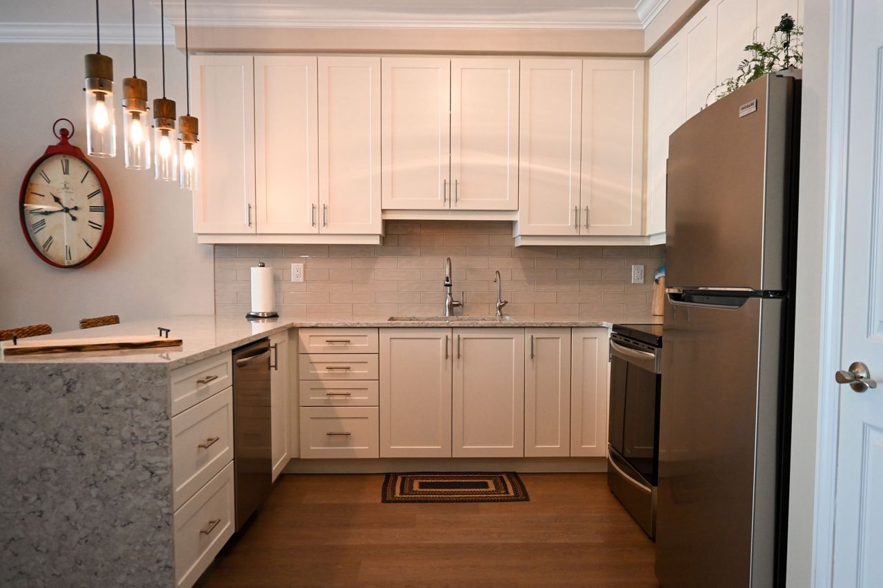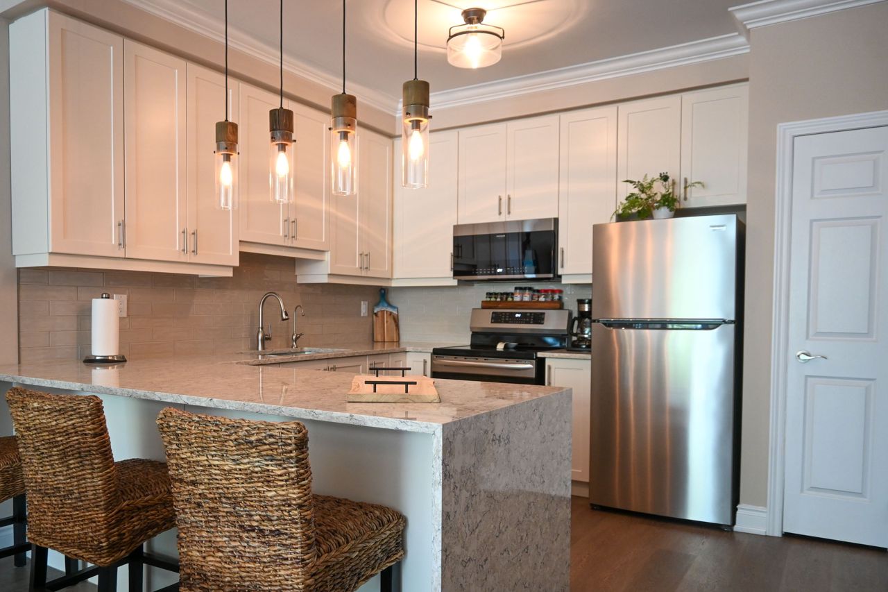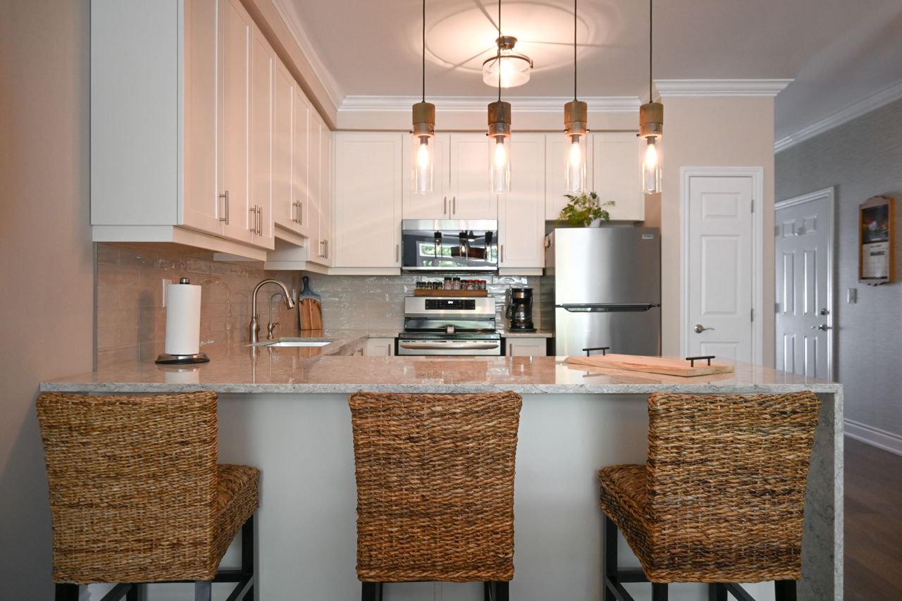 with barstool seating, and updated appliances, including an induction oven with an air fryer. Relax in the