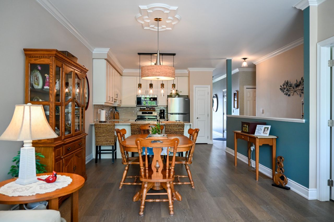 crown molding and upgraded lighting throughout the home. Enjoy the combined living room and dining area