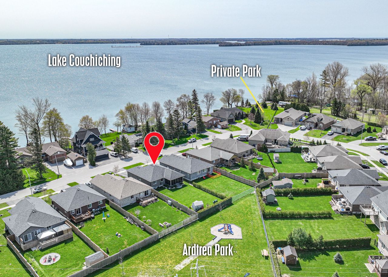 Your deeded Lake Couchiching waterfront home (deeded for 26 homes) minutes north of Orillia. Country/urban setting. Convenient municipal services in a lakeside community. Whether a family home or retiring, this exceptionally maintained, fully finished, all brick ranch bungalow is in a quiet, friendly neighbourhood. LOT: Fully fenced, level, large backyard backing on to a small park/playground. FLOOR PLAN: Over 2600 sq ft of finished space. Open concept, 3 + 1 bedroom, 2 1/2 baths. FEATURES: Over $75,000.00 in extras. Hardwoods/oak- iron picket stairwell quartz/pot lighting/upgraded window/walk-in shower are just some of the beautiful features. BONUS: 3 season sunroom adds bug free entertainment. GOOD TO KNOW: Documentation gives additional comfort for a Buyer looking for a turn-key, tastefully decorated, functional home that is professionally landscaped & well cared for. WATERFRONT: Your deeded access is 4 doors away! Kayak/paddle board/swim or just enjoy the views from the dock.