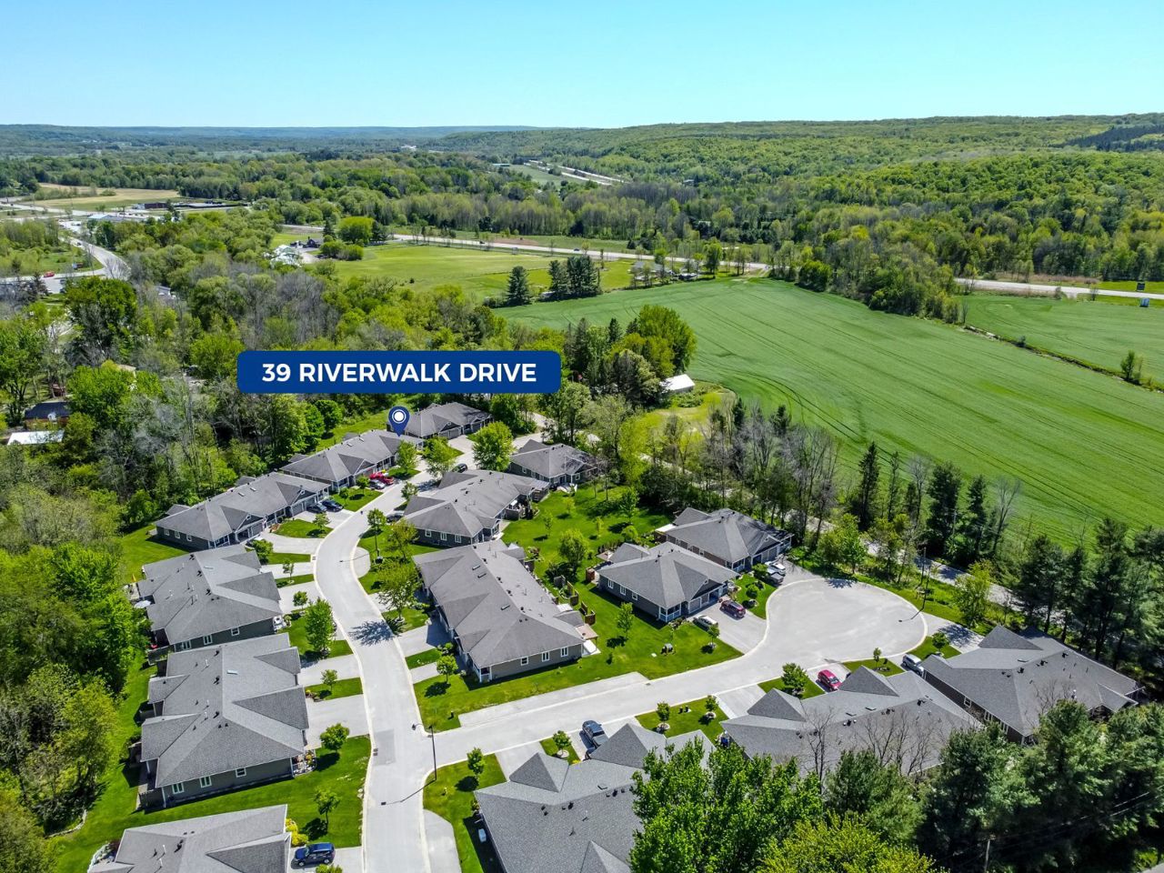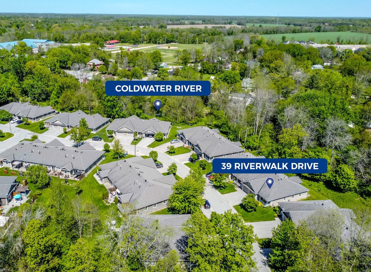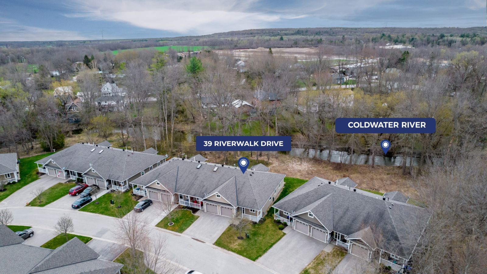 RIVERWALK ESTATES ADULT LIVING RIGHT ON THE COLDWATER RIVER! Welcome home to 39 Riverwalk Drive in Coldwater - a stunning end-unit bungalow townhome. Recently updated with fresh paint and newer laminate flooring, this home features an open-concept kitchen, a well-designed living room with 9-foot ceilings and a dining room, and a peaceful primary bedroom with an ensuite and walk-in closet and a breathtaking view of the Coldwater River. Enjoy the convenience of a single-car garage with cabinets and overhead storage and take advantage of the modern conveniences of Coldwater, with shopping and restaurants within walking distance. This exceptional home is ideal for independent living in a low-maintenance, peaceful, and quiet adult community. This house is a must-see for anyone looking for their #HomeToStay.