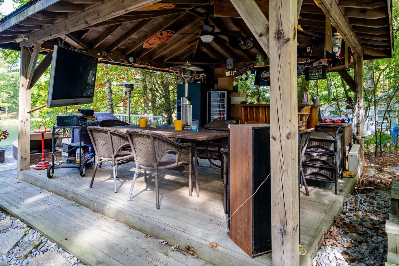 Prime Green River waterfront with 133 Ft. of shoreline. Level entry sand beach is great for kids and swimming. Lovely four season home or cottage with rustic charm sits on a beautiful private .88 Acre lot. 4 bedrooms, 2 bathrooms and main floor laundry. Country kitchen with pine floors and kitchen cabinets. Quartz countertops and glass tiled backsplash. Living room has a cozy wood stove to take the chill off. Enjoy swimming, kayaking, canoeing, paddle boarding and boating on this scenic river then relax on the deck, in the hot tub or in the gazebo overlooking the river. End your perfect day roasting marshmallows around the firepit and star gazing. Just minutes to Washago with convenience of all amenities and a short drive to Orillia and Hospital. Come view this gem and make your dream of waterfront ownership a reality.