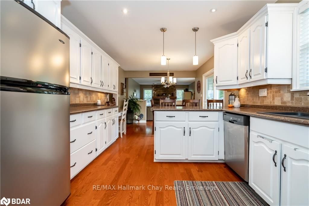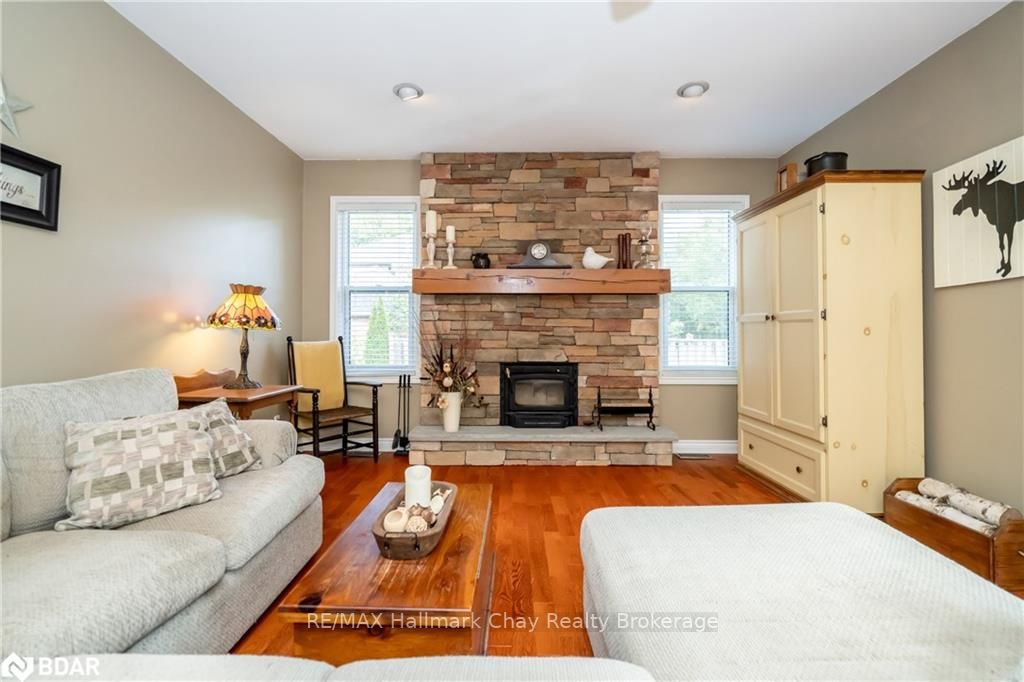 Pride of ownership well maintained 3500+ 2 story home in the Bass Lake Woodlands. The wrap around porch will draw you in to this beautiful home. Hardwood through out the main floor. Sunken family room with woodstove insert and walk out to deck off Kitchen area. Large eat in kitchen area with 2nd walkout to deck over looking a private fenced yard and hot tub. Kitchen equipped with stainless steel appliances. Separate Dining room. Very welcoming front living room with 2 walk outs to front porch. Main floor offers laundry room, 2 pc bathroom and Inside entry to 2 car garage. Lower level recreation room has gas fireplace on thermostat, 5 th Bedroom, office, bathroom rough in and unfinished space for ample storage. Master offers walk in closet and 3 piece ensuite. 4 bedrooms on upper level. Nicely updated larger main 4 piece bathroom. Seller has contracted roof shingles to be replaced in 3 weeks time, new roof shingles to be installed.