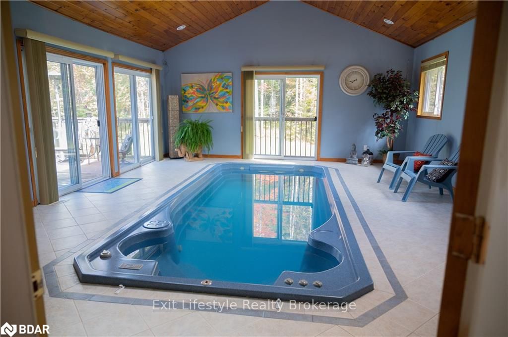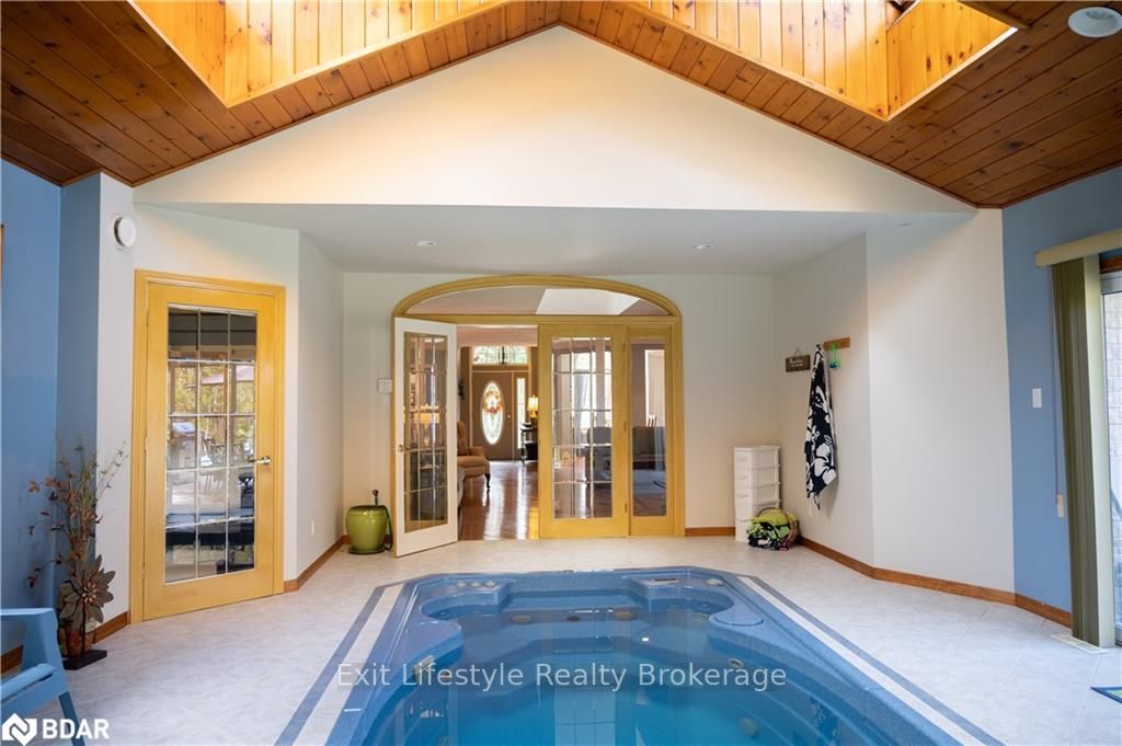 Welcome to this fully finished bungalow located on a large private treed lot with 5 bedrooms and 3 baths. Inside you will find that this home is an entertainer's dream with its culinary-inspired kitchen, multiple living and dining spaces to host family or guests, and its most unique feature, an indoor swim spa. Located in close proximity to all amenities, it is the perfect combination of rural and urban. With a newer roof, expansive decking, and 3 car garage, what more can you ask for? Be sure to check out this amazing bungalow's features in person.