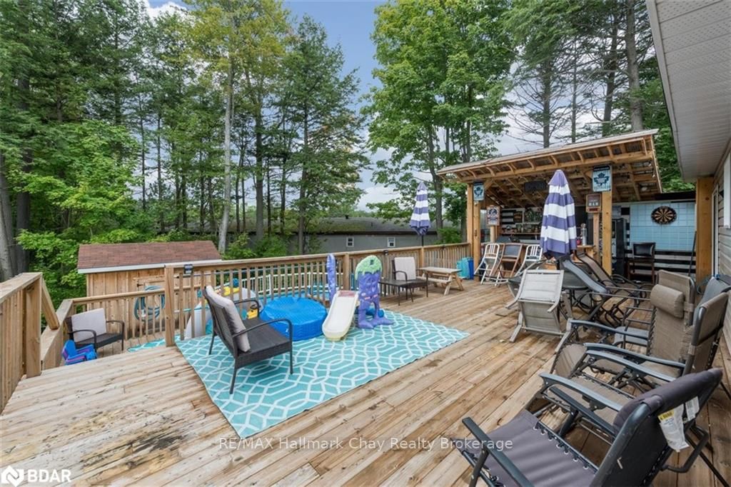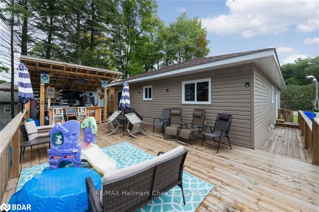 Five years new, deeded water access and with all the goodies. Custom-built raised bungalow with open concept living room, dining room custom kitchen. Three spacious bedrooms lead out to an over-sized custom deck and 18 foot above ground pool. The back yard also offers a custom-built bar. The lower level has an over-sized in-law apartment currently rented for $1200 per month plus an exercise room or potential office area or rec room. 50ft by150 ft lot only minutes from hwy 11, Orillia, the areas best fishing, skiing and so much more.