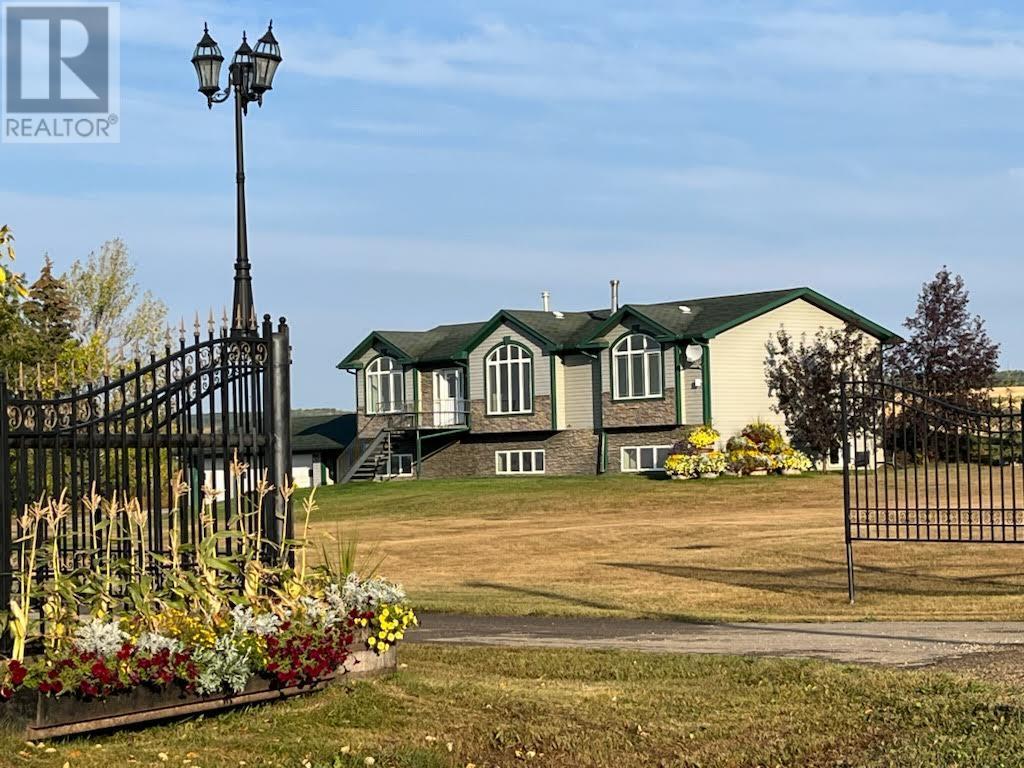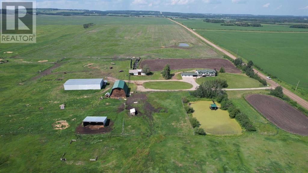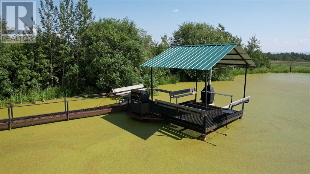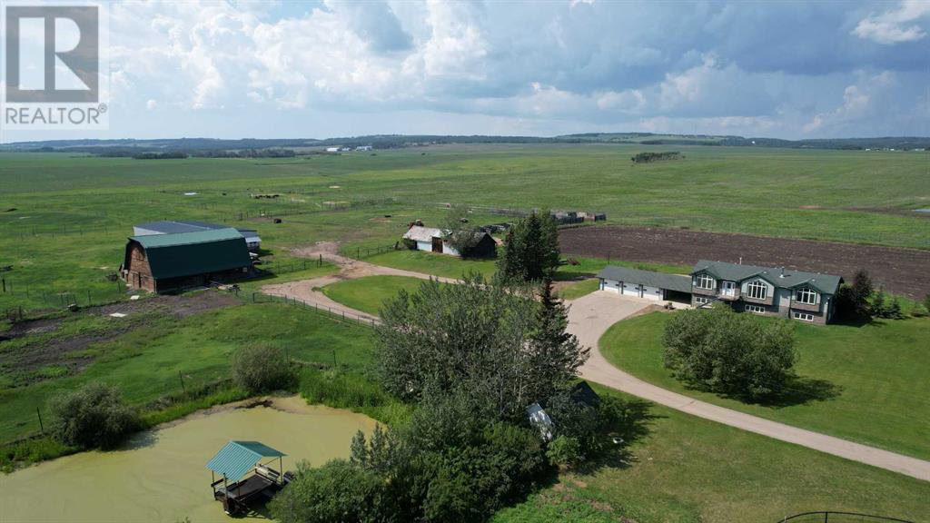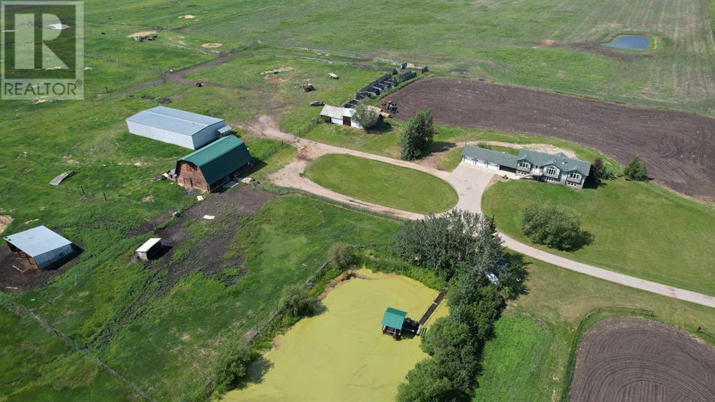 This Beautiful property located in Tee Pee Creek is fully fenced, with 3 bedroom 2.5 baths on the main floor with vaulted ceilings in the main living area and a gas fireplace. The views from the large front windows are heavenly with amazing views all around the home you can see the kids/grandkids playing and your livestock out in the fields. You can walk down to your own pond and have a BBQ or fire on the dock. The fully finished basement in this home boasts 9' ceilings with large windows, in-floor heating, 2 more bedrooms, den and 3-piece bath. Large open space with room to add in a theatre room if you are a movie buff. This property doesn't disappoint! A short walk from the house is a large barn that can be great income potential the upper floor has been outfitted to host barn dances or weddings there is even a bar area. You have all the amenities for the horse lovers as well with a 50' round pen and 100' x 200' riding arena. (id:22211)
