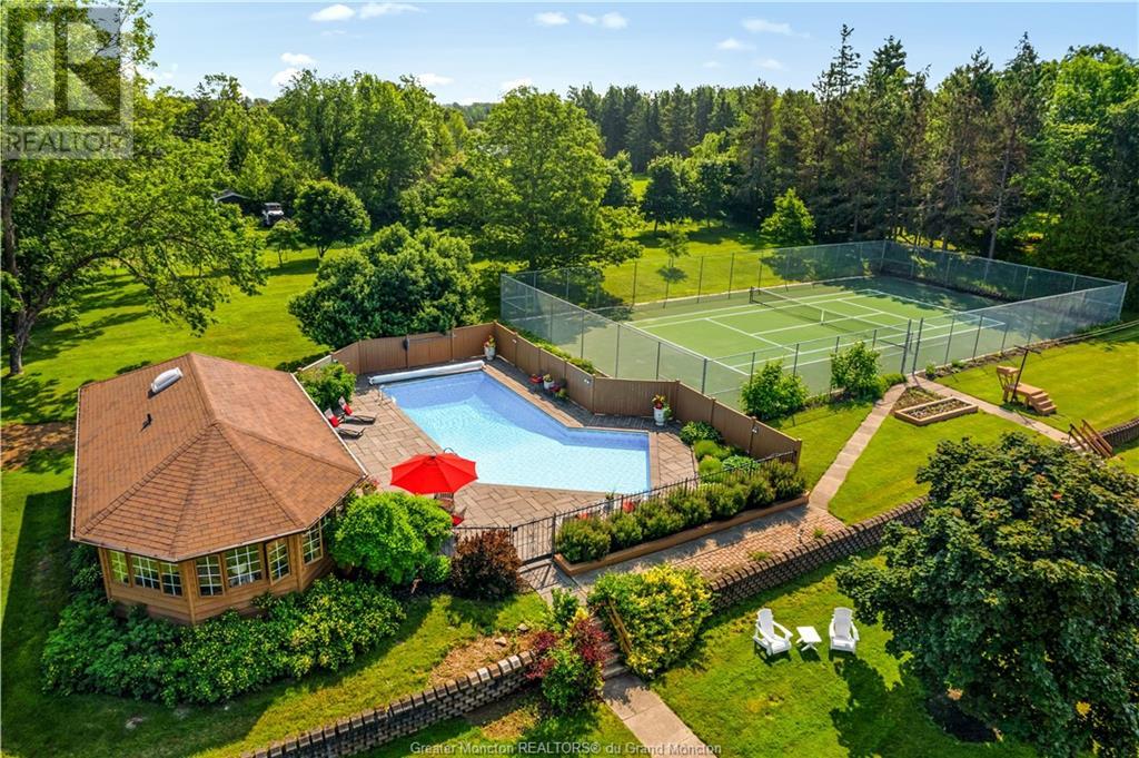 **Click on link for a virtual walkthrough of this property.** DON'T MISS OUT ON THE OPPORTUNITY TO OWN YOUR OWN RESORT STYLE PROPERTY IN SHEDIAC; COMPLETE WITH PRIVATE TREED 2.78 ACRE LOT; TENNIS COURT; IN-GROUND POOL WITH SPACIOUS POOL HOUSE BUILT WITH BC CEDAR WOOD- IDEAL FOR ENTERTAINING! The home is sure to please the minute you pull in. PRISTINE GROUNDS await. As you walk into the foyer, you'll appreciate the space & natural light flowing in. Main floor offers living room, dining room, den/office & cozy family room with WOOD fireplace. The kitchen with centre island, quartz counter, ceramic backsplash & stainless steel appliances including large propane stove, IDEAL FOR THE CHEF OF THE FAMILY. 2nd floor offers 4 bedrooms, including 2 primaries with ensuites, as well as another full bath. Lower level is fully finished for additional storage & recreational area. Other features include: CLIMATE CONTROLLED; ATTACHED DOUBLE & DETACHED TRIPLE CAR GARAGE; BACK DECK OVERLOOKING THE BEAUTIFUL PROPERTY; DEEDED PRIVATE ACCESS TO WATER; ROOF RESHINGLED ON HOUSE IN 2021; GARAGE 2023; HEAT PUMP REPLACED 2021 & MUCH MORE. Don't delay, contact your real estate professional to schedule your private viewing. (id:22211)