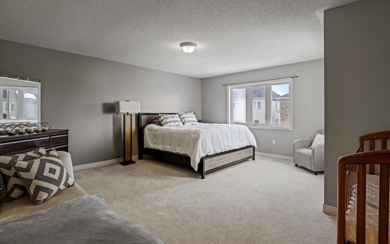 This 8 yr old beauty boasts 3,479 sq feet of open airy living space. The First level offers a functional layout, 9' high ceilings, a main floor laundry, living and family rooms, a huge kitchen with a centre island, deep double sinks, a dishwasher & a breakfast bar overlooking the livingroom; a perfect space for your home chef and the entire family to gather. Head up the spiral staircase to 5 spacious bedrooms and 4 full washrooms. You'll be amazed at the natural light that fills the home! The master suite has a large walk-in closet, a 5 piece en-suite bathroom with double sinks, a soaker tub, a separate glass shower, and toilet room. The unspoiled basement is ready for your personal touch and has a rough-in for your future bathroom.Stainless Steel Fridge and Stove, S/S dishwasher, clothes washer and dryer, water softner and central dehumidifier.