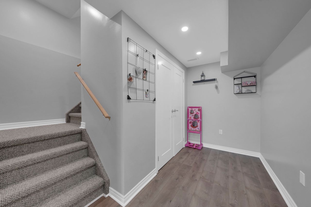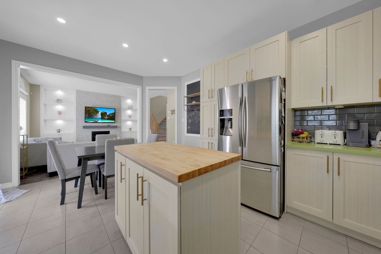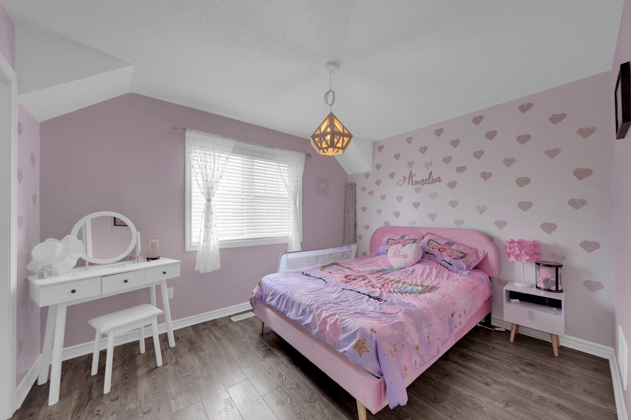 Impressive 3 bed, 4 bath home (built 2016) with 2000 sq. ft. living space incl. basement. Highlights: open concept kitchen/dining/living area, quartz counters, butcher block island, stainless steel appliances, luxury laminate flooring, gas fireplace, accent pallet wall, 9 ft. ceilings, garage access, large yard. Lower level (finished 2020) offers 2 pc. bath, laundry room, sunlit rec room. Upper floor: primary bed with updated 3 pc. ensuite & walk-in closet, 2nd bed with semi ensuite & walk-in closet, 3rd bed overlooking backyard. Outdoor features: 2 car garage, 4 car driveway, 16x16 ft. deck with 2020-built pergola, fully fenced yard with built-in planters, landscaped front yard with natural stone steps. Easy commute to highways 89, 10 & 410.