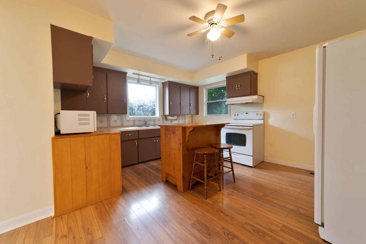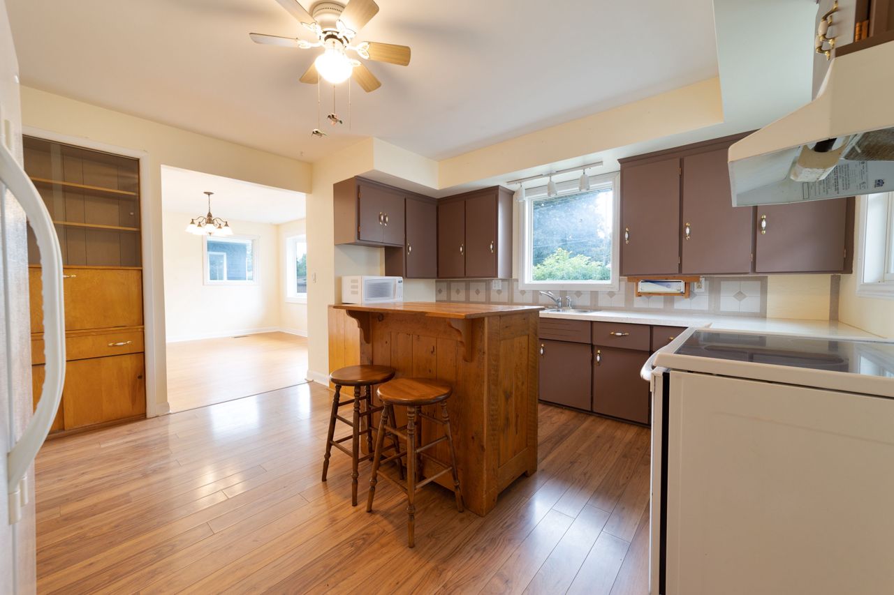 This brick bungalow is FULL of potential! Boasting 2 good sized bedrooms (both with double closets), 2 full baths, attached 1 car garage on a large 55 x 132 (approx.) lot with back alley access. Oak wood floors in living room and bedrooms. A/C, gas furnace (2012), newer windows, hot water heater (rental), water softener and electrical panel. You can find restaurants, post office, pharmacy, schools and grocery store all within walking distance. Perfect for first time home buyers, down sizers or investors.All appliances are in as is conditions.