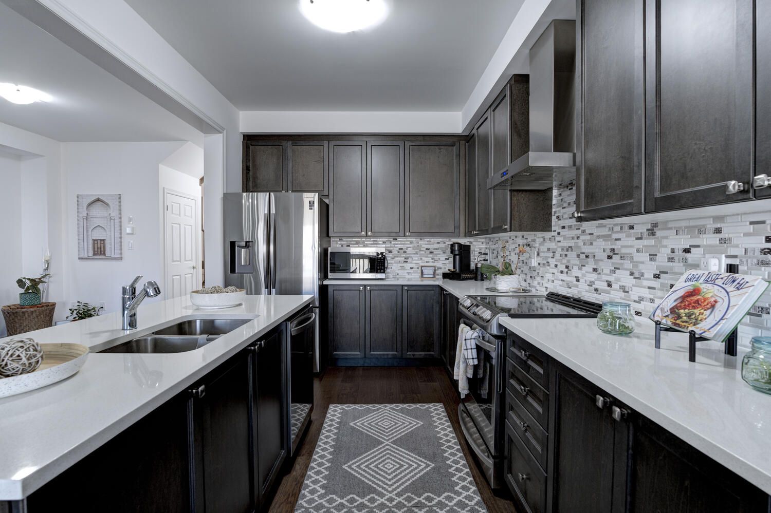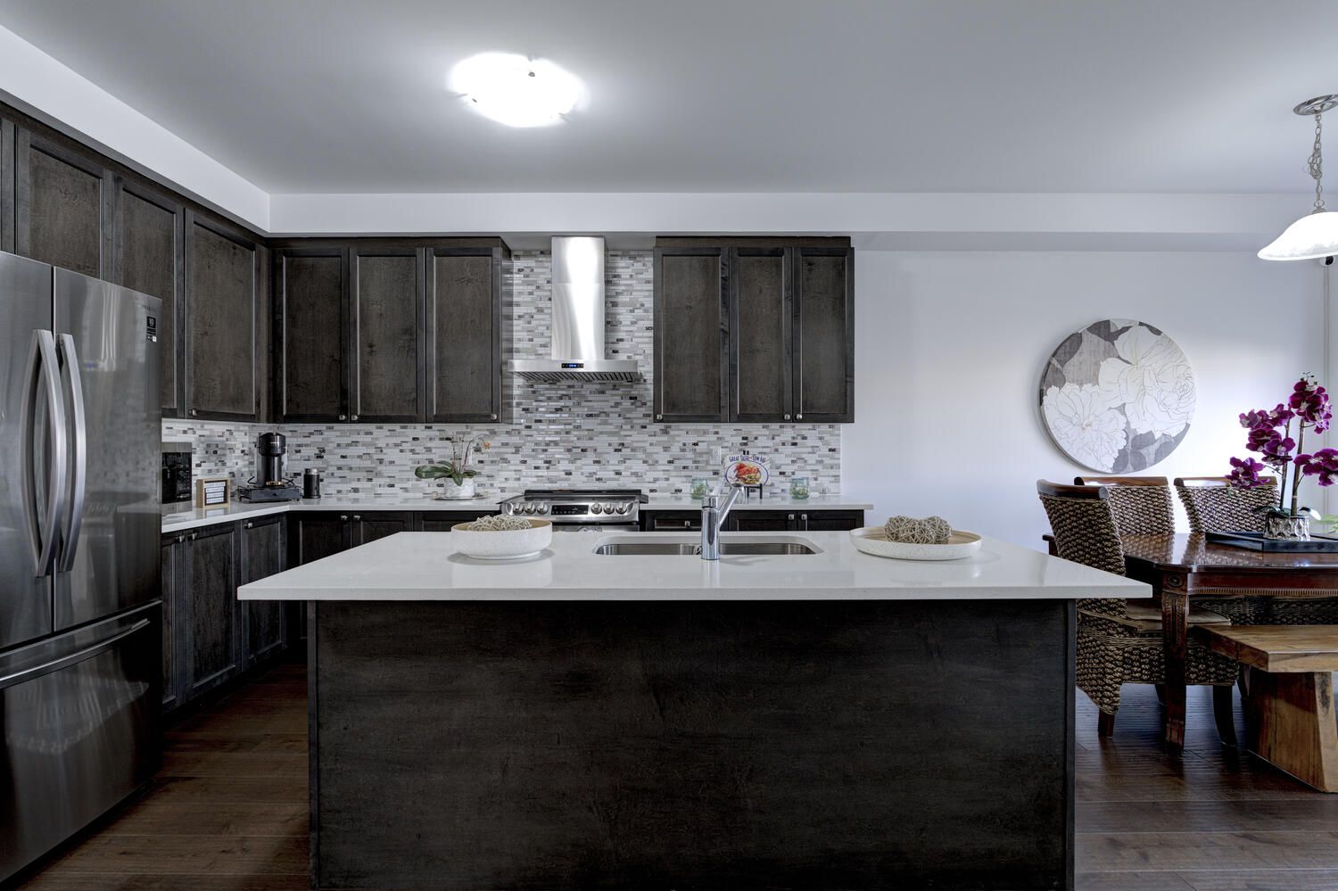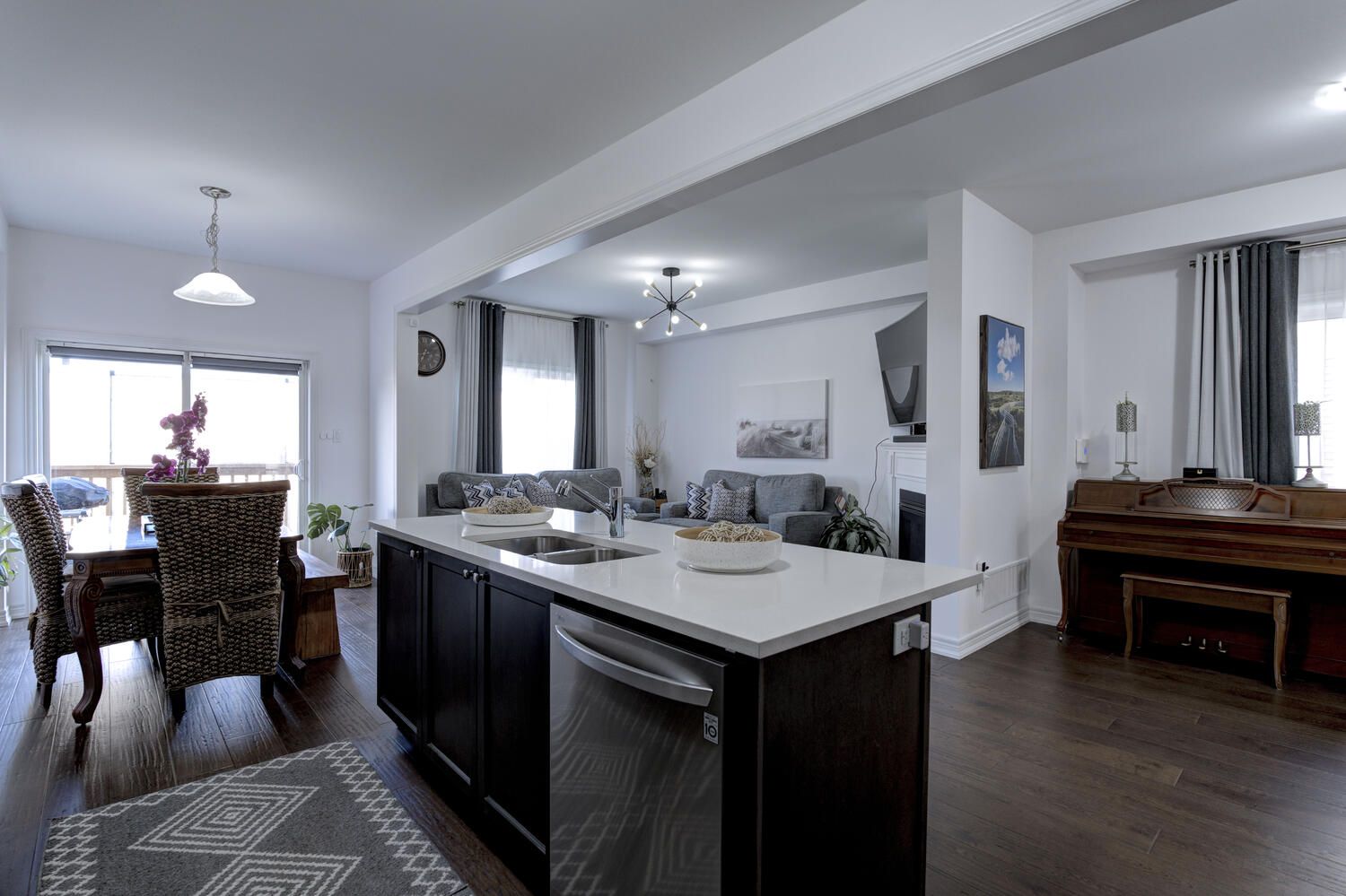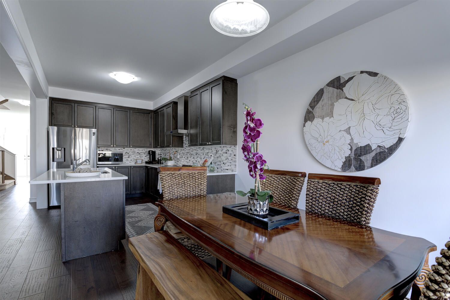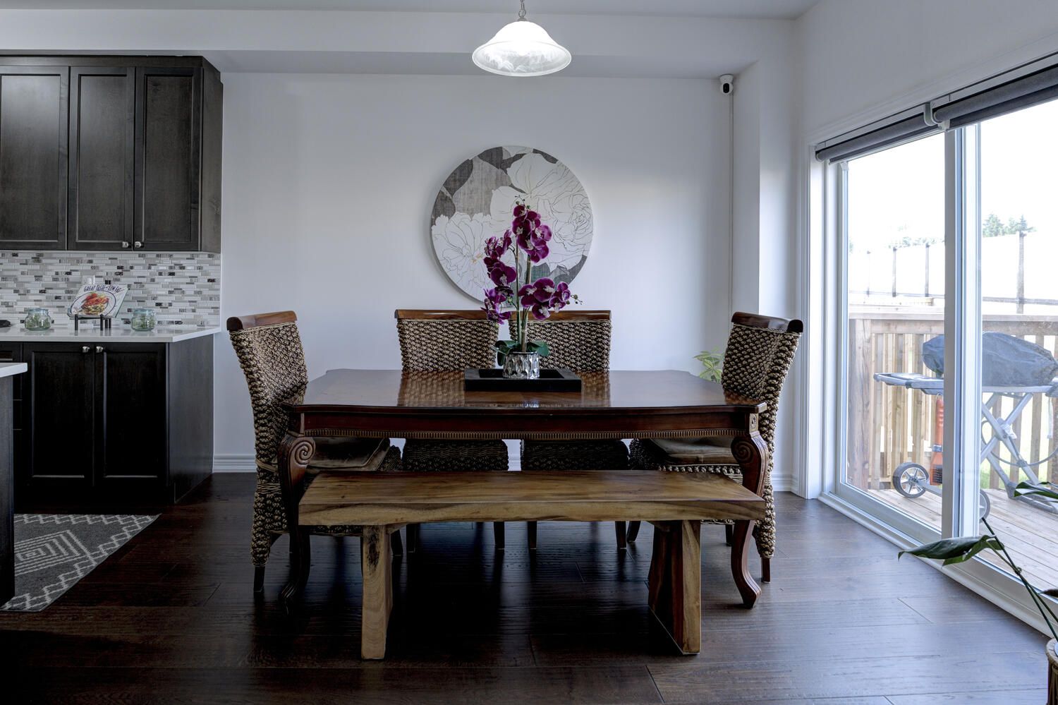 Hardwood Floor Glass Doors Combined W/Kitchen