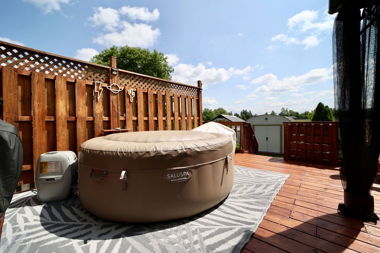 Great home for entertaining with a walkout to the large 19x19 rear deck, overlooking 9 acres of town owned parkland. Deck is plumbed for gas fitting for BBQ. Cleanup is a snap with convenient central vacuum. Nicely complimented with finished rec-room in lower level.