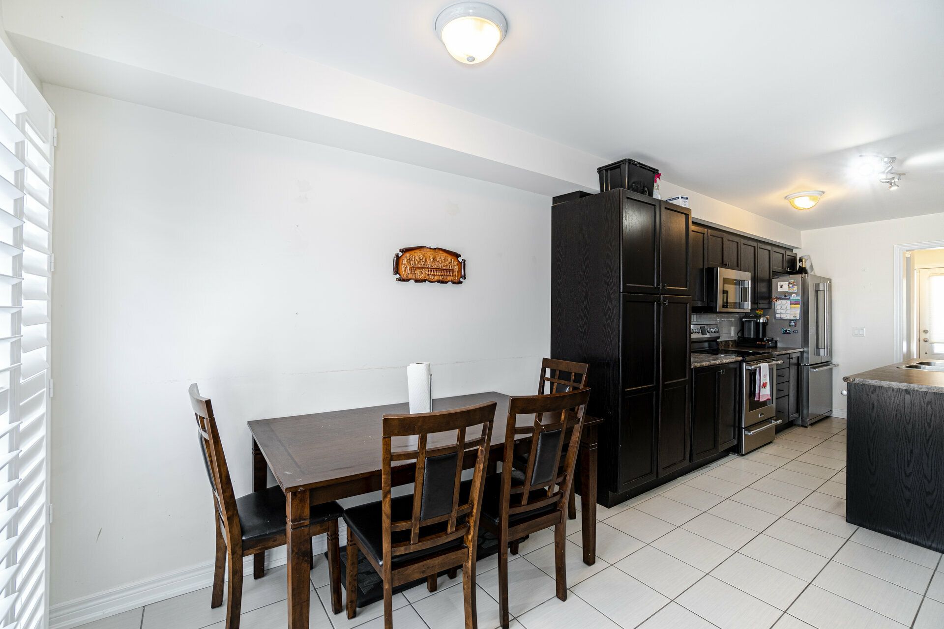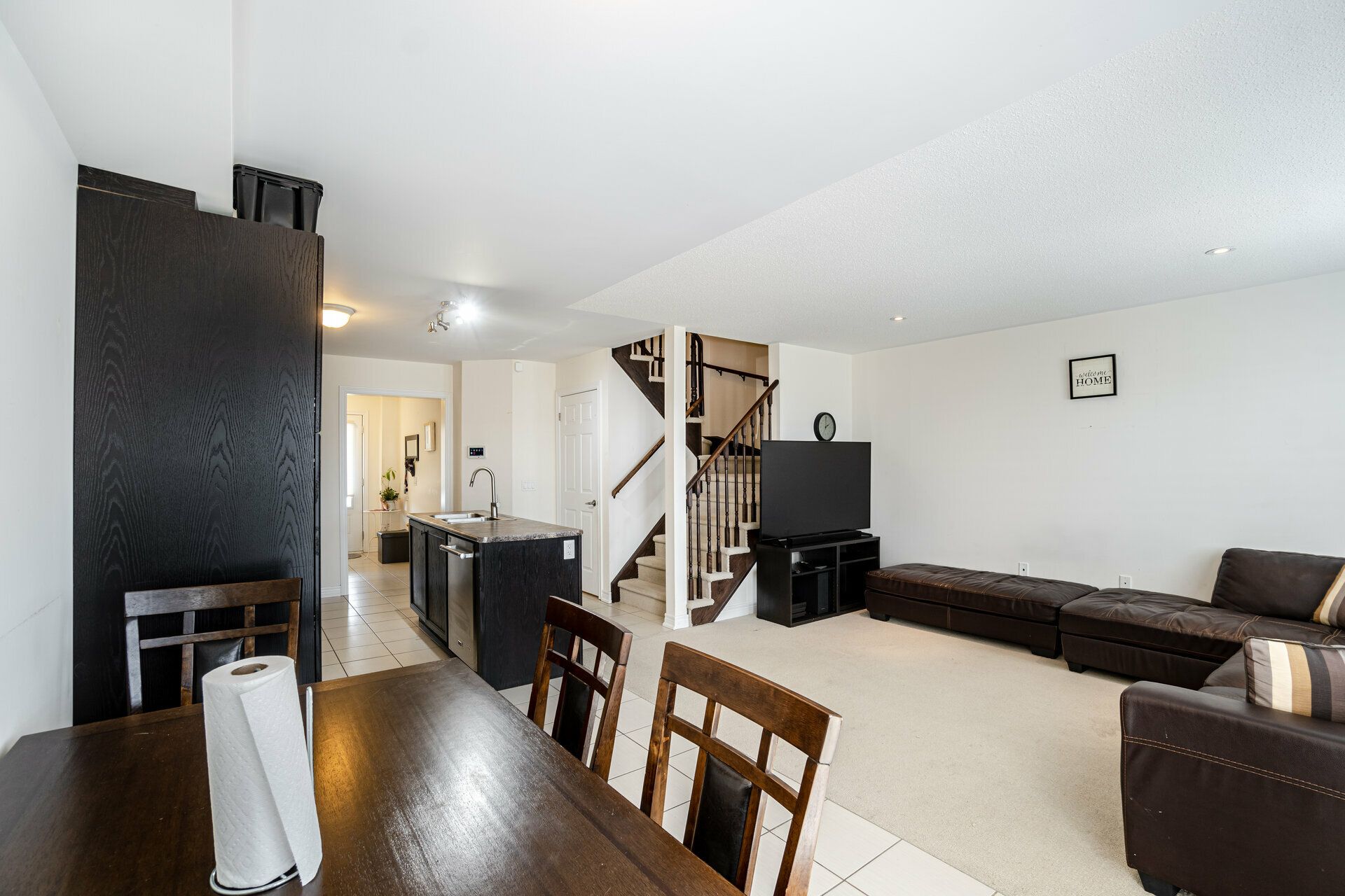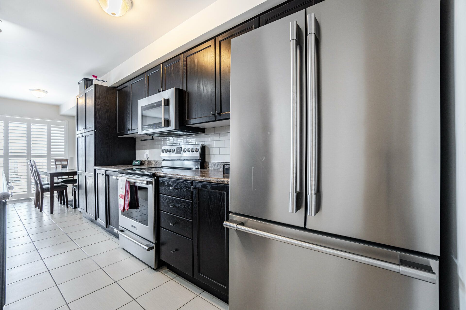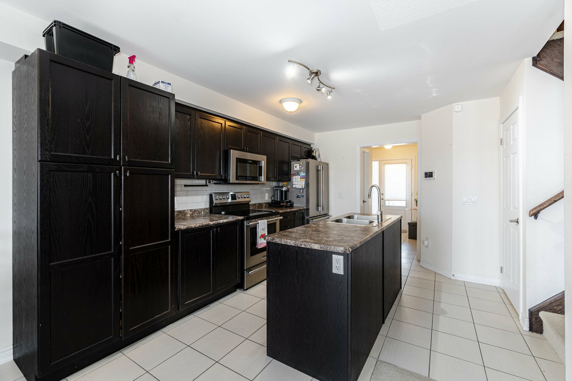 living room and kitchen area, with stainless steel appliances plus custom pantry, ceramic