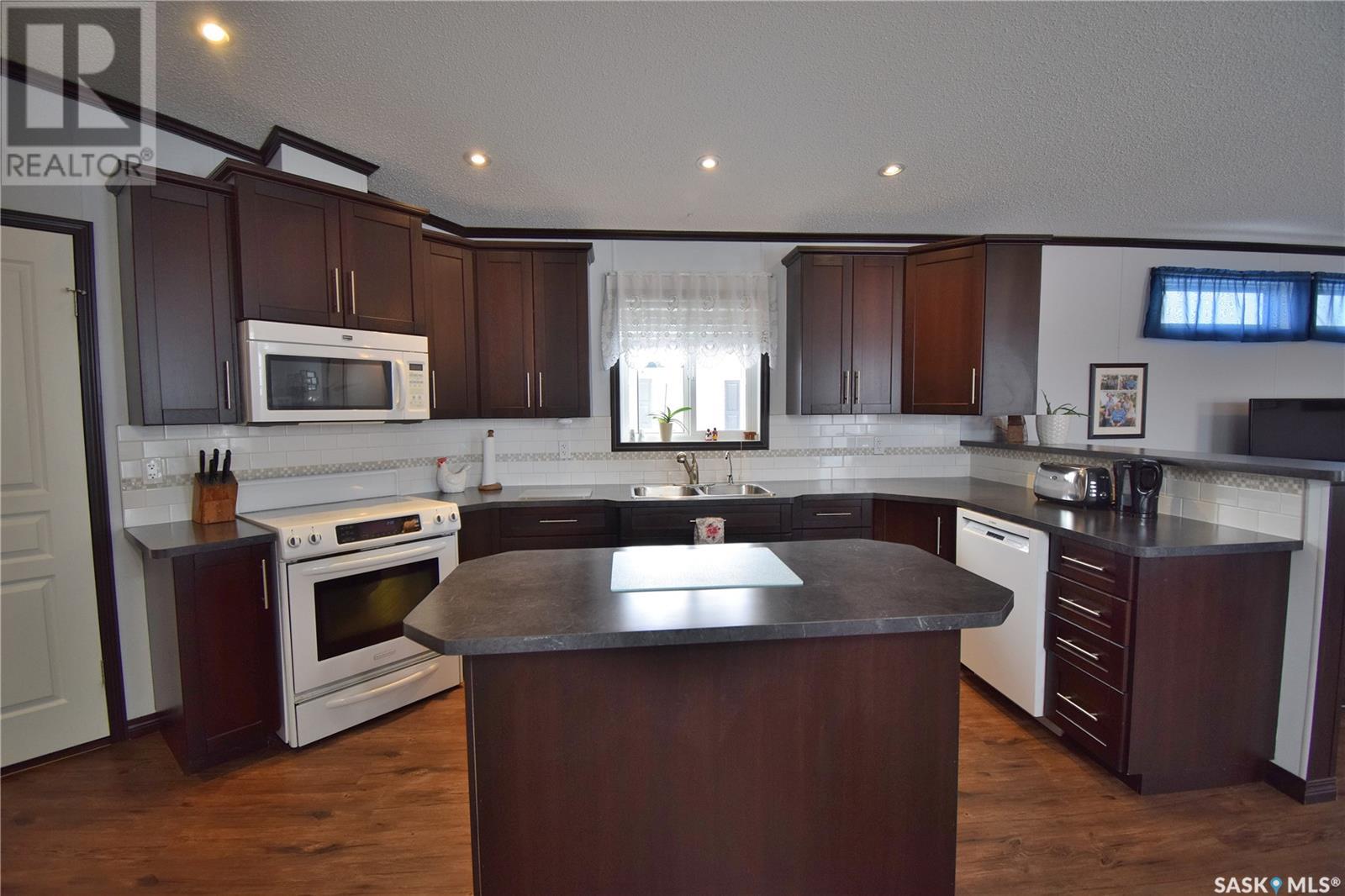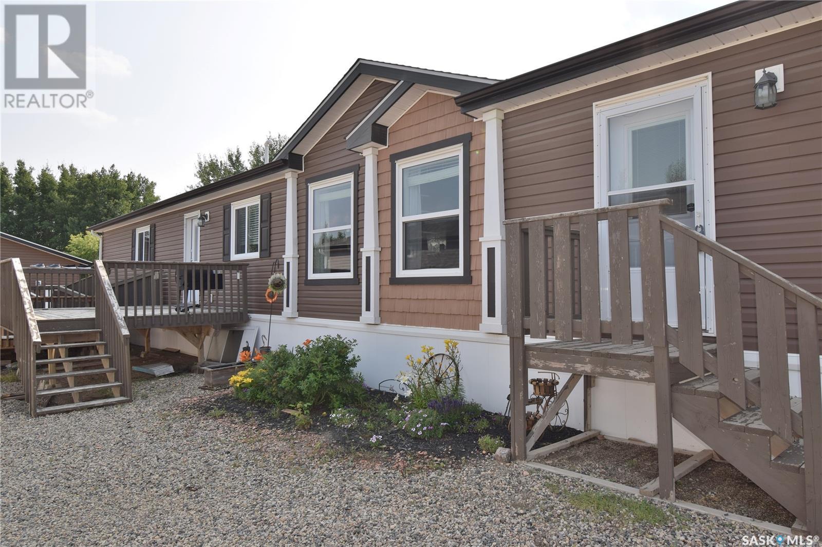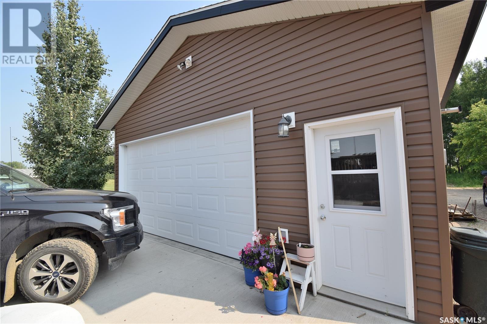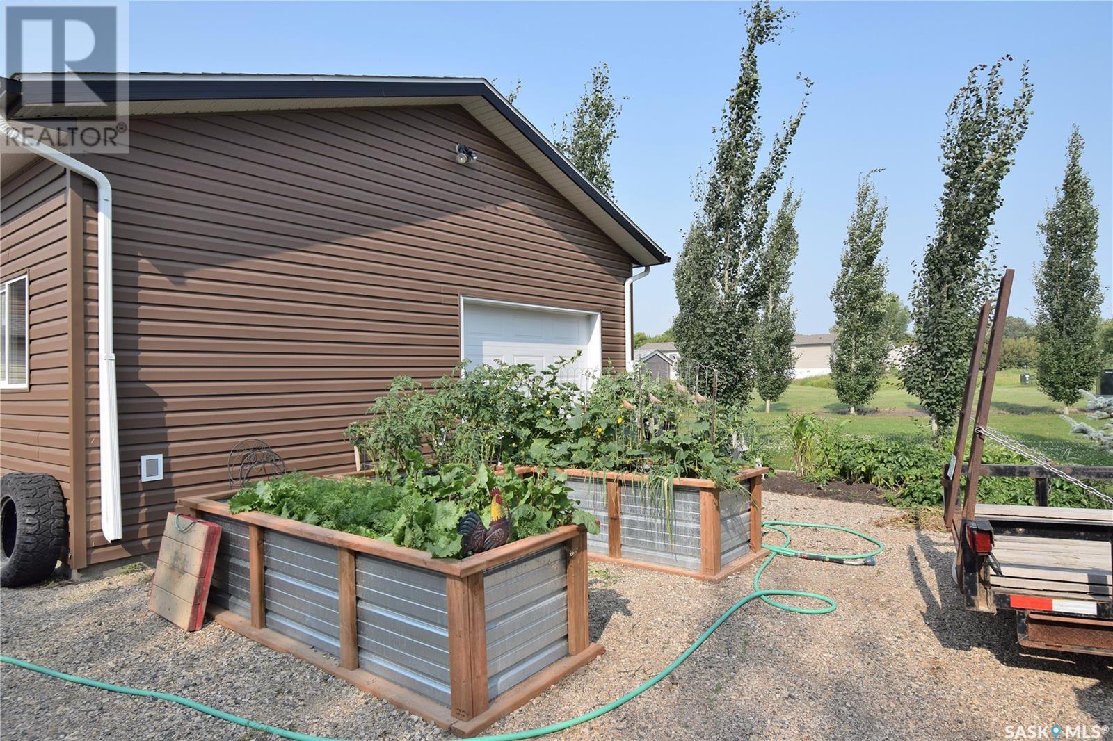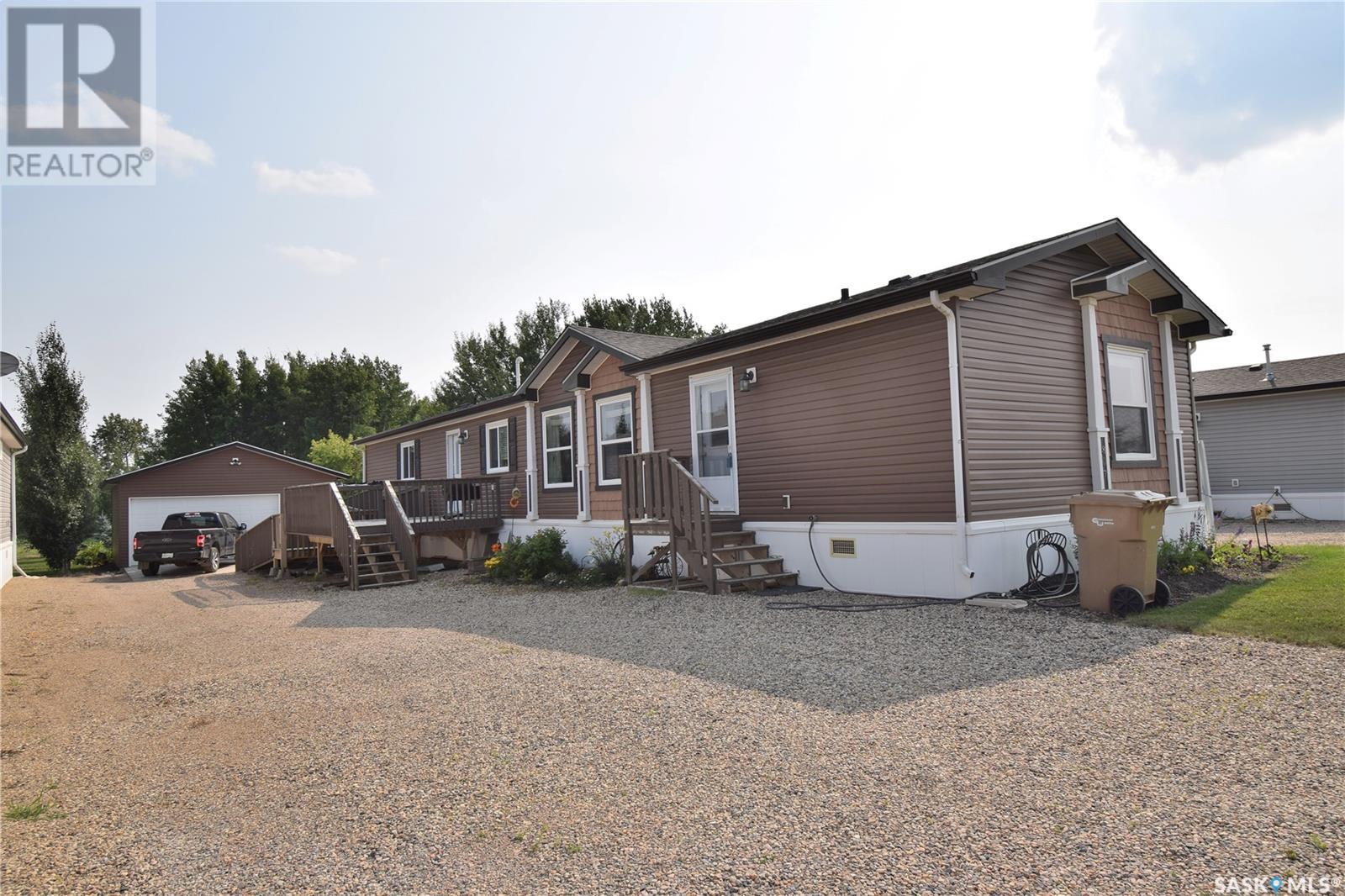 Meticulously kept home in the thriving community of Shellbrook! Ideally located on a 0.21 acre lot on the edge of town. This 1520 square foot home was built in 2014 and is in like new condition. Open concept living room, kitchen and dining area. The kitchen provides an island, breakfast bar and pantry. Huge master bedroom with walk-in closet and French doors opening to an ensuite with jacuzzi tub. Two additional bedrooms and full bath. Vinyl plank flooring throughout most of the house. Central air, alarm system, reverse osmosis system and water softener. Heated 24’ x 26’ detached garage with drive through door was built in 2021. There is a spacious deck with ramp, storage shed & raised garden beds. (id:22211)
