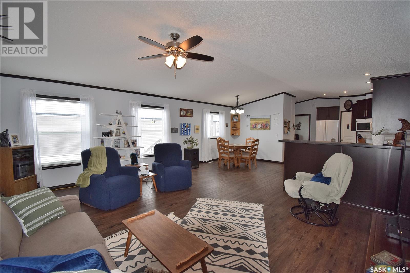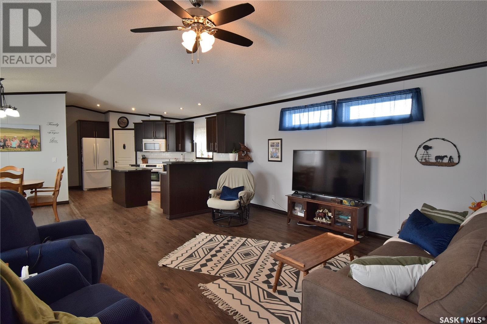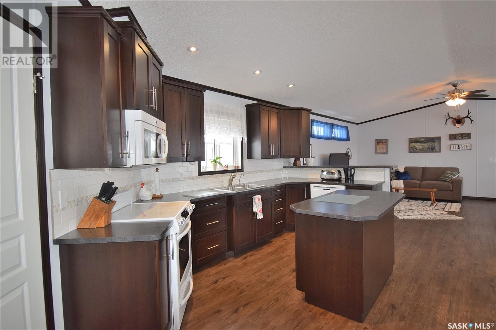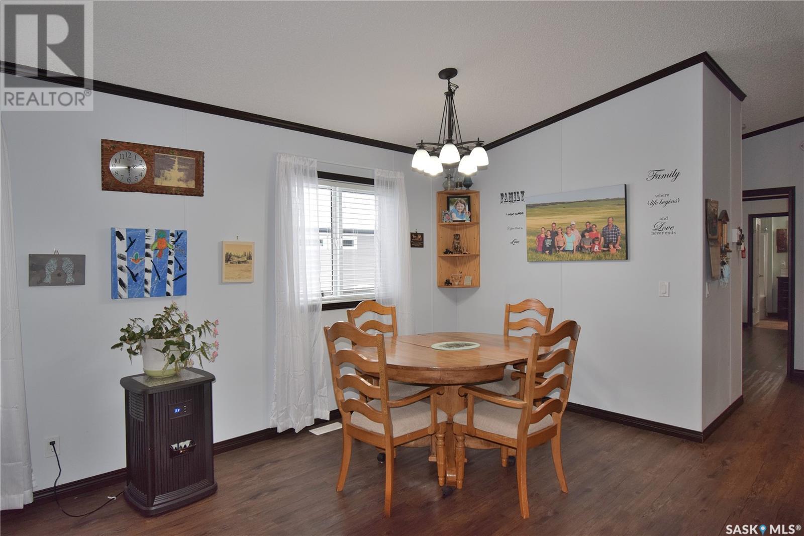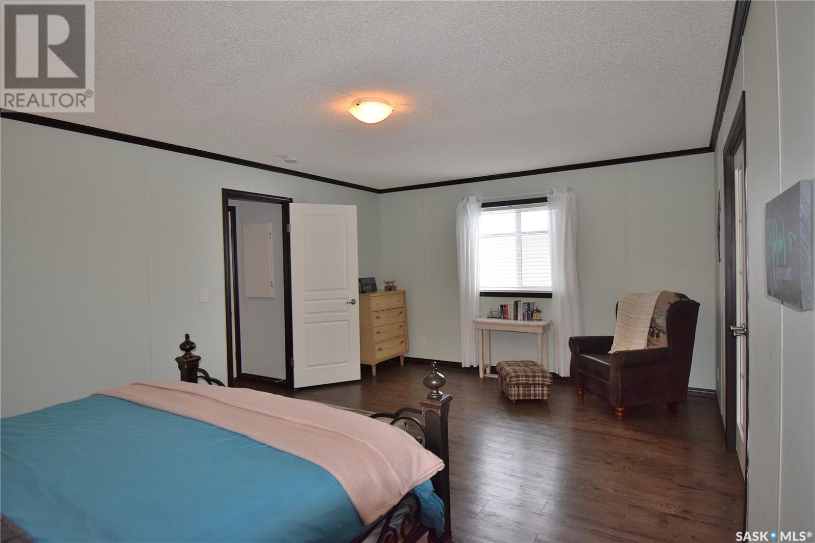 Meticulously kept home in the thriving community of Shellbrook! Ideally located on a 0.21 acre lot on the edge of town. This 1520 square foot home was built in 2014 and is in like new condition. Open concept living room, kitchen and dining area. The kitchen provides an island, breakfast bar and pantry. Huge master bedroom with walk-in closet and French doors opening to an ensuite with jacuzzi tub. Two additional bedrooms and full bath. Vinyl plank flooring throughout most of the house. Central air, alarm system, reverse osmosis system and water softener. Heated 24’ x 26’ detached garage with drive through door was built in 2021. There is a spacious deck with ramp, storage shed & raised garden beds. (id:22211)