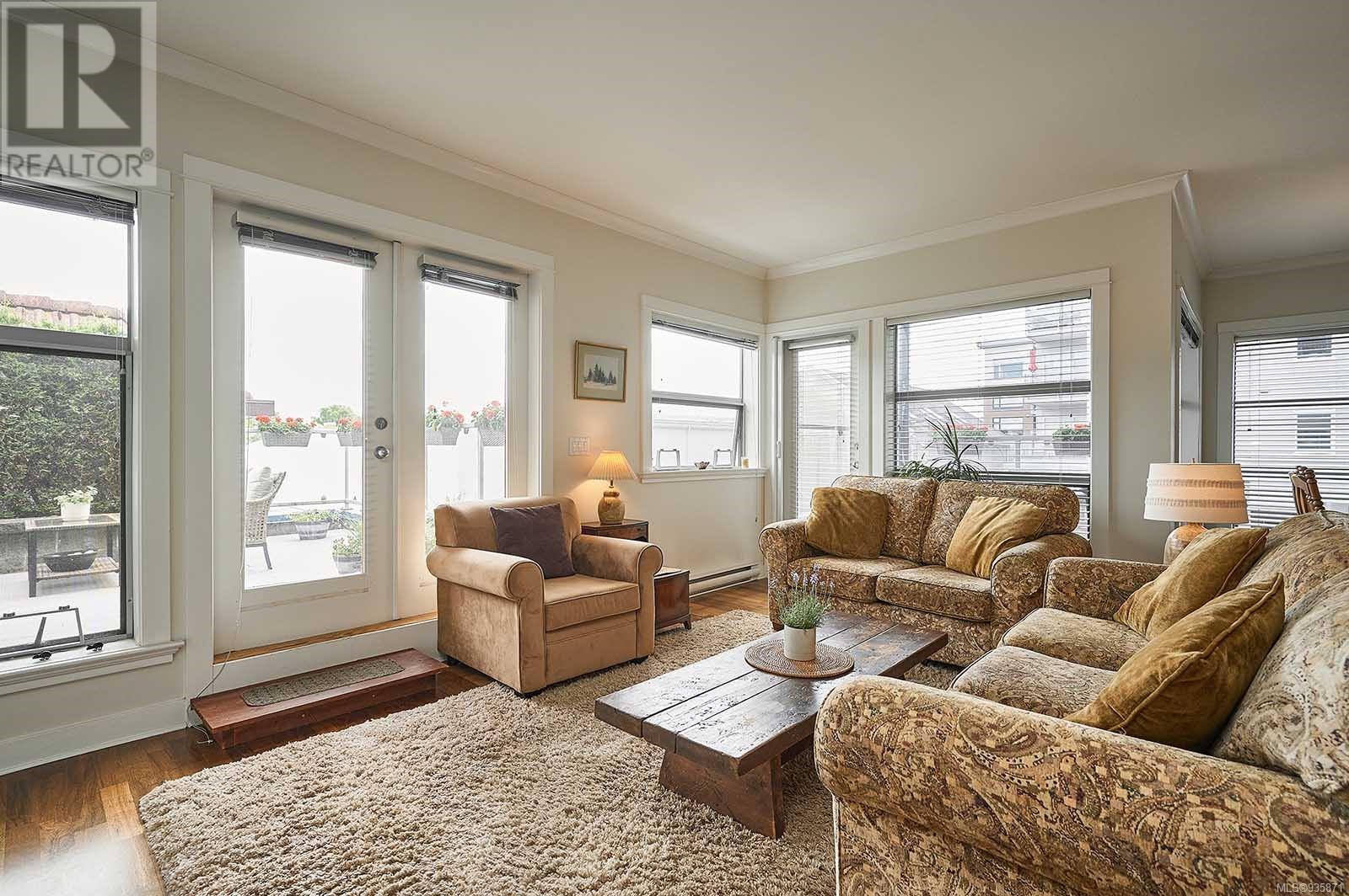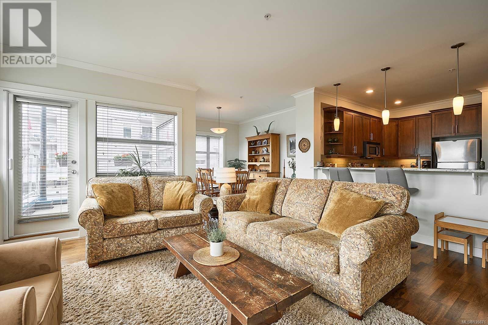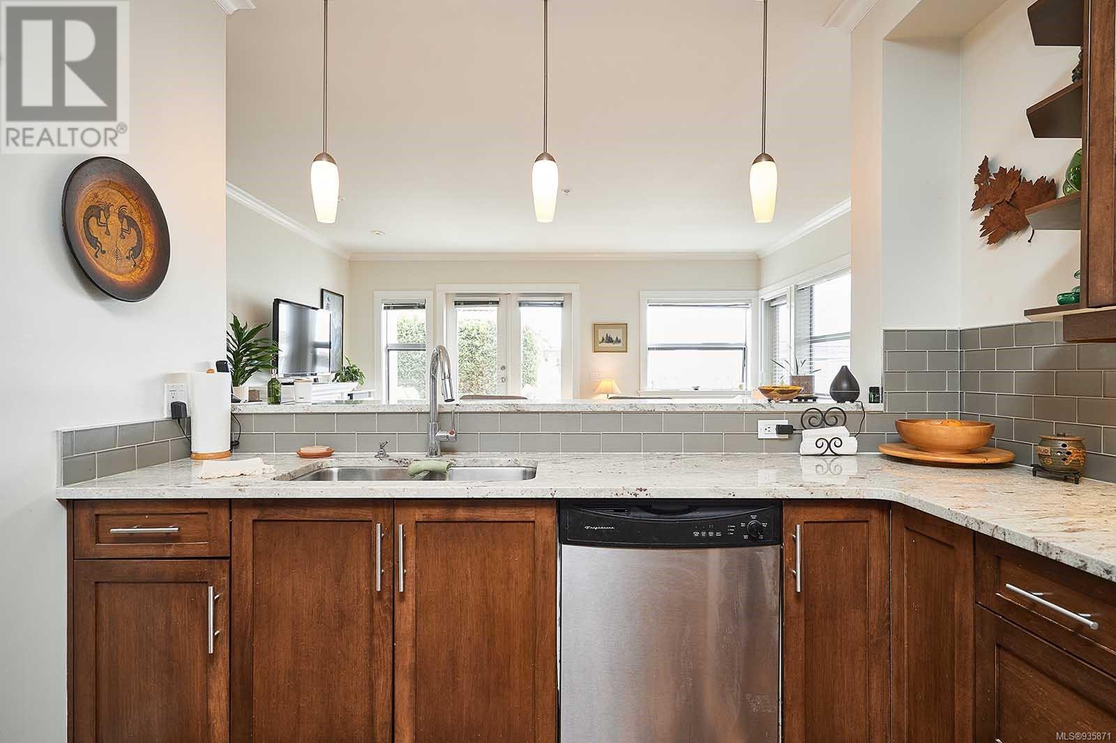 Introducing Stone’s Throw, a spacious 1625-sqft., 3bed/2bath condo in the heart of Sidney – A true stone’s throw from the Beacon Avenue shops, restaurants, and cafes, and iconic waterfront. With 9-ft ceilings wrapped in windows, natural light fills the open concept kitchen, living, and dining areas, giving the home a fresh feel. The kitchen, U-shaped with plenty of with cooking space, offers quartz countertops, stainless steel appliances, and a breakfast bar. Your living room opens on to two balconies with French doors leading to over 400 sqft. of outdoor living, south-facing, private, and hedge-lined. The primary suite has its own balcony access, a custom walk-in closet, and ensuite. Two additional bedrooms, and one bathroom sit on the opposite side of the condo, along with a full laundry room and storage space. The unit comes with one secure parking stall and unrestricted rentals. Within walking distance to the amenities you need, this home promises effortless seaside living. (id:22211)