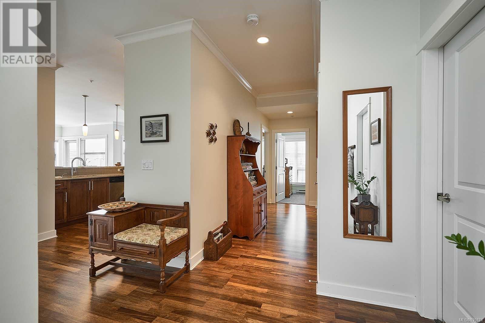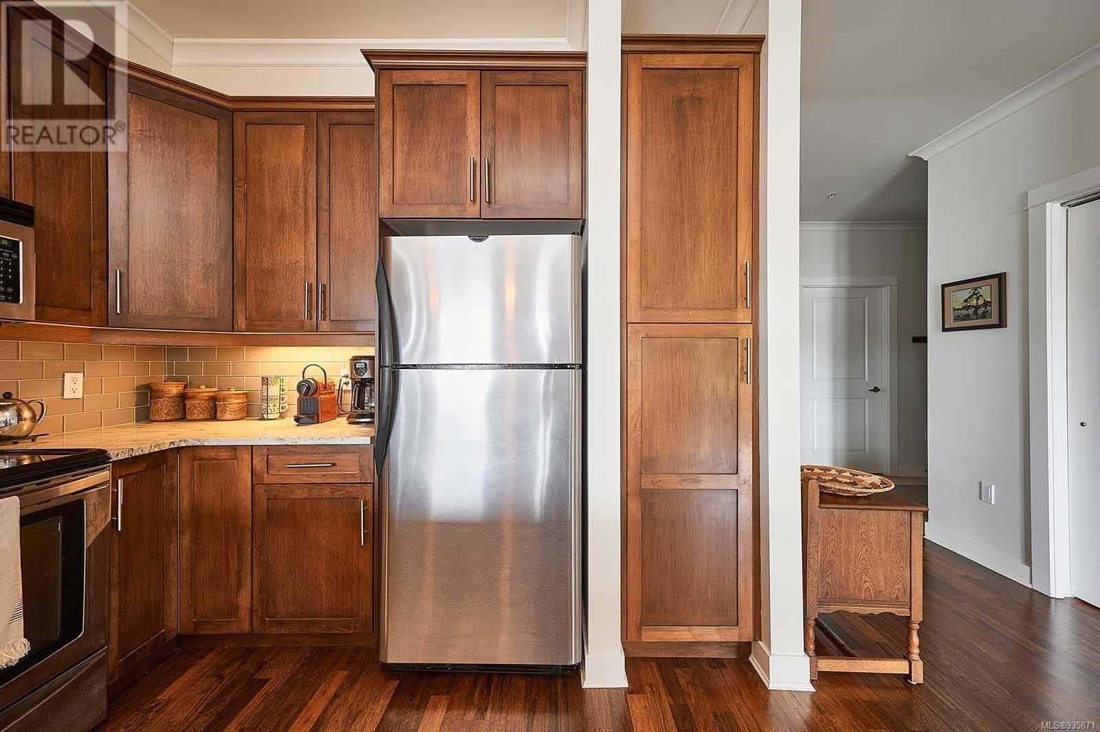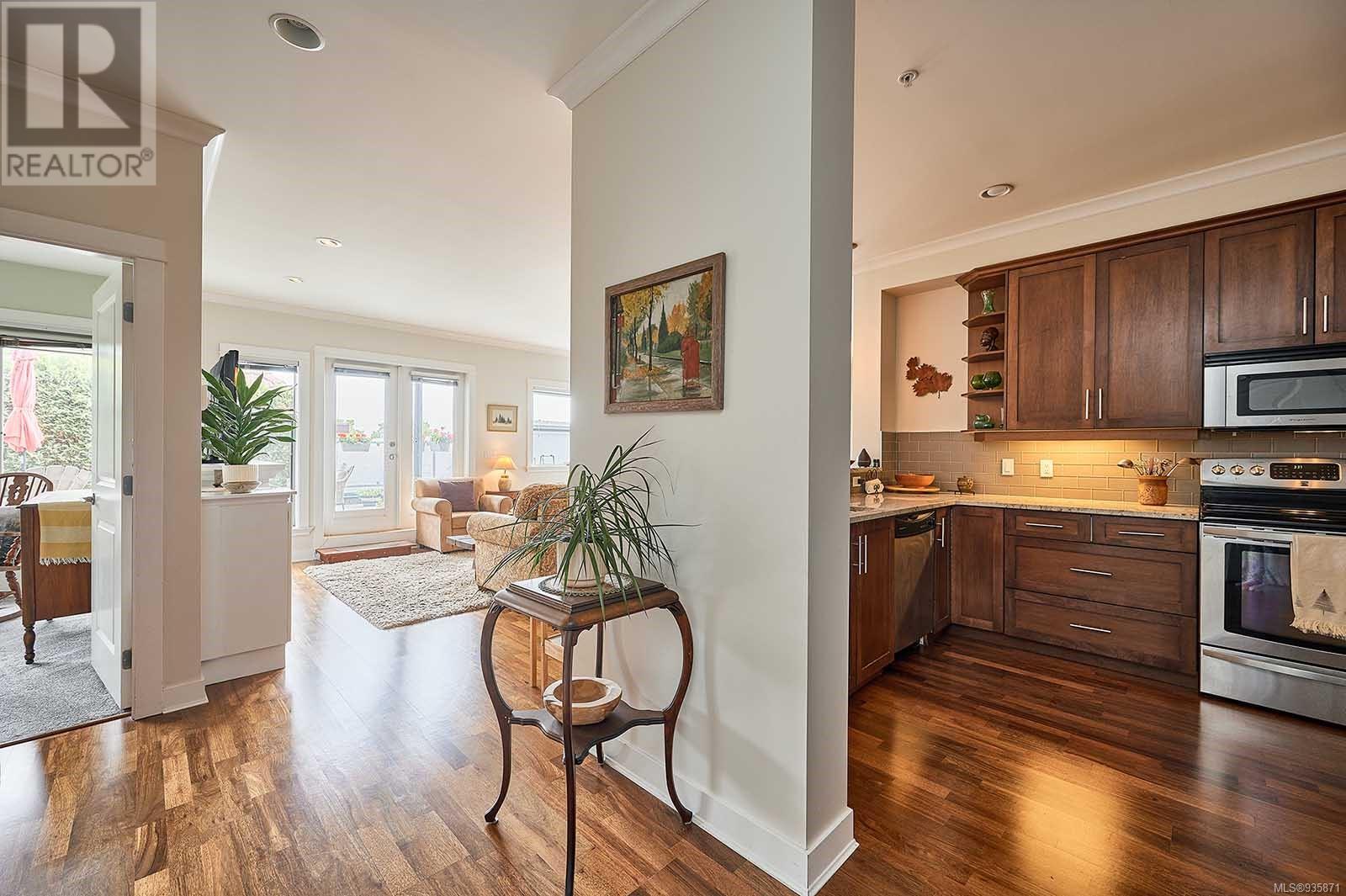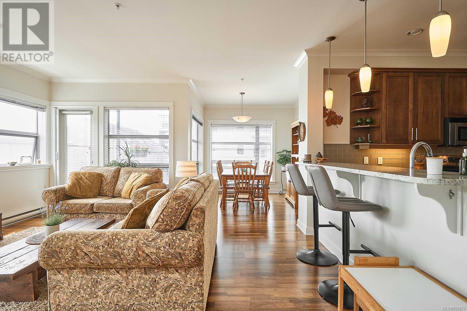 Introducing Stone’s Throw, a spacious 1625-sqft., 3bed/2bath condo in the heart of Sidney – A true stone’s throw from the Beacon Avenue shops, restaurants, and cafes, and iconic waterfront. With 9-ft ceilings wrapped in windows, natural light fills the open concept kitchen, living, and dining areas, giving the home a fresh feel. The kitchen, U-shaped with plenty of with cooking space, offers quartz countertops, stainless steel appliances, and a breakfast bar. Your living room opens on to two balconies with French doors leading to over 400 sqft. of outdoor living, south-facing, private, and hedge-lined. The primary suite has its own balcony access, a custom walk-in closet, and ensuite. Two additional bedrooms, and one bathroom sit on the opposite side of the condo, along with a full laundry room and storage space. The unit comes with one secure parking stall and unrestricted rentals. Within walking distance to the amenities you need, this home promises effortless seaside living. (id:22211)
