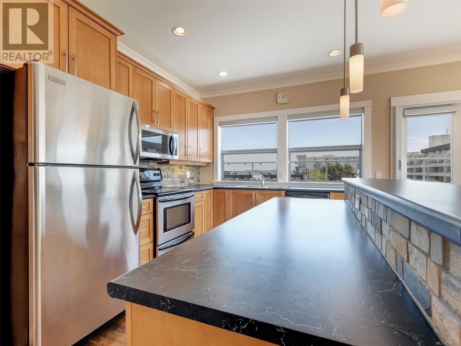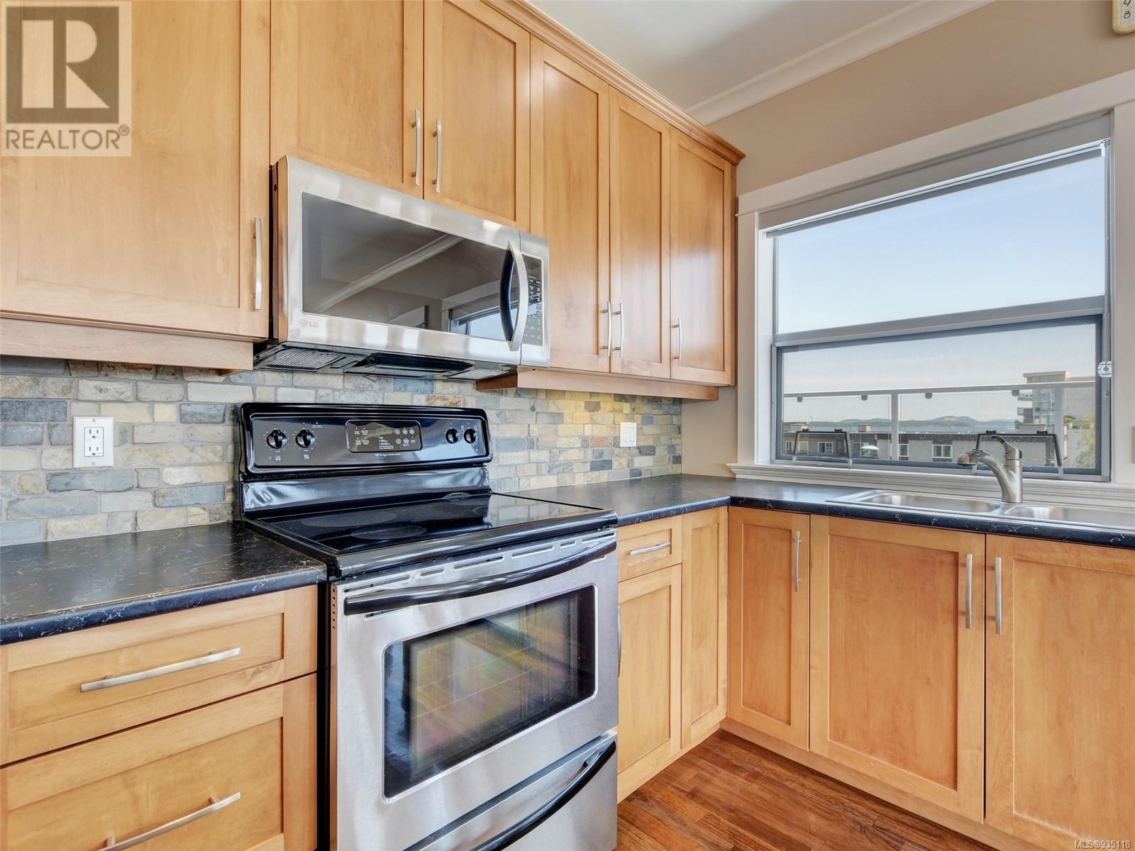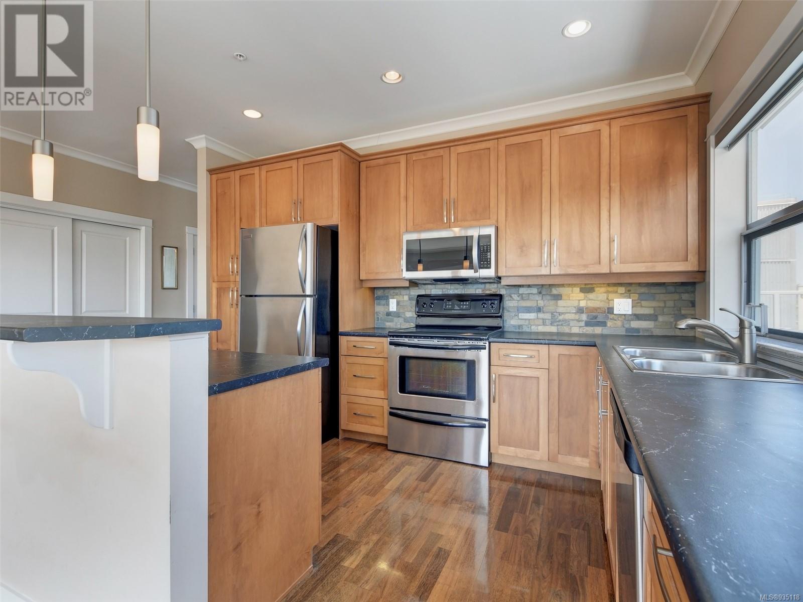 What an opportunity to own one of the largest penthouse units in the Stone's Throw building - a luxury 16 unit condominium in the heart of Sidney. This top floor, corner, premier home offers over 1800 SF with expansive water and mountain views, 9'' ceilings with crown moldings and stainless steel appliances. Within one block from Beacon Avenue, walking to all shops, cafes, and Sidney Pier. The master primary bedroom is complimented by a very large 4 piece ensuite and is well separated from a second bedroom. It boasts a separate dining room for your entertaining needs as well as a south facing den for your office. The in-suite storage room and separate laundry with kitchen pantry will make this an easy move from a house. A truly wheel chair friendly building with secure parking. Sidney by the Sea offers an amazing location close to YYJ Airport and BC Ferries Terminal. (id:22211)