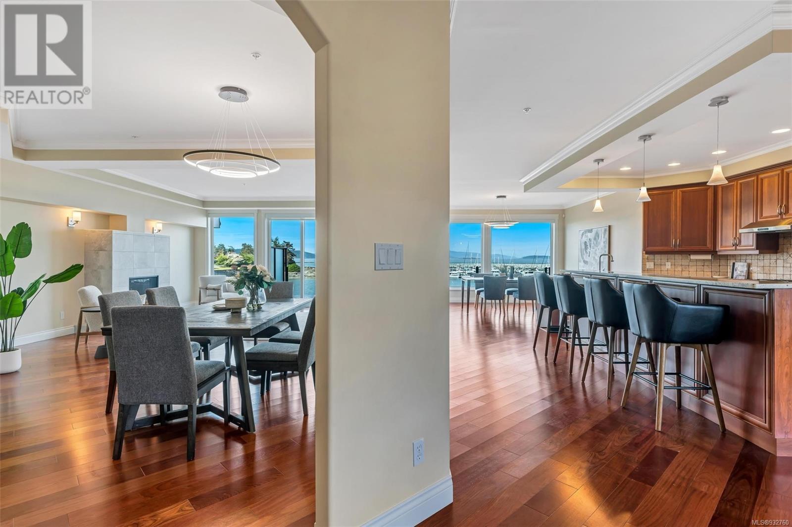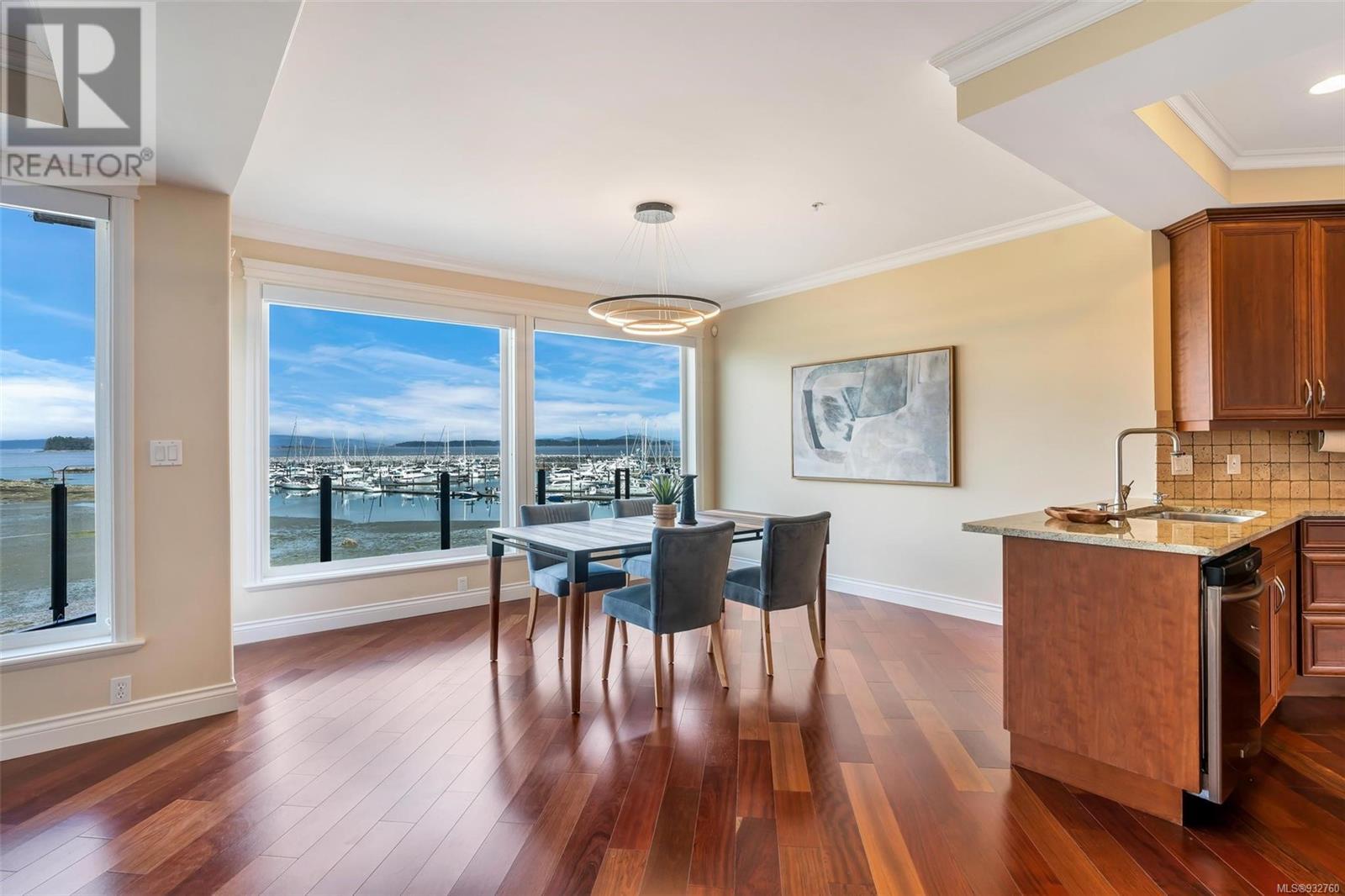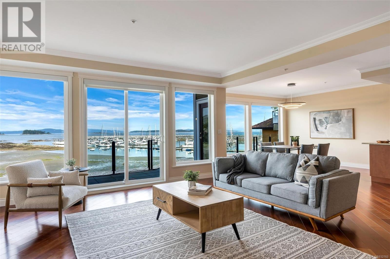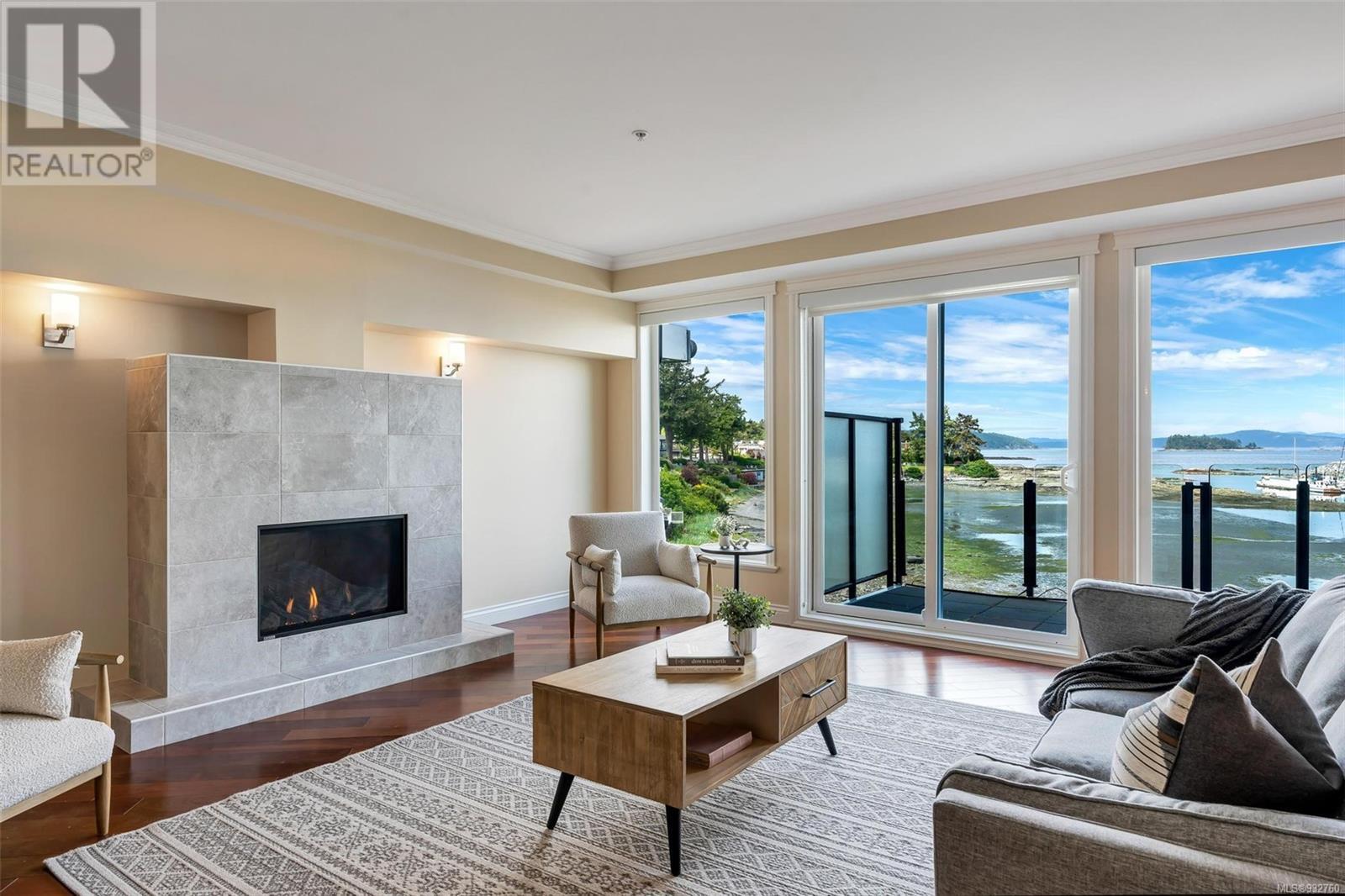 OPEN HOUSE SATURDAY Aug 5th 1pm-3pm! Introducing a remarkable waterfront luxury condo in downtown Sidney! This incredible 2-bedroom, 3-bathroom residence is sure to impress. From the private elevator to the stunning foyer, prepare to be wowed. Enjoy spectacular views of the Gulf Islands, Mt. Baker, and Port Sidney Marina from nearly every window of this 2400sqft home. Built by renowned builder Steve Wakefield with great attention to detail, this is a rare find perfect for those looking to downsize from single-family homes. The chef's kitchen is open and bright with a gas stove, granite countertops, and beautiful built-in cabinetry. The living/dining area features 9’ ceilings and abundant natural light. The master bedroom offers space, a walk-in closet, and a four-piece ensuite with a soaker jacuzzi tub for ultimate relaxation. A private double car garage completes this amazing package – come see it today! (id:22211)
