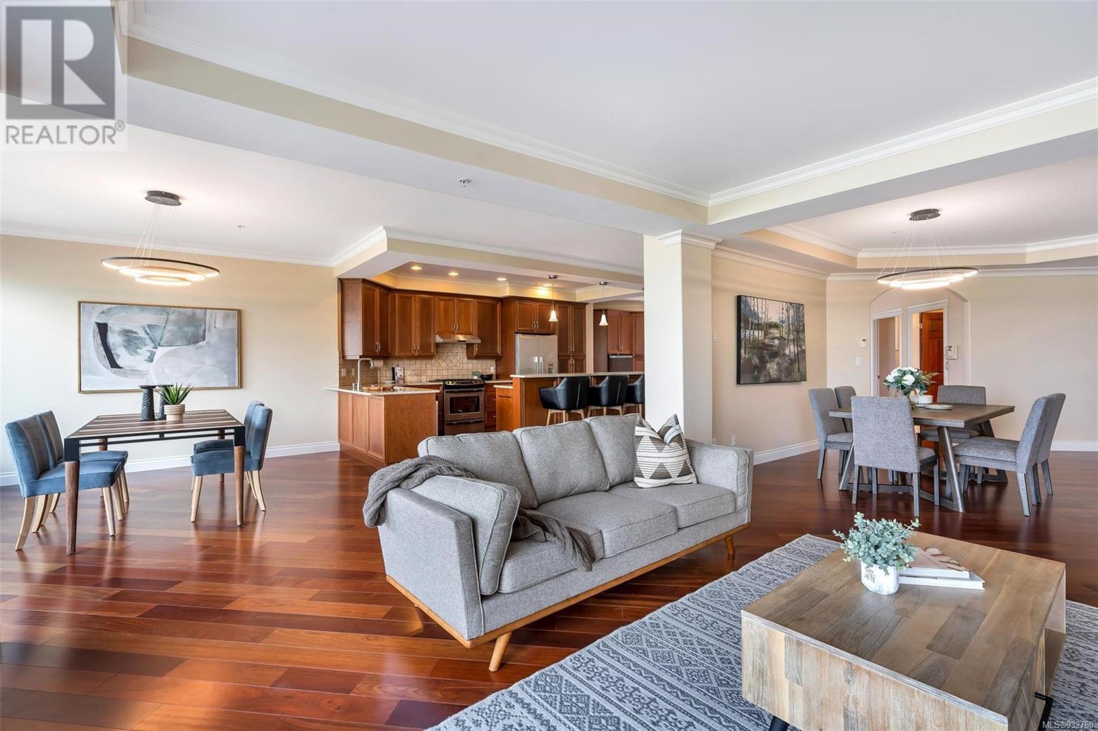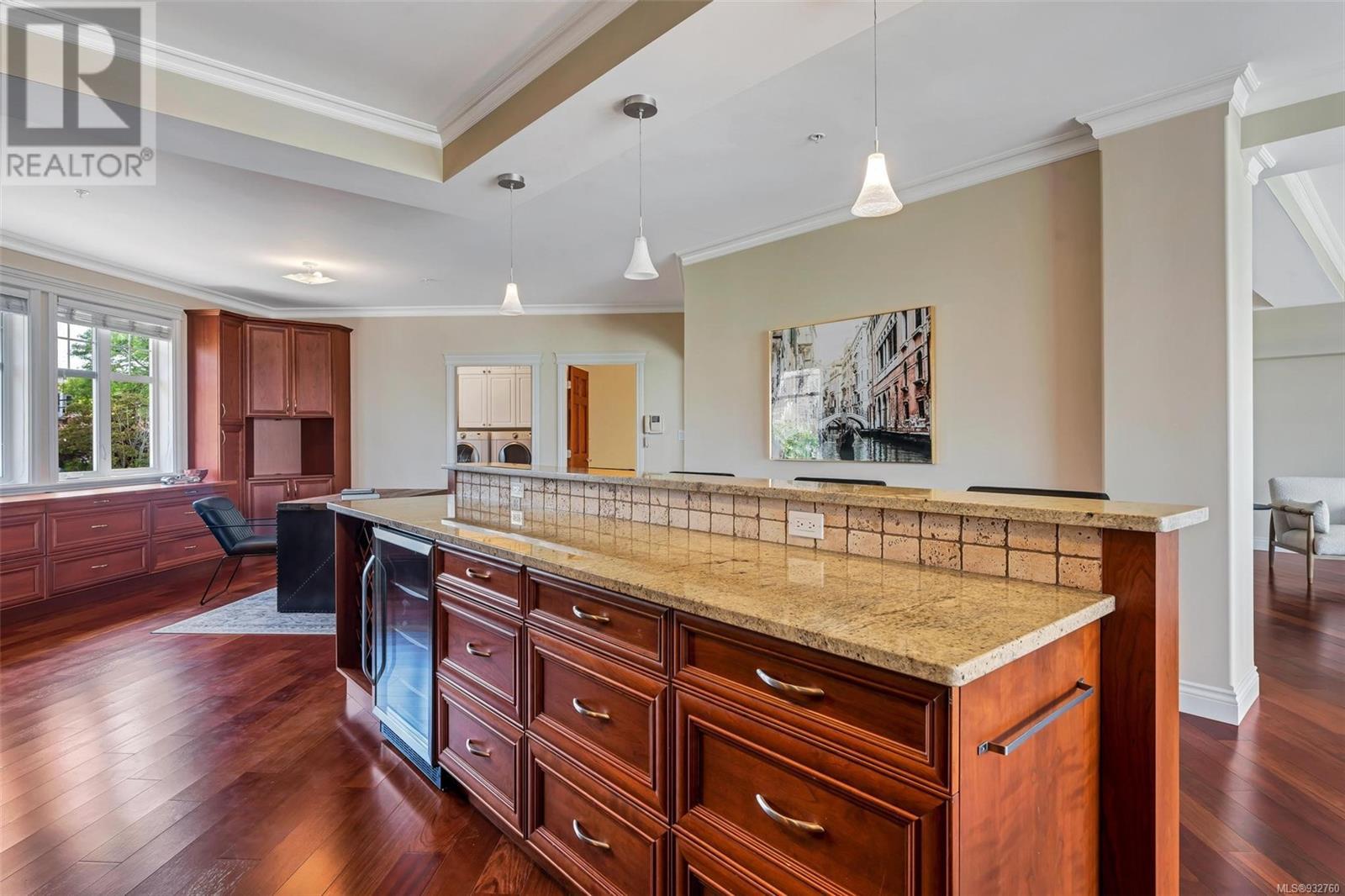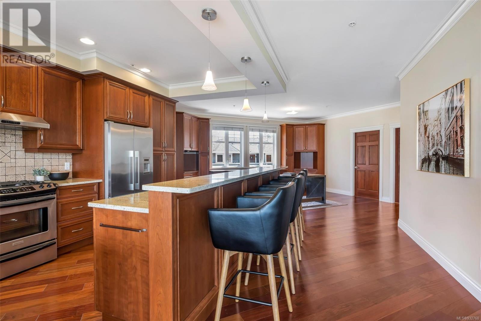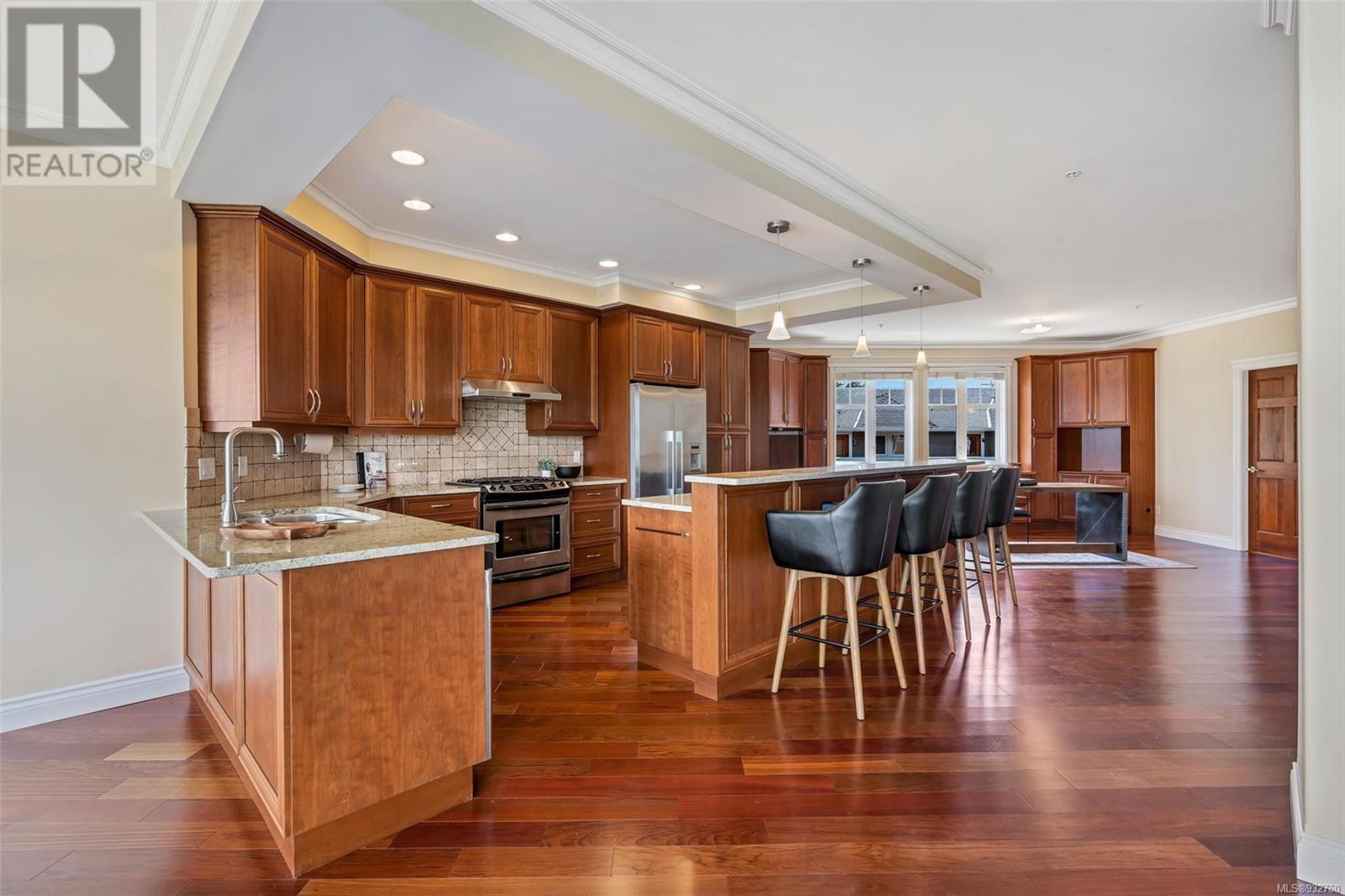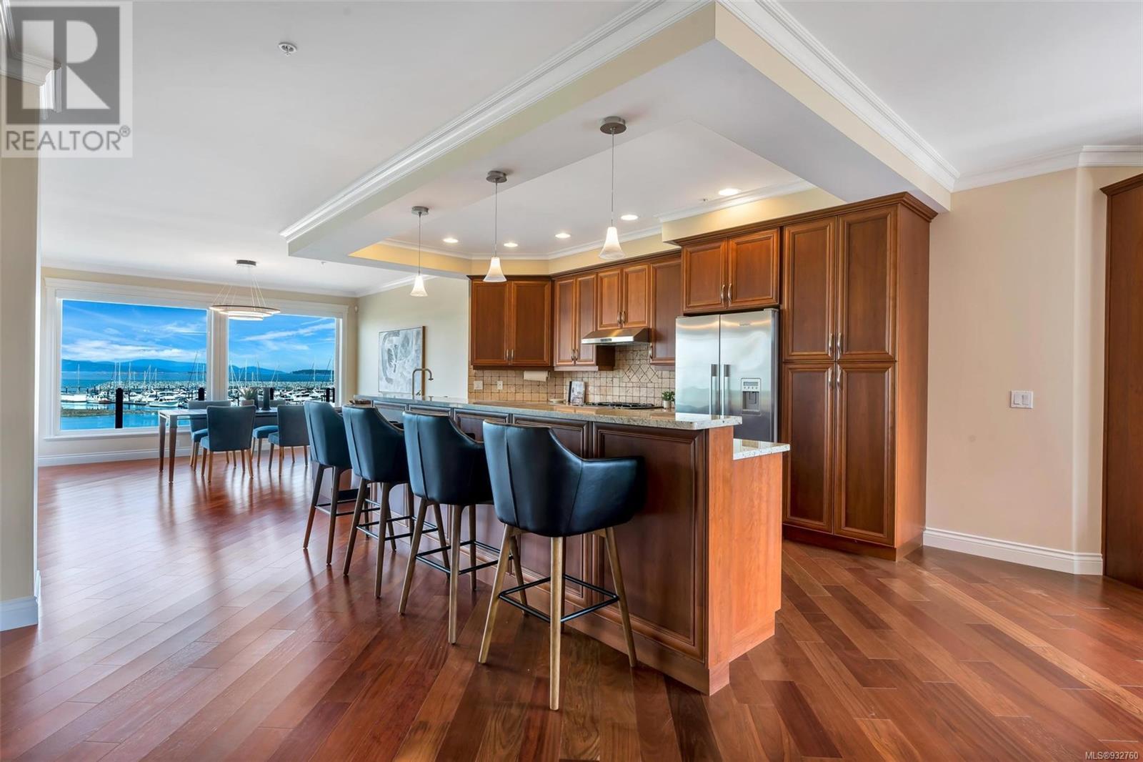 OPEN HOUSE SATURDAY Aug 5th 1pm-3pm! Introducing a remarkable waterfront luxury condo in downtown Sidney! This incredible 2-bedroom, 3-bathroom residence is sure to impress. From the private elevator to the stunning foyer, prepare to be wowed. Enjoy spectacular views of the Gulf Islands, Mt. Baker, and Port Sidney Marina from nearly every window of this 2400sqft home. Built by renowned builder Steve Wakefield with great attention to detail, this is a rare find perfect for those looking to downsize from single-family homes. The chef's kitchen is open and bright with a gas stove, granite countertops, and beautiful built-in cabinetry. The living/dining area features 9’ ceilings and abundant natural light. The master bedroom offers space, a walk-in closet, and a four-piece ensuite with a soaker jacuzzi tub for ultimate relaxation. A private double car garage completes this amazing package – come see it today! (id:22211)
