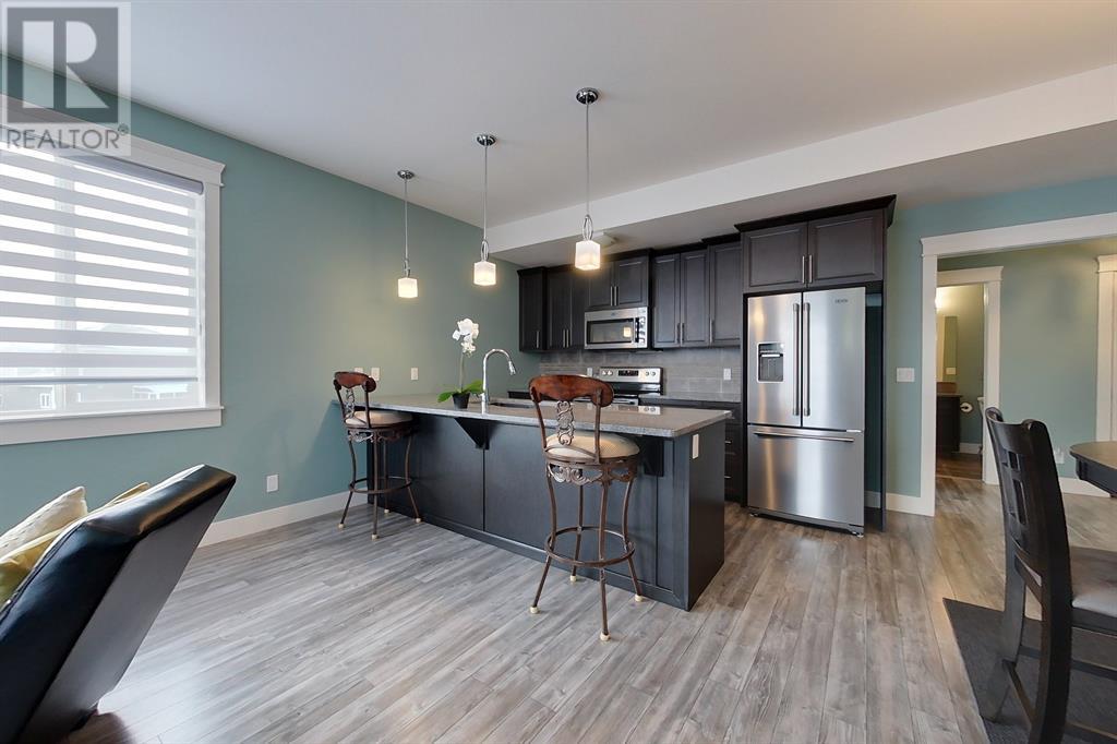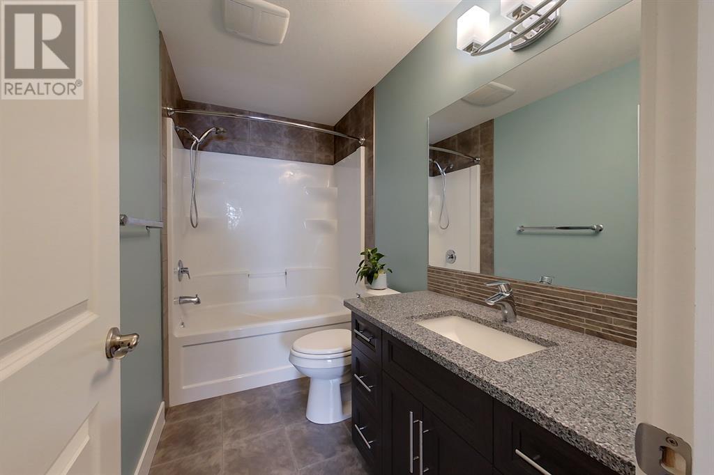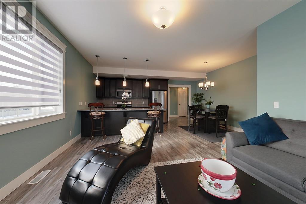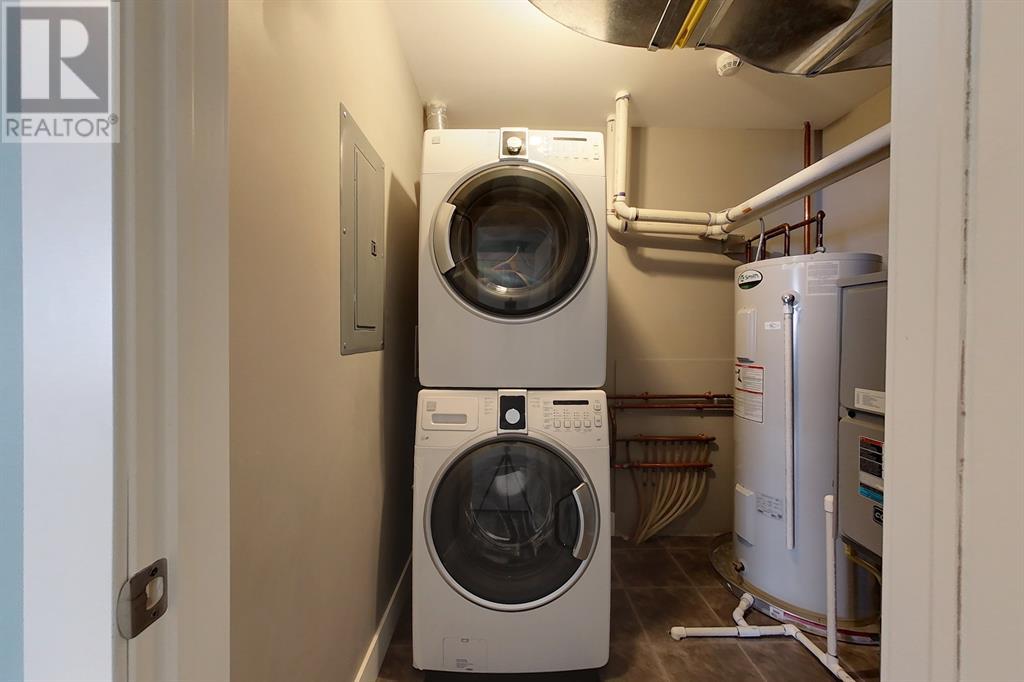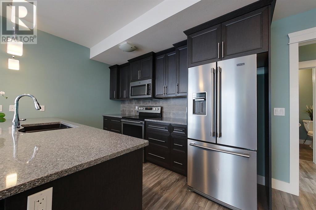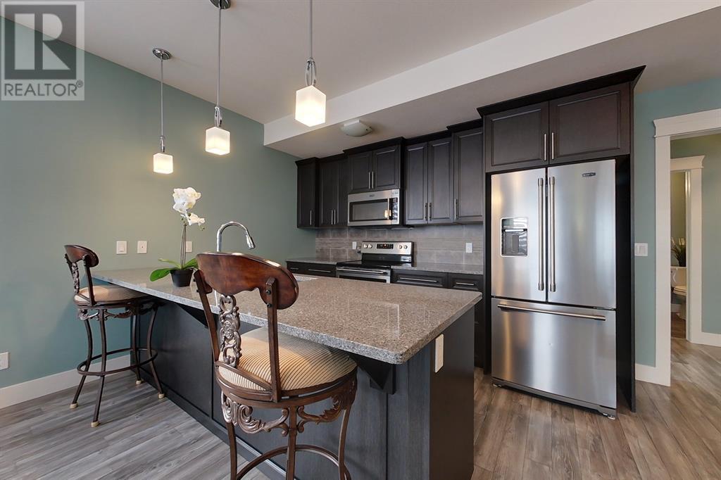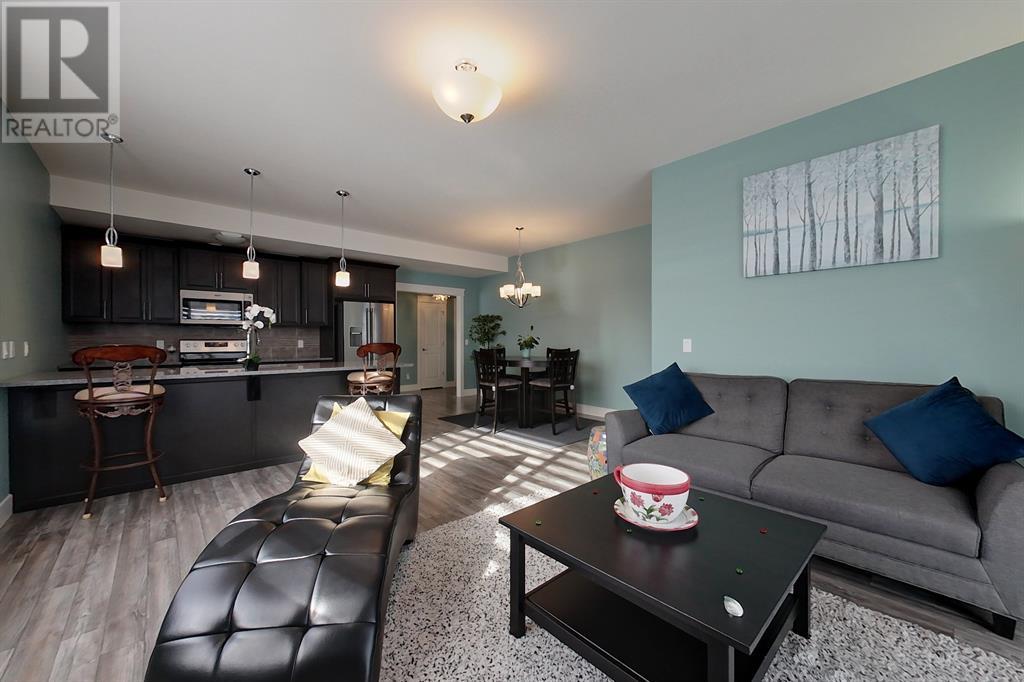 Immaculate, well maintained executive condo. The open concept design features a kitchen with granite counters and large island featuring bar stool seating, stainless steel appliances and dining area. The spacious living room has a beautiful corner gas fireplace and lots of natural light from the large windows. Primary bedroom has a walk through closet to a 4-pc ensuite. 2nd bedroom, 4-pc bathroom, laundry/utility room and spacious entry completes this unit. Enjoy the summer evenings from your covered private balcony. Assigned storage unit is in the basement. Condo fees include water, sewer, garbage, snow removal and ground maintenance. Furniture is negotiable. (id:22211)