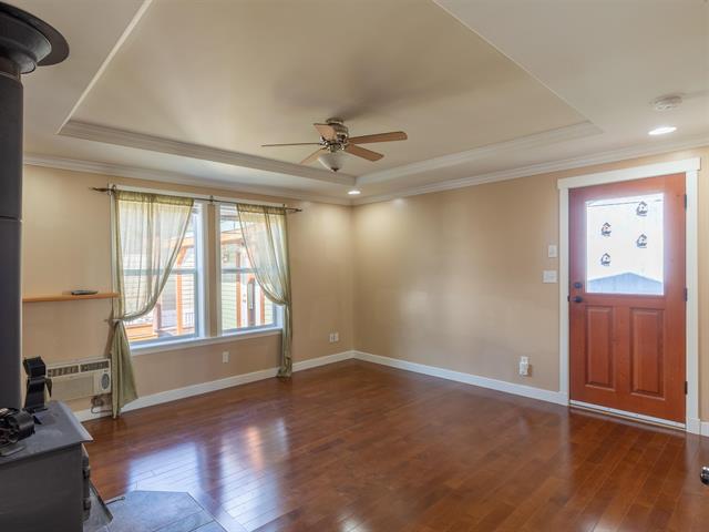 Affordable, beautifully updated two bedroom, one bathroom manufactured home. This home is move in ready! Walk in the front entry and admire the beautiful hardwood floors, spacious living area and beautiful ceilings. Stay warm beside your WETT certified, cozy wood stove. The Master bedroom is both spacious and functional with lots of closet space. The whole home has been updated with drywall, and the floors, walls and snow roof were equipped with R-20 insulation. Enjoy parking your car in the covered parking area, no more brushing snow off your car in the winter! There is also an insulated workshop next to the home and storage shed in the backyard. This home would be perfect for anyone looking for an affordable low maintenance home. Pad rent is $312/month.