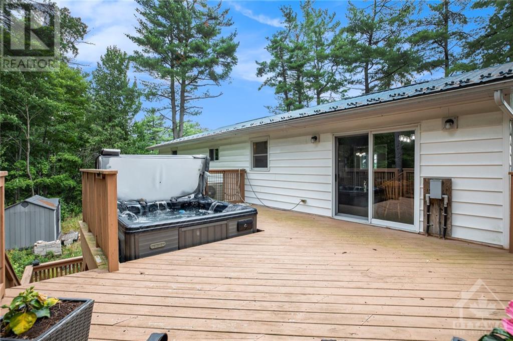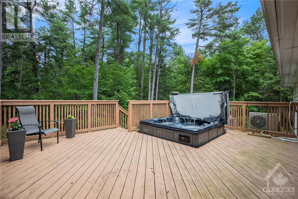 *NEW PRICE* Custom ranch style home sits on a 1-acre treed lot, private and well back from the roadside. The main level includes a spacious living rm, country kitchen with breakfast bar, dining rm with patio doors to the large back deck, main full bathroom, master bedroom & two additional good sized bedrooms. The finished lower area adds considerable living space starting with a solarium, family rm with a cozy pellet stove, a 3 piece bathroom, laundry rm, large mud rm side entry plus an attached 1 car garage (currently used as a workshop). The well treed front & back yards provide privacy & the back deck boasts a hot tub for melting the day away. Interior walls are insulated, for added soundproofing. Other features include 200 amp panel, a water softener, two ductless air conditioners, electronic air purifier & high ceilings on the lower level. A new well installed (99), steel roofing (00), freshly painted (23) & the windows are approx. 10 yrs old. Taxes $2405, Hydro $2695. (id:22211)