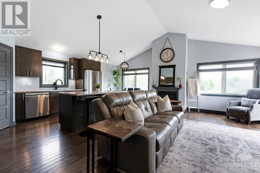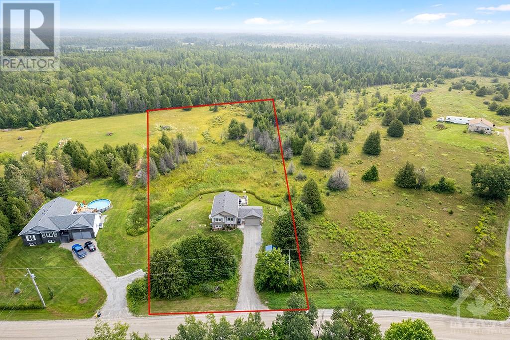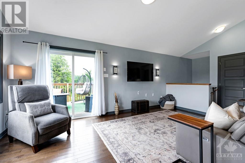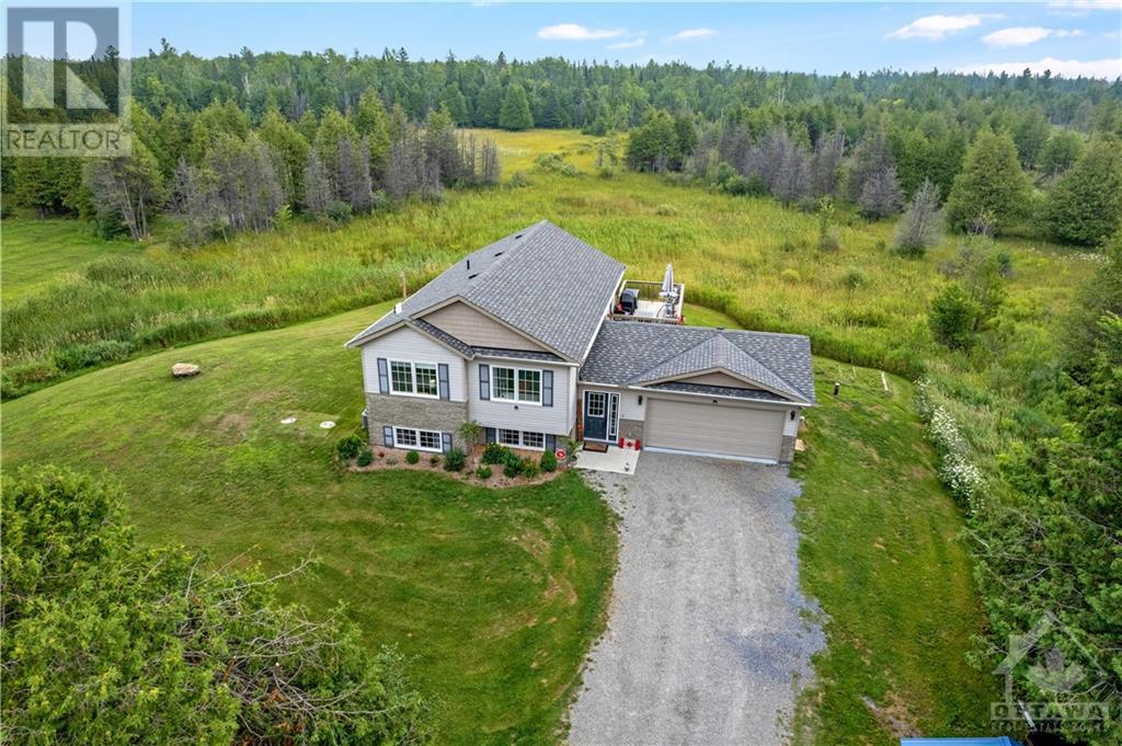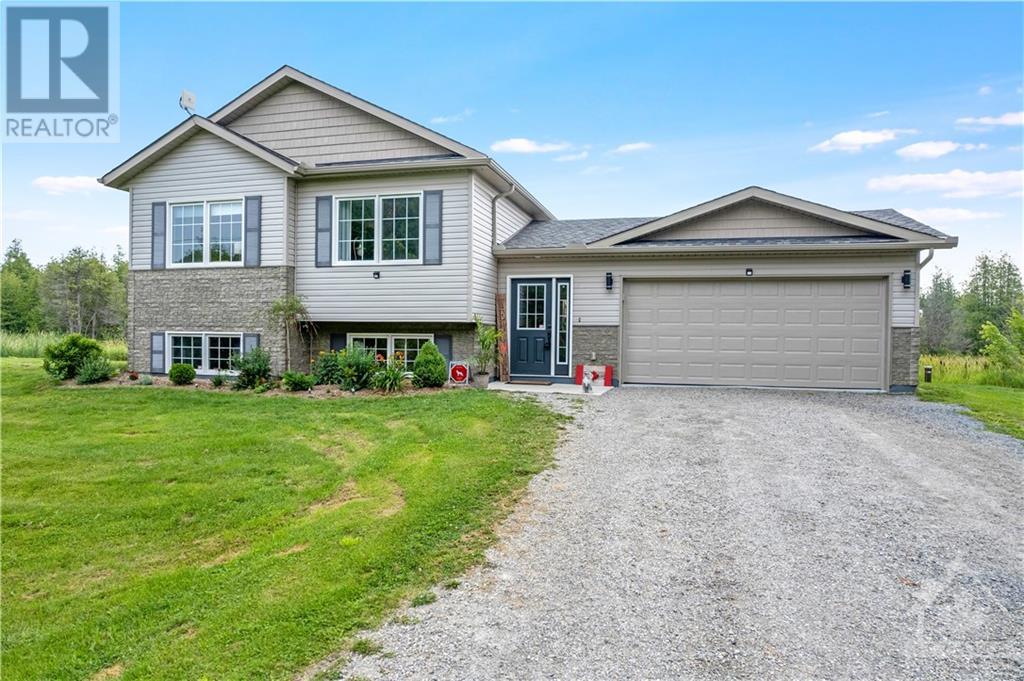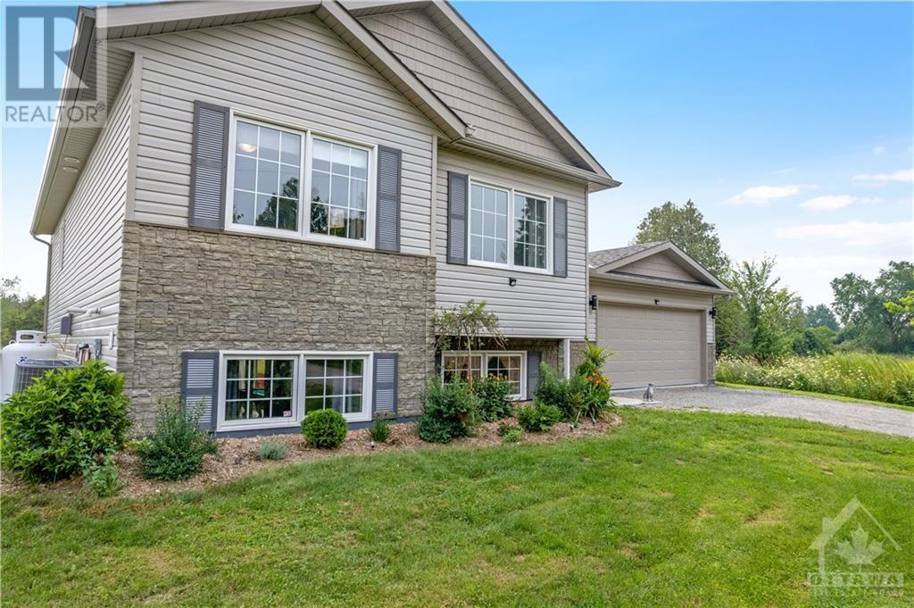 Desirable 2018 home with curb-appeal on 2 1/2 acres between Carleton Place & Smiths Falls. Sun filled, this stylish 3 bedroom, 2 full bathroom home has walkout lower level. Front foyer features 8' high ceiling, access to garage and open hallway to back door with double closet. The vaulted livingroom offers you architectural rounded corners, propane fireplace, large windows and patio doors to deck with BBQ hookup. Dining area open to kitchen with its island-breakfast bar and walk-in pantry. Hall door creates separate wing for primary bedroom, second bedroom and bathroom with luxury ceramic shower of glass doors, wall jets and rainhead. Lower level familyroom laminate plank floors and patio doors to yard. Here too is third bedroom, 4-pc bath, laundry room and lots of storage. Double attached garage has wall of shelves and yard door. Well-insulated home with Jeld-Wen Energy Star windows. Mail delivery. Garbage pickup. Hi-speed. 25 mins Carleton Place. 20 mins Smiths Falls. 30 mins Kanata. (id:22211)