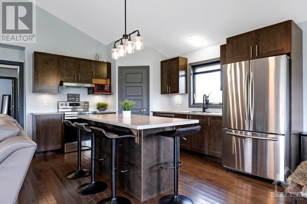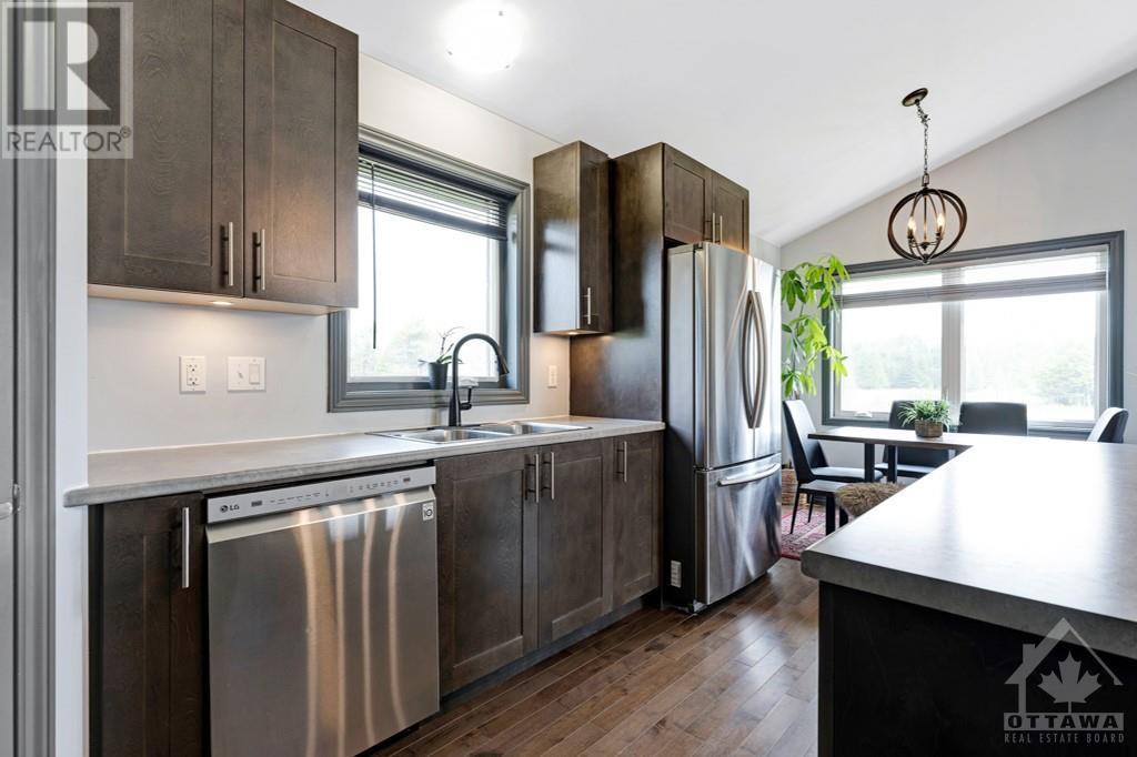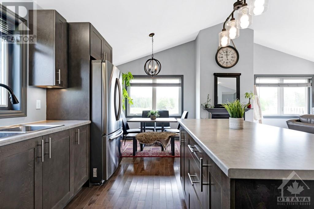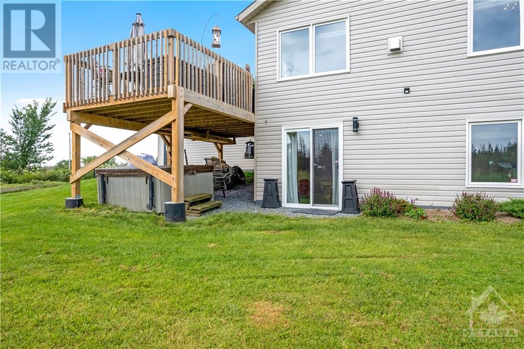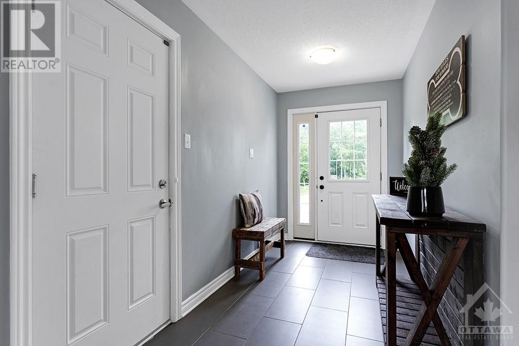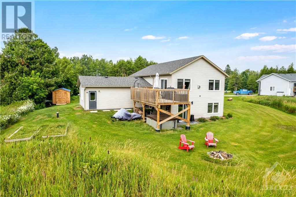 Desirable 2018 home with curb-appeal on 2 1/2 acres between Carleton Place & Smiths Falls. Sun filled, this stylish 3 bedroom, 2 full bathroom home has walkout lower level. Front foyer features 8' high ceiling, access to garage and open hallway to back door with double closet. The vaulted livingroom offers you architectural rounded corners, propane fireplace, large windows and patio doors to deck with BBQ hookup. Dining area open to kitchen with its island-breakfast bar and walk-in pantry. Hall door creates separate wing for primary bedroom, second bedroom and bathroom with luxury ceramic shower of glass doors, wall jets and rainhead. Lower level familyroom laminate plank floors and patio doors to yard. Here too is third bedroom, 4-pc bath, laundry room and lots of storage. Double attached garage has wall of shelves and yard door. Well-insulated home with Jeld-Wen Energy Star windows. Mail delivery. Garbage pickup. Hi-speed. 25 mins Carleton Place. 20 mins Smiths Falls. 30 mins Kanata. (id:22211)