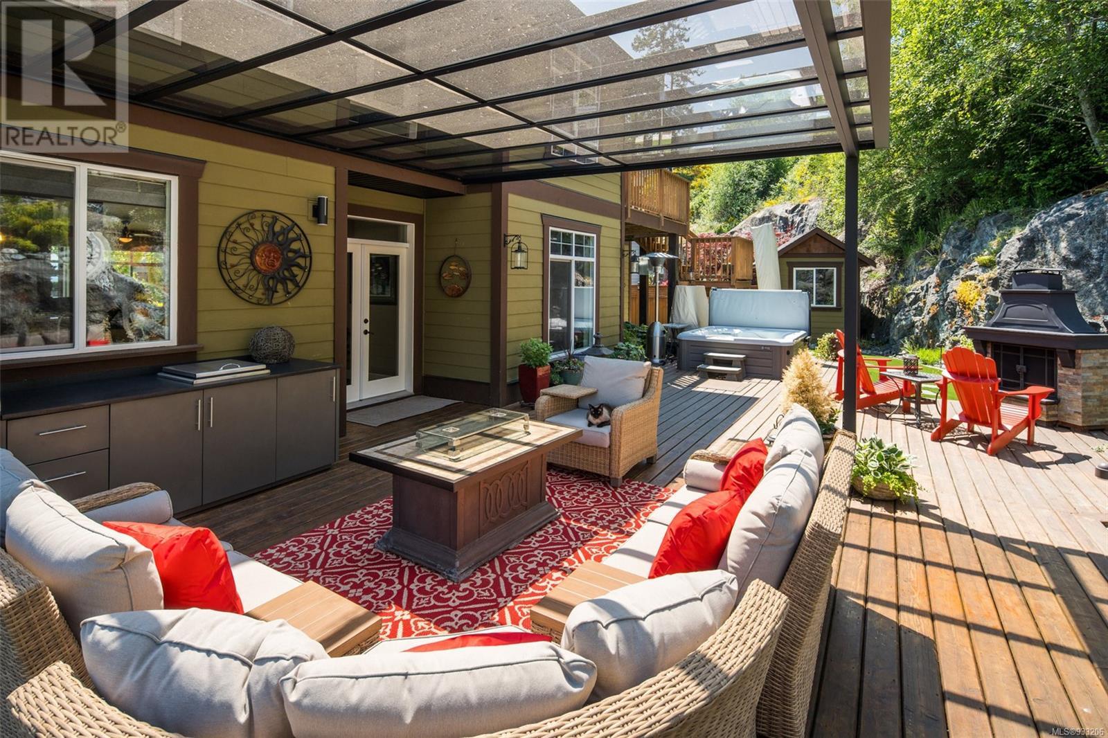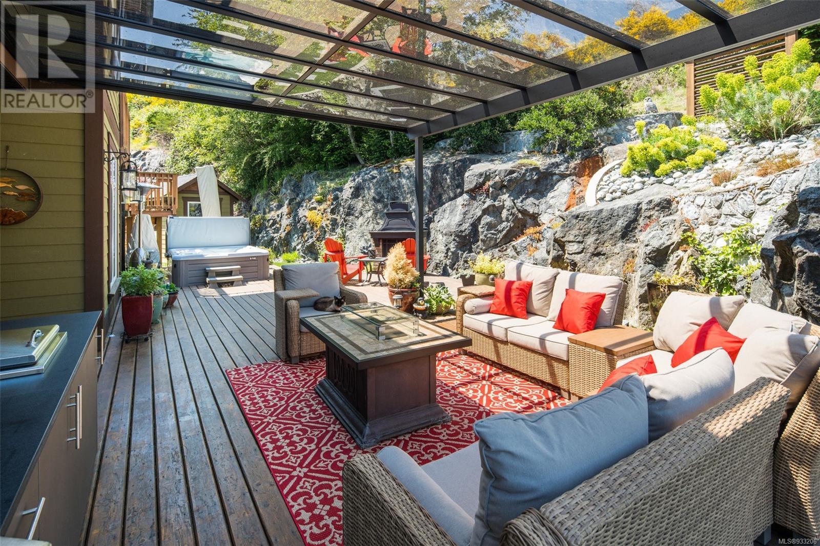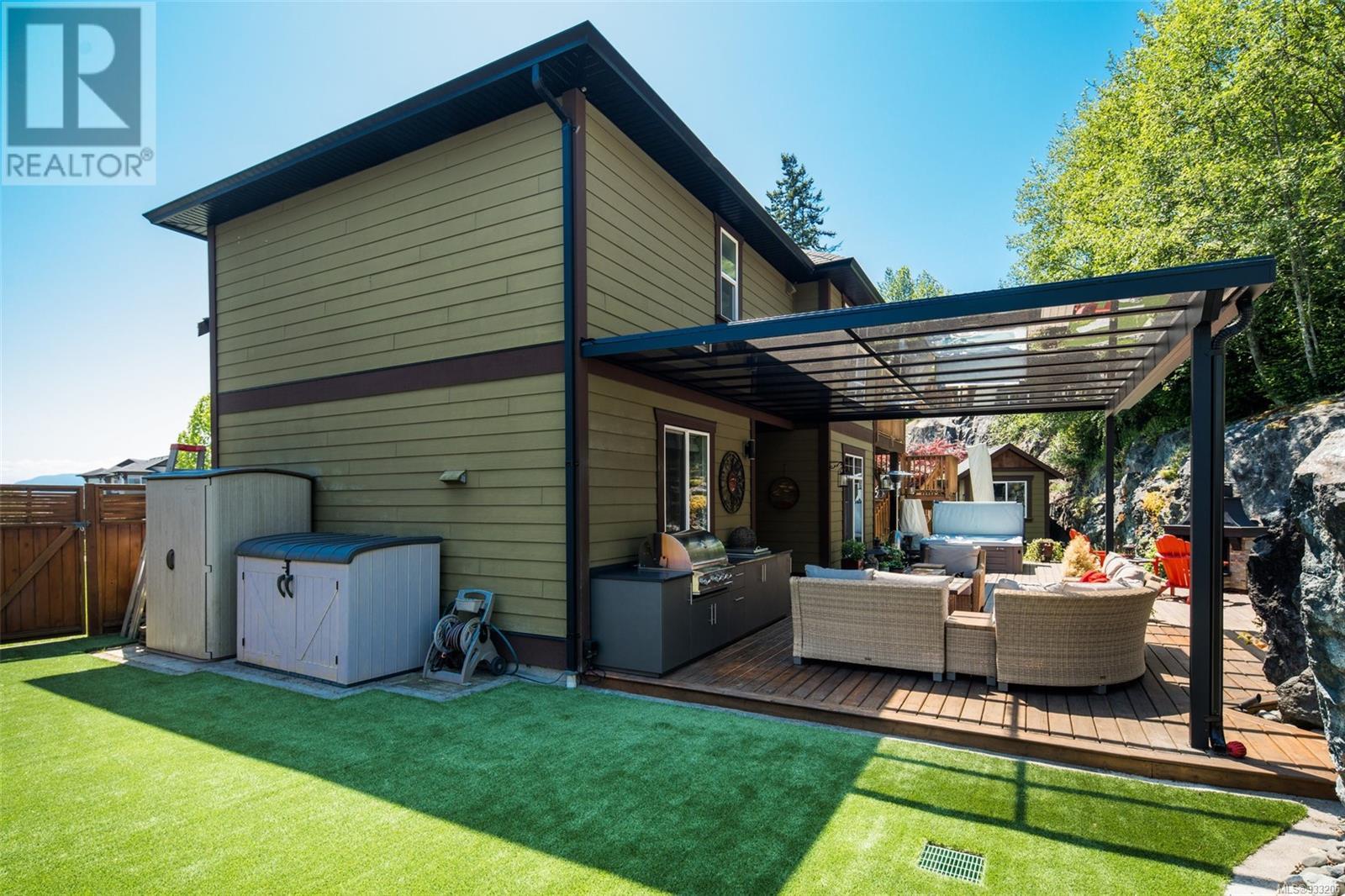 The impeccably built & thoughtfully upgraded family home you've been waiting for! Centrally located in coveted Stoneridge Estates, this 2011 built home boasts 2,800+sf of elegant living w/all the bells & whistles. Open-concept main features bright & spacious living w/3-sided FP & wall of windows w/custom shades. 9' ceilings & engineered hardwood. Gourmet kitchen w/granite counters & SS appliances, gas roughed-in! French doors open to backyard oasis where all the magic happens! Sprawling private patio w/custom awning, outdoor kitchen, hot tub, FP, & more! Even better, see it at night! An entertainers dream, or the perfect personal retreat. You decide. Full den, laundry, & dbl garage complete the main. Upstairs, find 3 sizable bedrooms including primary retreat w/WIC, 4-pce ensuite, & ocean & mountain views! Bonus: legal, loft-style bachelor suite w/sep. entry & laundry shows like new! Perfect for family, guests, or mortgage helper! Plenty of parking & room for toys. This one has it all! (id:22211)
