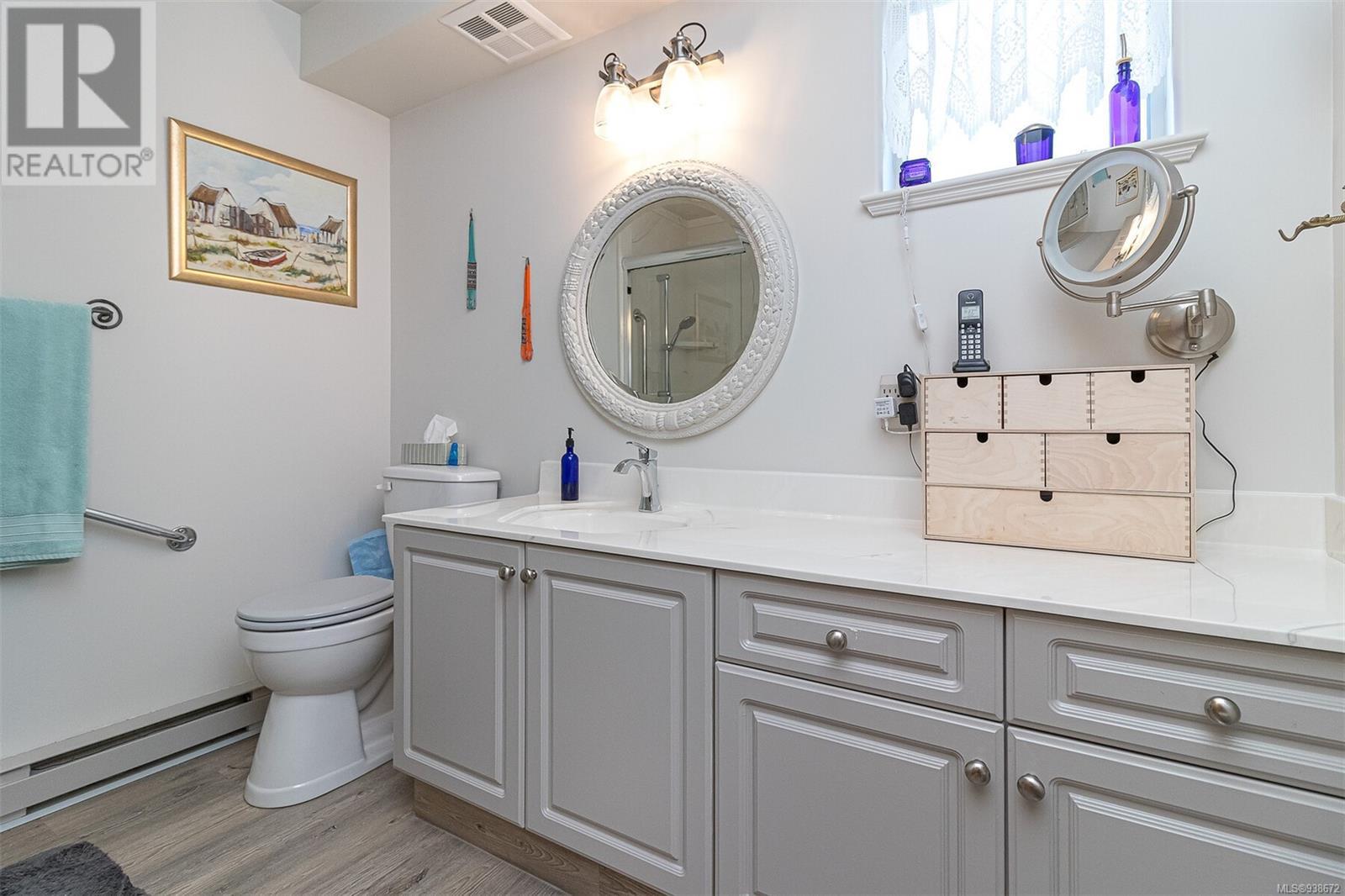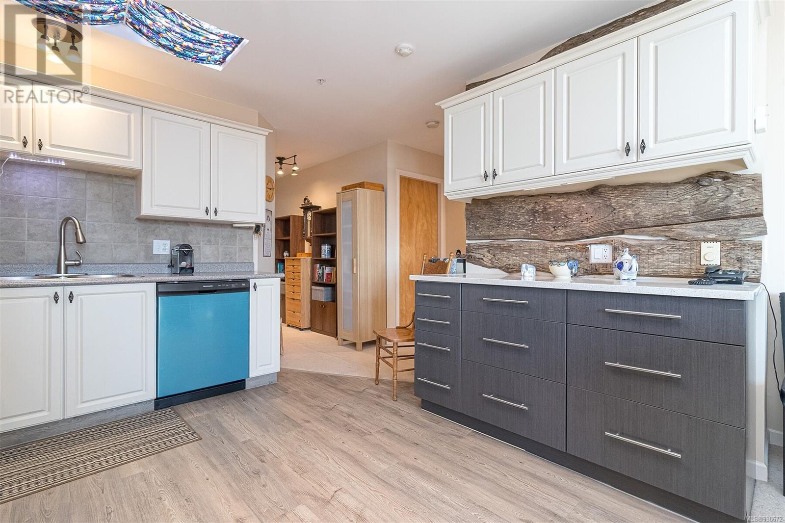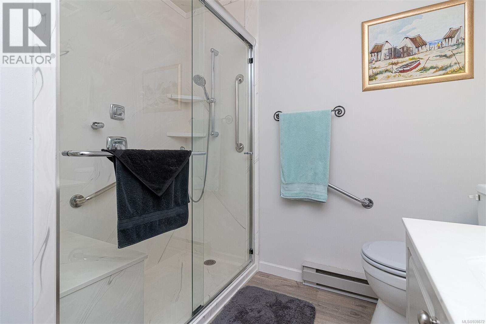 Sandpiper Penthouse. Sit back and Enjoy the amazing water & mountain views from this top floor Gem. This unit prides on being one of the largest floorplans available in The Sandpiper and features 9ft ceilings with gorgeous skylights. Unit includes two full bedrooms, and a den or family room. Open Living room with Fireplace and sliders to sun soaked balcony. Inline dining. Large Kitchen with loads of cabinets including newer buffet style cabinet w/ quartz counter top. Powder room and separate laundry w/ a view. Primary Bedroom offers walk-in closet and brand new 2 person marble shower with rainhead, sliders & bench. a $11,000 upgrade. Separate storage and covered parking included. Common Property includes recreation room & guest suite. New roof included and paid for, & will be completed Summer of 2023! Super handy location. This Friendly 55+ Building is short walk to The Sooke Core, which has everything, including shopping and bus route. Make this your first choice in Retirement Living. (id:22211)