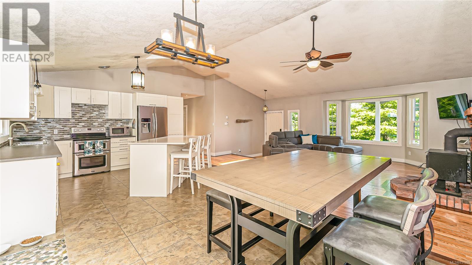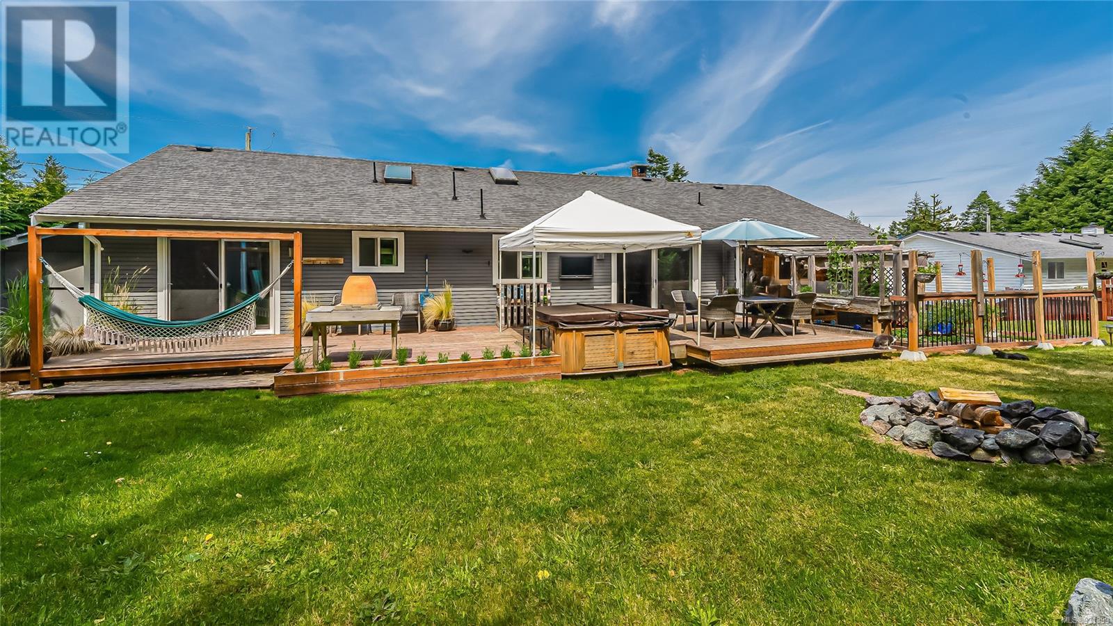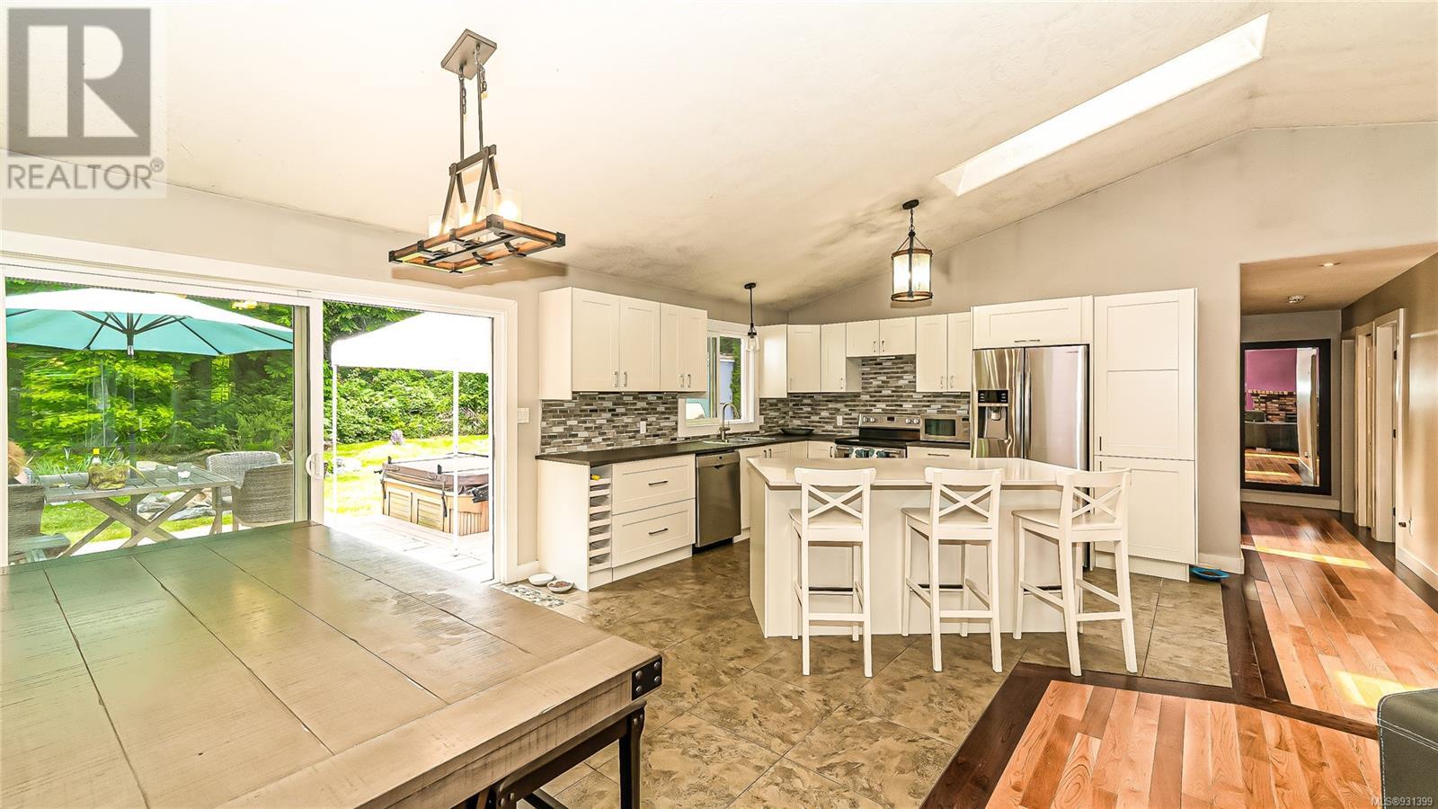 Now Available $834,900!! Welcome home to your own private oasis . This 1/4 acre property offers seclusion and room to relax in a family friendly neighbourhood. Beautifully updated 3 bedroom 2 bathroom one level rancher . Huge, open concept living/dining area features a wood stove and vaulted ceiling , with hardwood floors . Updated kitchen with new fridge and dishwasher , large island, ample cabinet space and skylight . Large primary bedroom boasts a walk-in closet, 3 piece ensuite and sliding doors to deck. Bathrooms with heated tile floors Private backyard perfect for entertaining with large deck and covered BBQ area and Hot tub backing onto wooded area. Large garage and easily accessed crawl space excellent for storage. This home is in move-in condition! Great for retirees or small families .Minutes to town, close to parks , schools , and bus. (id:22211)
