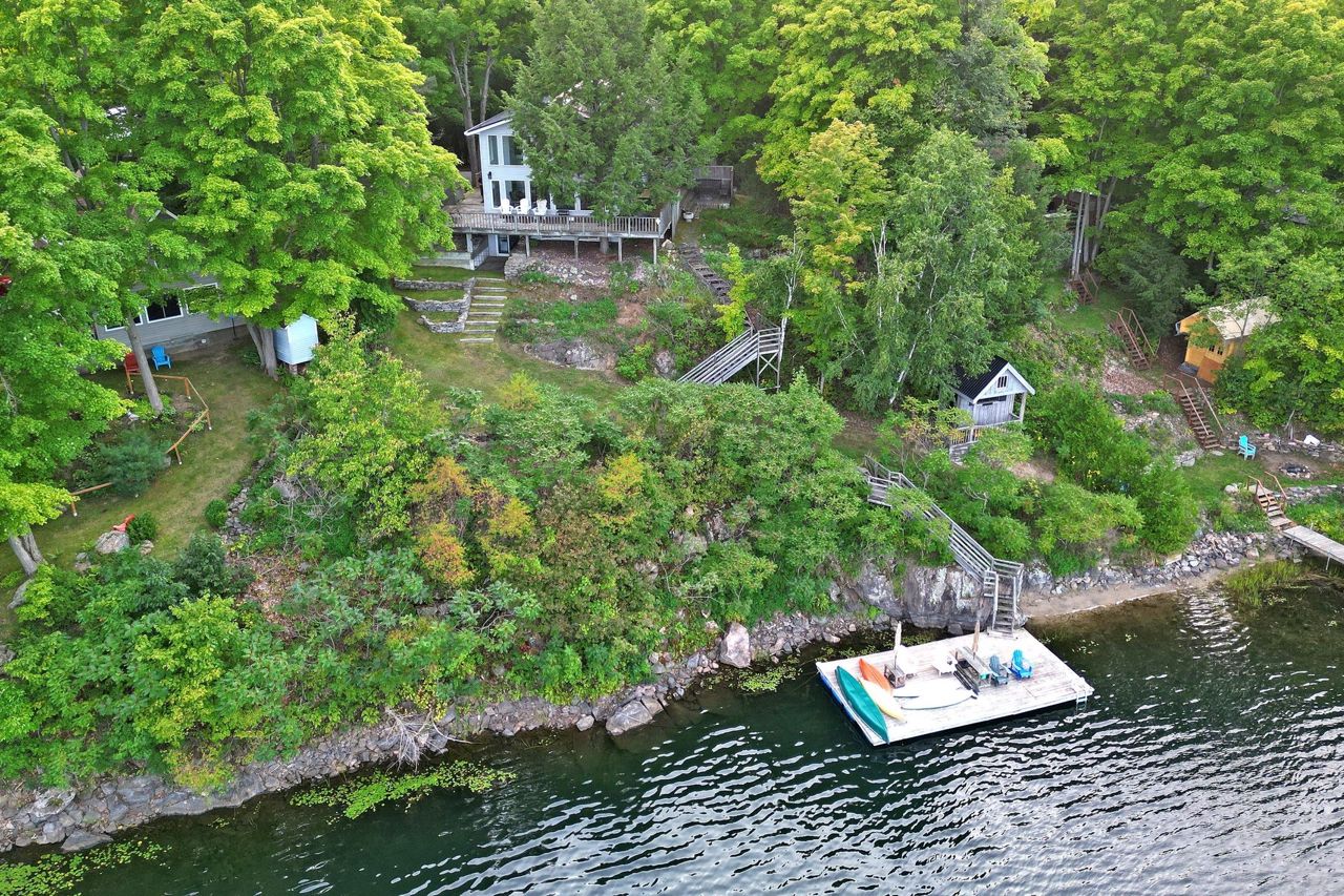 Indulge In A World Of Luxury And Natural Beauty At This Private Waterfront Sanctuary On Thirty Island Lake, Kingston. This Stunning All-Season Property Boasts High Ceilings, Picture Windows With Breathtaking Lake Views, A Private Larger Dock, A Private Beach, And Unbeatable Privacy. With 160 Feet Of Direct Water Frontage, This Property Offers Panoramic Views Of The Serene Lake. The Tastefully Updated 3-Bedroom, 2-Bathroom Home Features A Cozy Fireplace, Open-Concept Design, And A Large Deck For Entertaining. Complete With An Oversized Detached Garage/Workshop And Well-Appointed Bunkie, This Retreat Is Perfect For Relaxation And Recreation. Experience The Pleasures Of Year-Round Living In This Exceptional Lakefront Paradise.Heating: Baseboard, Electric, Fireplace-Propane, Woodstove, Ceiling Fans, Propane Tank, Water Heater, Dishwasher, Dryer, Microwave, Refrigerator, Satellite Dish, Satellite Equipment, Stove, Washer, Window Coverings