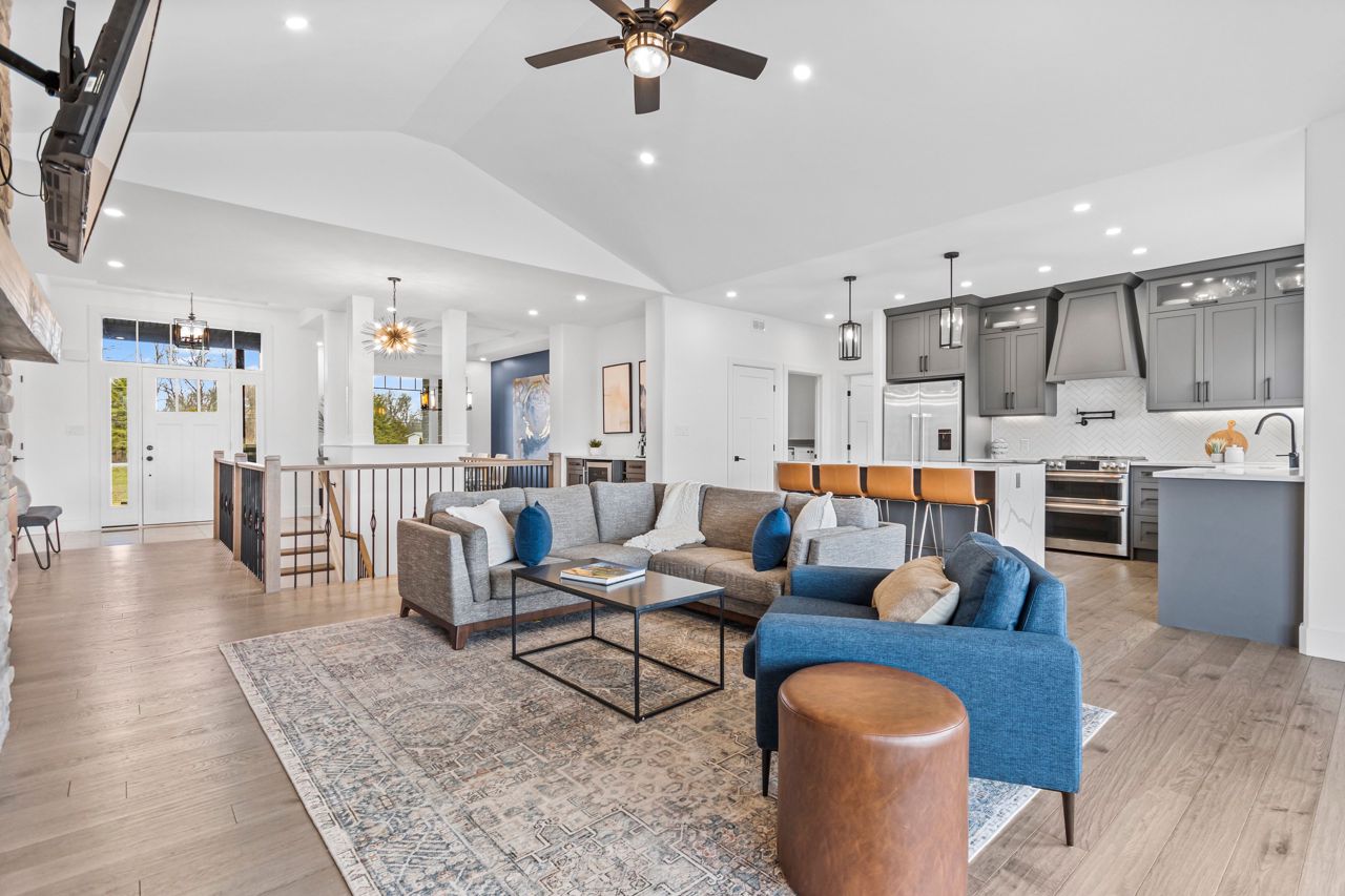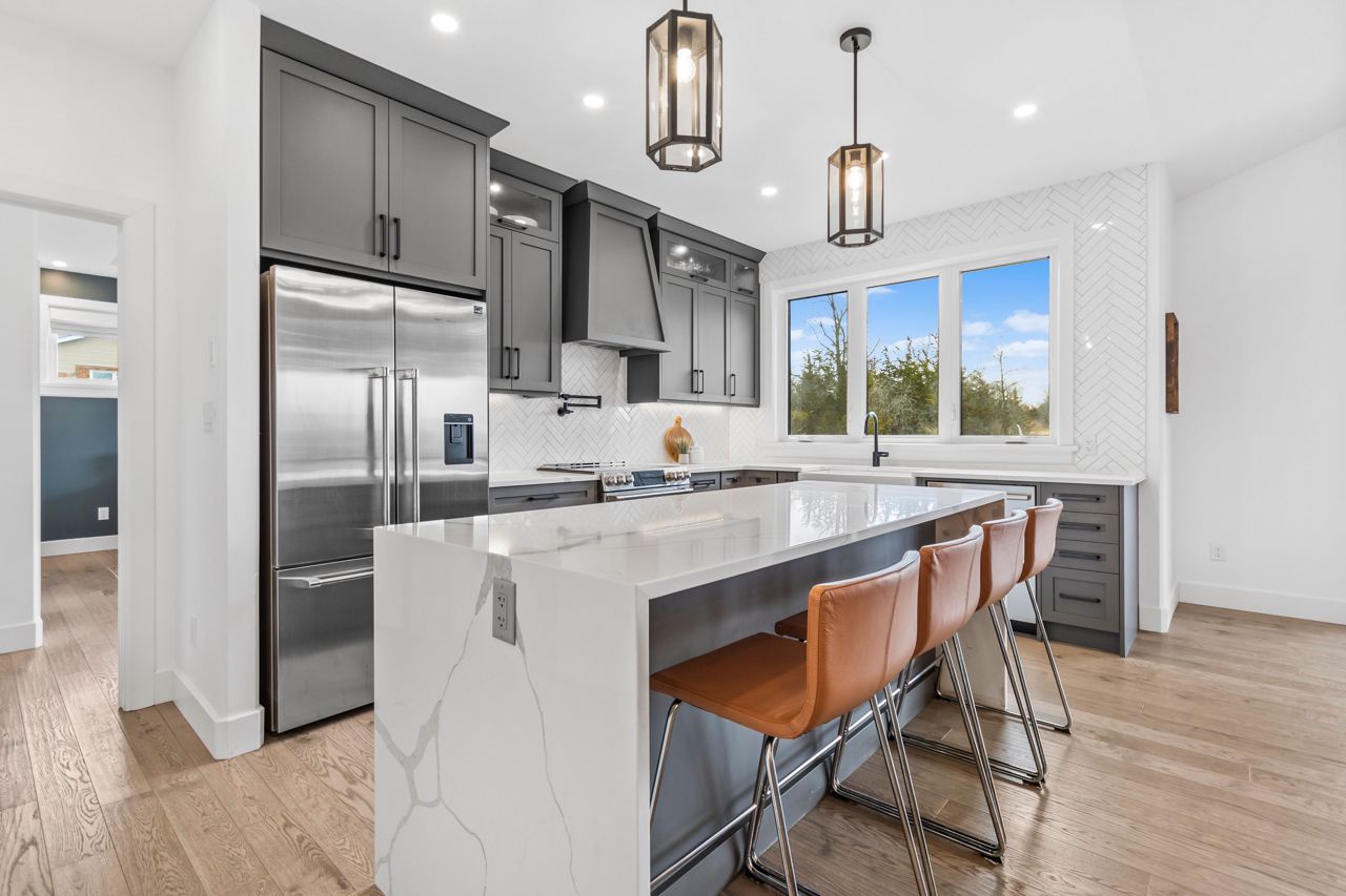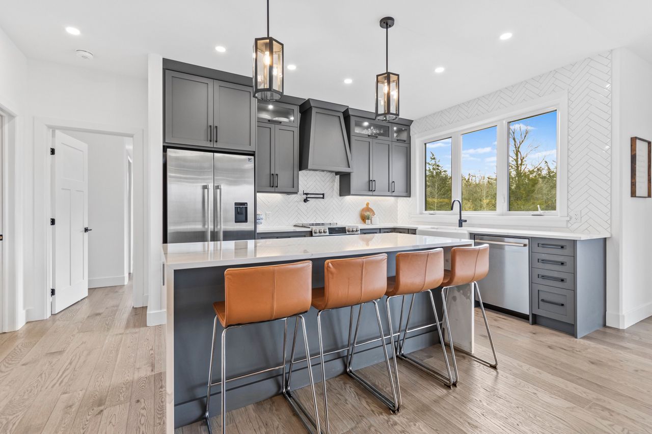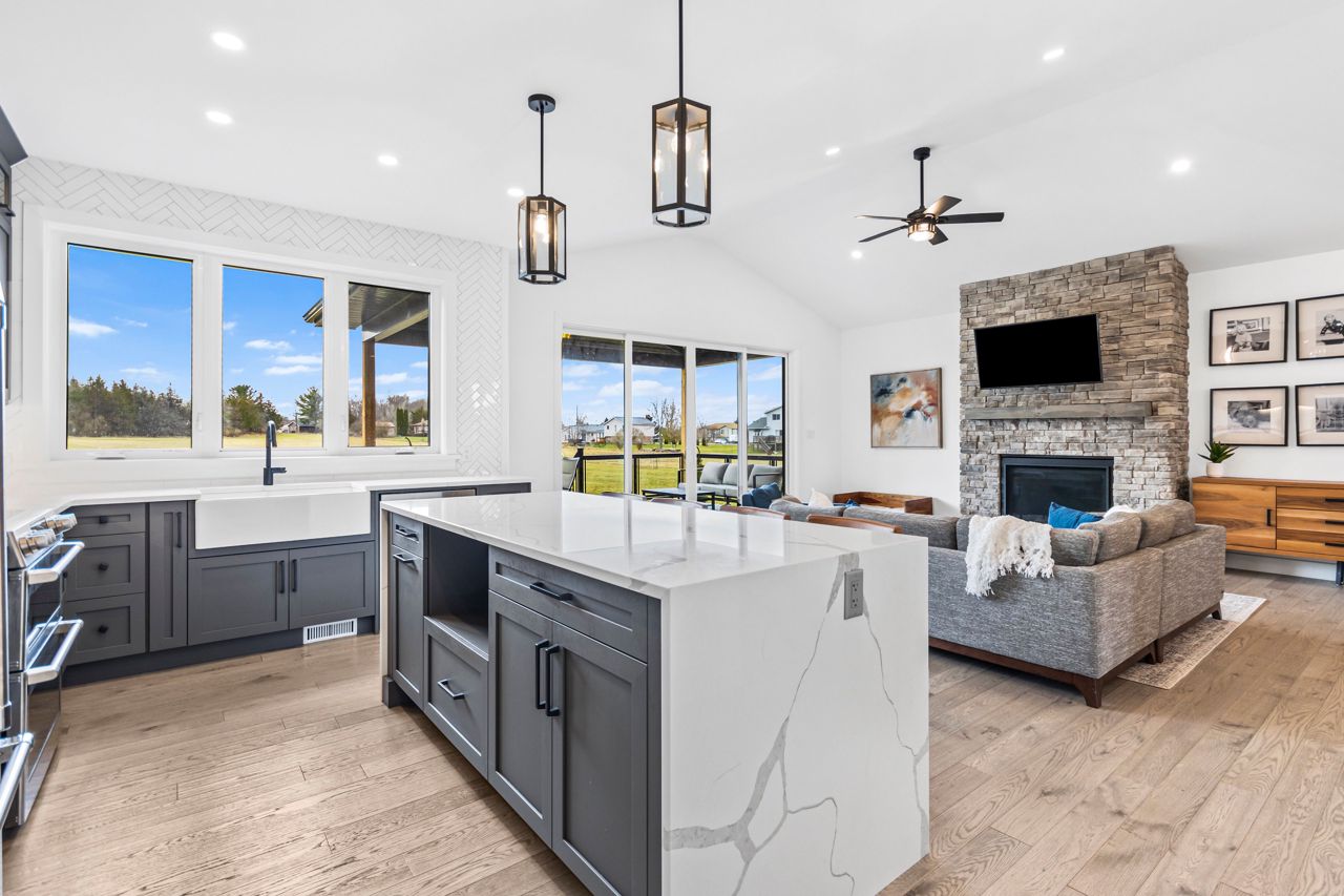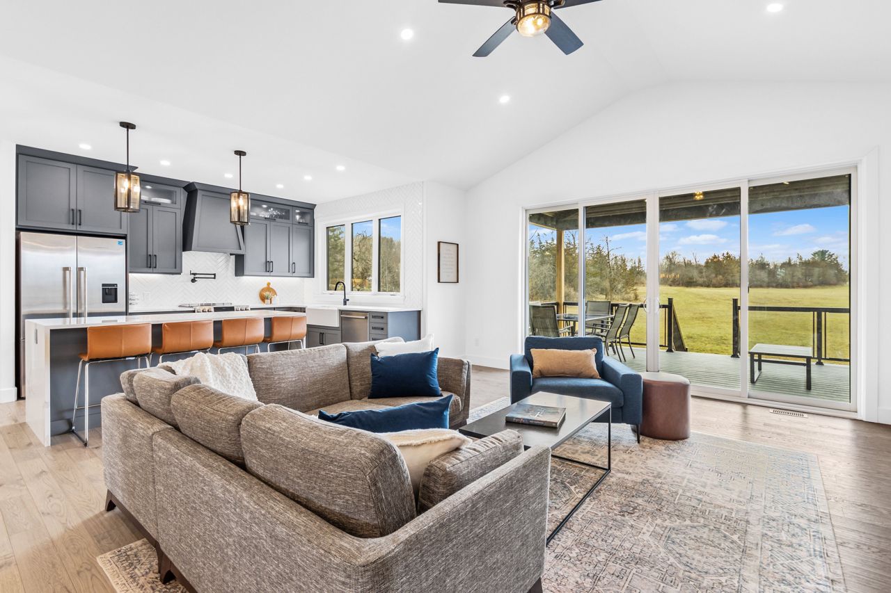 Beautifully built in 2020, custom bungalow with attached three car garage, sits on just over five acres and only 11 minutes from the 401. Through the front door, you will be greeted by the open concept layout and 12' cathedral ceilings in the living room. Large dining room, with coffered ceilings. Large kitchen has quartz waterfall island, built-in appliances and a pot filler. Plenty of cupboard space and a large pantry. An abundance of natural light fills the home from its many windows. Patio door leading out to the stunning glass railing covered deck with unobstructed views of the property. Main floor laundry room with garage entry, primary bedroom with 9' coffered ceilings, large walk-in closet with built ins, stunning 5pc ensuite with glass shower and soaker tub. Two additional bedrooms and 4 pc bath. Finished LL, modern and cozy living room with electric fireplace, ample storage room space, a second entrance into the garage, a bright bedroom, office space, gym, den and 4pc bath**Interboard Listing: Kingston & Area Real Estate Association**