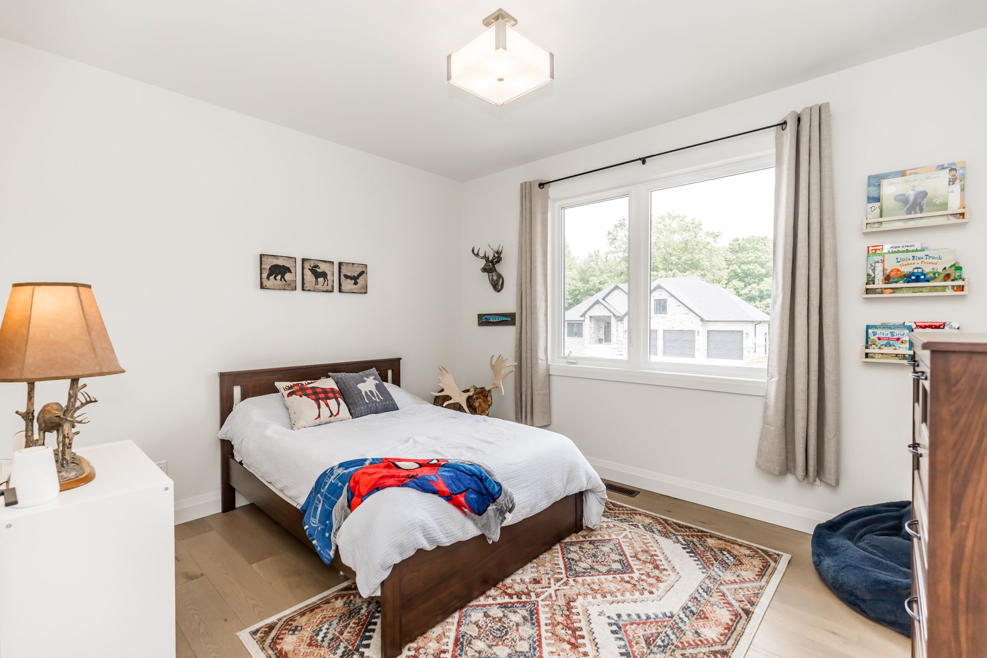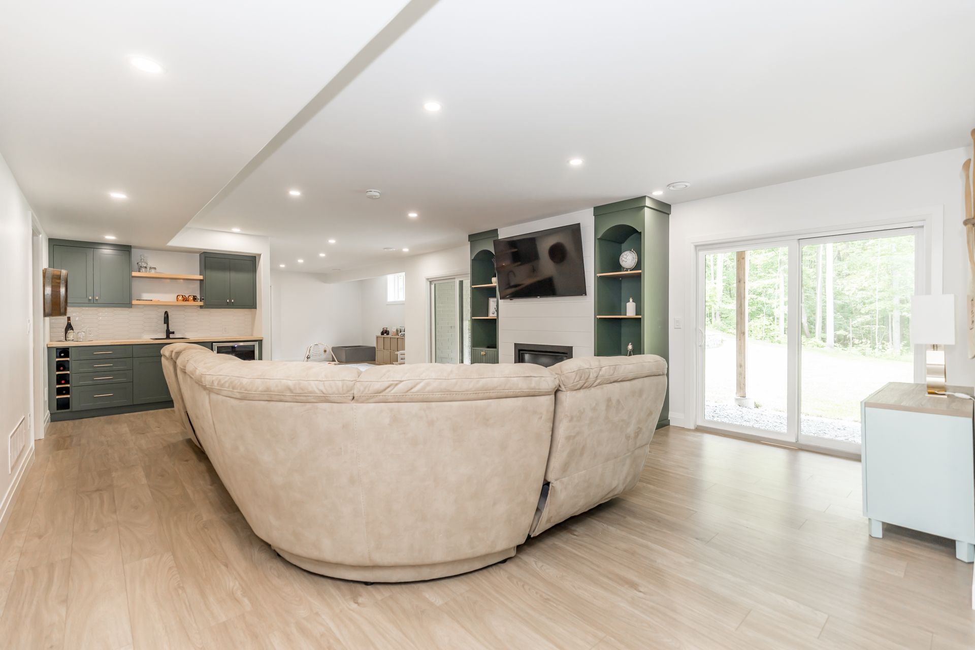 Welcome to Executive Estate living in Snow Valley, where you can indulge in skiing, golfing, and trails. This prestigious community harmoniously blends natural beauty, amenities, and a top-notch school. The custom-built Arizona Inspired Bungalow by Daycore awaits you, showcasing meticulous stonework, mature trees, and a premium cul-de-sac lot. Step inside to discover a captivating open layout with vaulted ceilings. The great room and dining area feature a modern stone gas fireplace and elegant European Oak hardwood flooring. The sliding glass doors lead to a sprawling back deck with stunning forest views, creating a serene outdoor retreat. The gourmet kitchen embodies sleek modern design with a custom quartz island. The master bedroom offers a spa-like ensuite with a glass shower, heated floors, and a luxurious soaker tub. The partially finished walkout basement with abundant windows and tall ceilings provides additional views, natural light, and eliminates the typical basement feel.Cozy up for sports games or movies in the rec w/custom built-ins, gas fp & wet bar. Lots of rm for the fam & guests w/2 bdrms, full bath, playroom, large closet, bonus rm & ample storage. Walk-up through the sep entrance to a 3 bay garage.