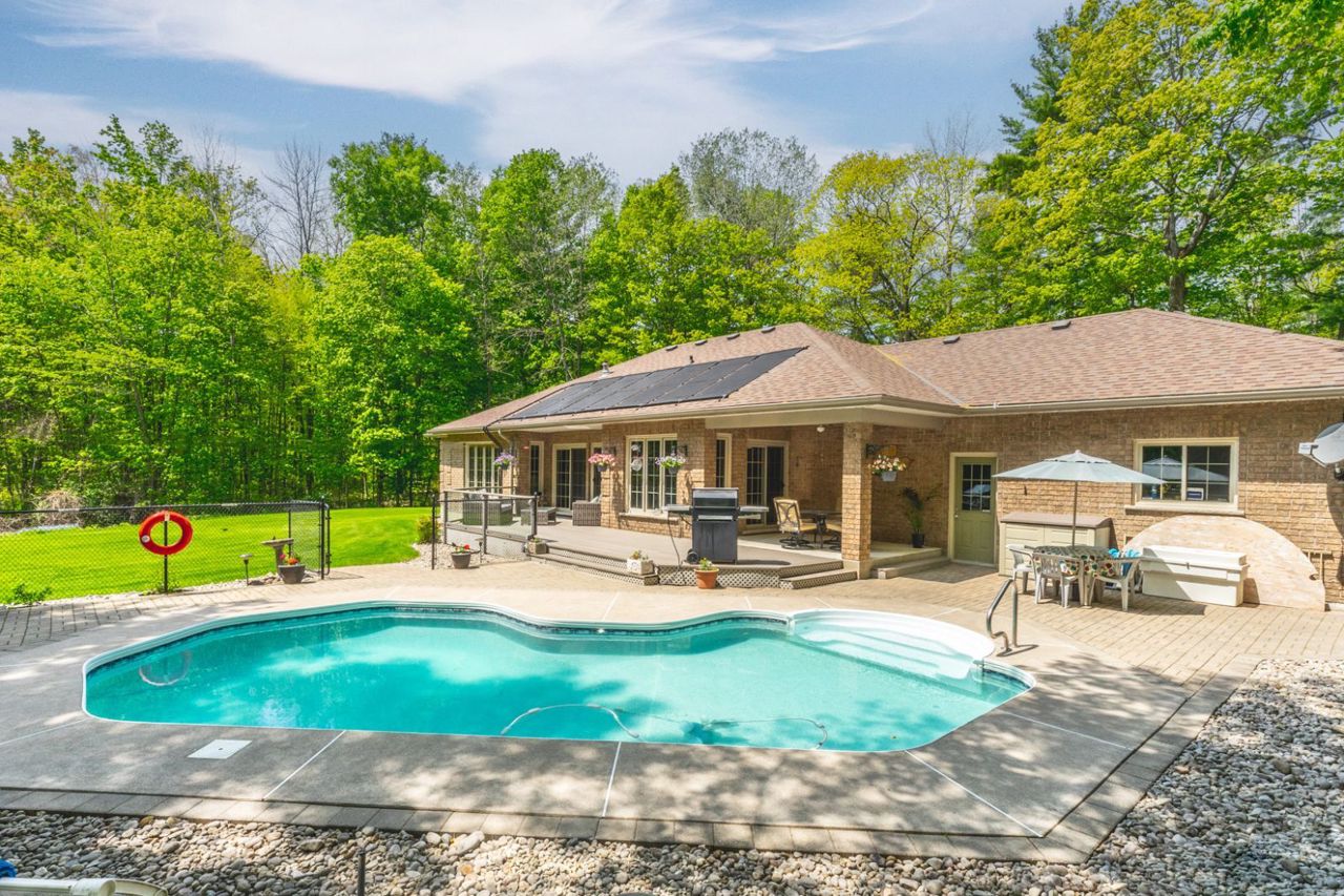EXCELLENT BUNGALOW FOUND ON A GENEROUS 1-ACRE LOT IN THE NATURE-FILLED SNOW VALLEY REGION! Beautiful home surrounded by environmentally protected land, near Snow Valley Ski Resort, golf, & hiking. 5 mins away from Barrie to access amenities & Hwy 400! Complete brick bungalow w/oversized/attached 2-car heated garage & triple-wide driveway w/parking for boats, RVs, & snowmobiles. Backyard w/free space to store your toys, & an RV hook-up! Enjoy the inground/saltwater pool, deck, & sprinkler system. 3966 sq ft of bright interior living space! Family room w/double glass doors that open to the back deck. Kitchen w/ S/S appliances & eat-in space w/W/O. Private dining room & powder room is great for hosting! 2 main floor beds served by a 4-pc bath. Primary suite w/W/I closet, laundry, & a 4-pc ensuite. Mudroom w/garage entry & a side entrance. Fully fin basement w/in-law capability, a rec room, living/dining room, kitchenette, bed, bonus room, & 3-pc bath.