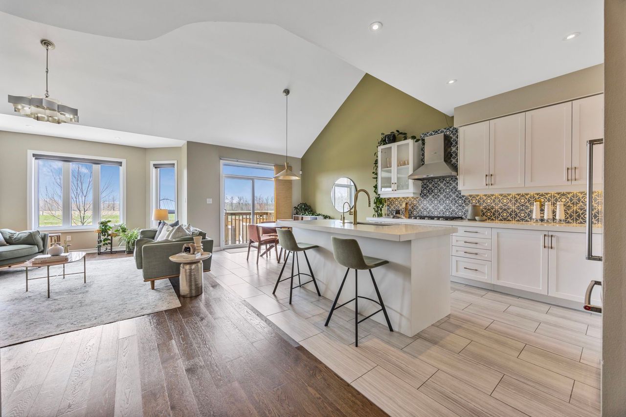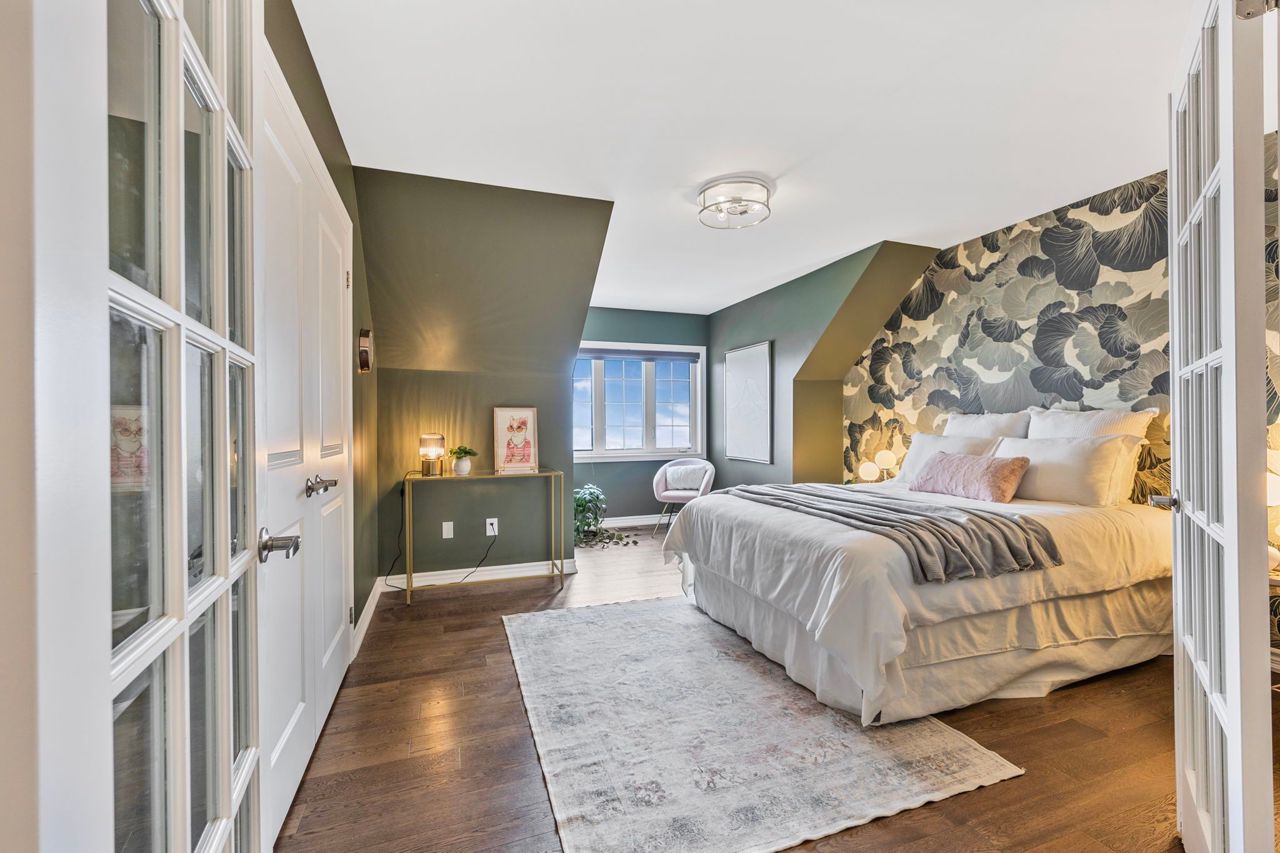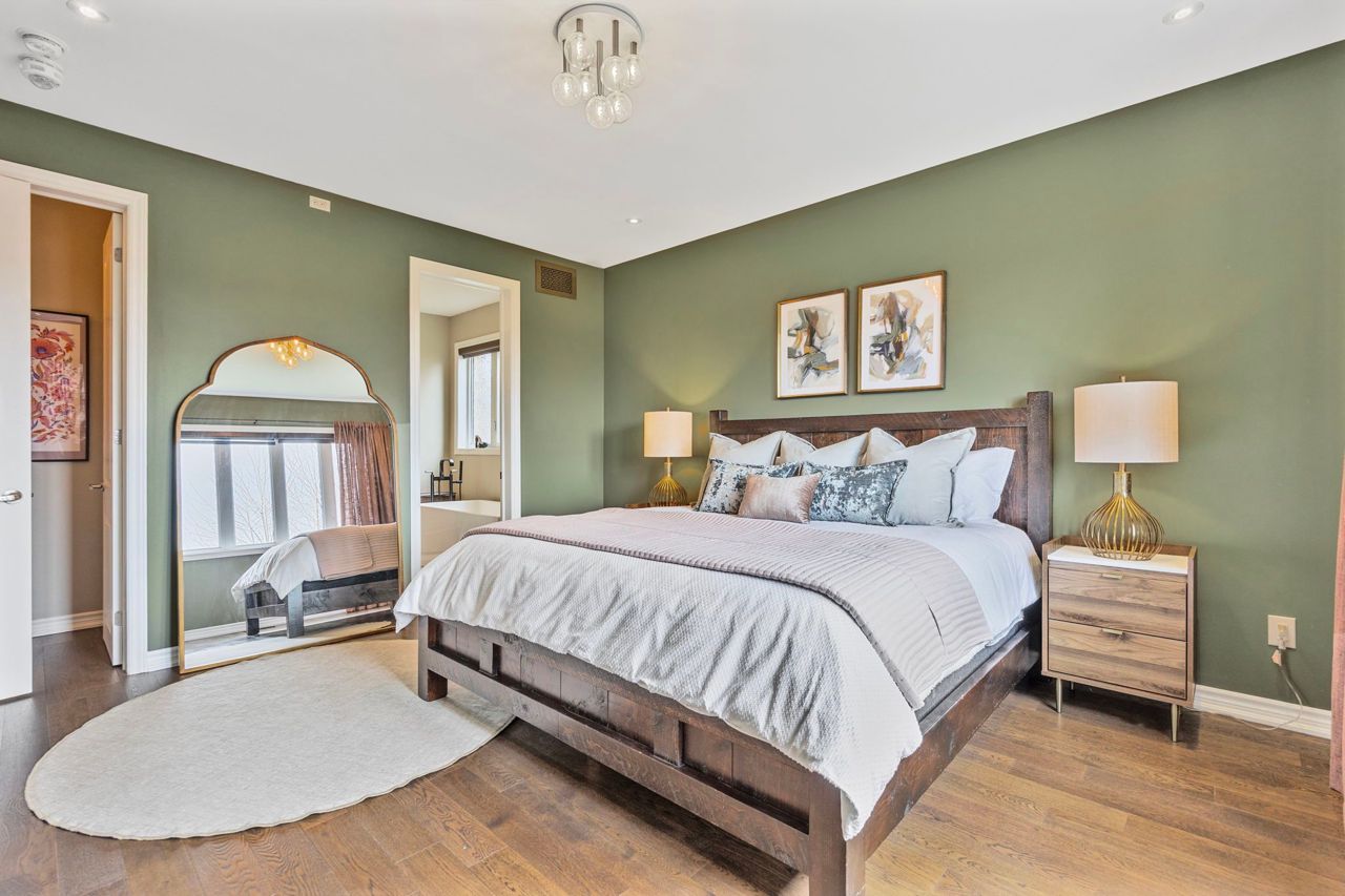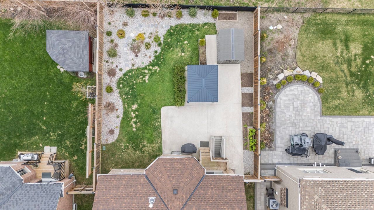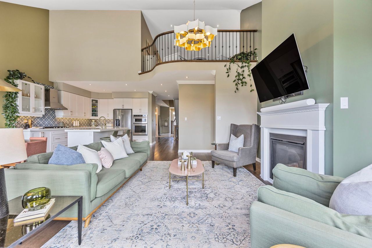 Stunning New Bungaloft in Prestigious Stonemanor, brand new to market! Over 4,000 Sq Ft of Luxurious Living Space! Welcome to this beautifully upgraded 4+2 bedroom, 4-bathroom bungaloft, perfectly positioned on a premium lot with no rear neighbors for ultimate privacy. Enjoy the gorgeous sunsets right from your backyard! This elegant home offers exceptional design and functionality, featuring two kitchens, two laundry rooms, a separate entrance to a fully finished and permitted basement suite (2023), and a thoughtfully landscaped yard with concrete pad patio and in-ground sprinkler system (2024), ideal for entertaining and multi-generational living. Step inside to soaring 17-ft cathedral ceilings in the main family room, highlighted by a cozy gas fireplace and expansive windows with custom remote-powered blinds. The main level boasts rich hardwood floors, pot lights inside and out, designer lighting (2022), and a gourmet kitchen with quartz countertops, custom cabinetry, updated backsplash (2022) and flooring, built-in gas cooktop, wall oven/microwave, reverse-osmosis water filter, and a new dishwasher (2024). The formal dining area, front office (or 4th BR), and custom walk-in closet in the primary suite add both beauty and functionality. Retreat to the fully finished basement suite with two spacious bedrooms, full kitchen with new appliances (2024), remote-powered blinds, updated bathroom vanity, and large living area, perfect for guests, rental income, or extended family. Additional upgrades include: new wash tower (2022), fresh paint throughout (2022 & 2025), updated electrical panel with surge protector (2023), and a fully remodeled primary ensuite (2025) for spa-like relaxation. Located in a sought-after community with easy access to parks, schools, and amenities, this home has been meticulously maintained for peace of mind. Immaculate and move-in ready, this property truly has it all!