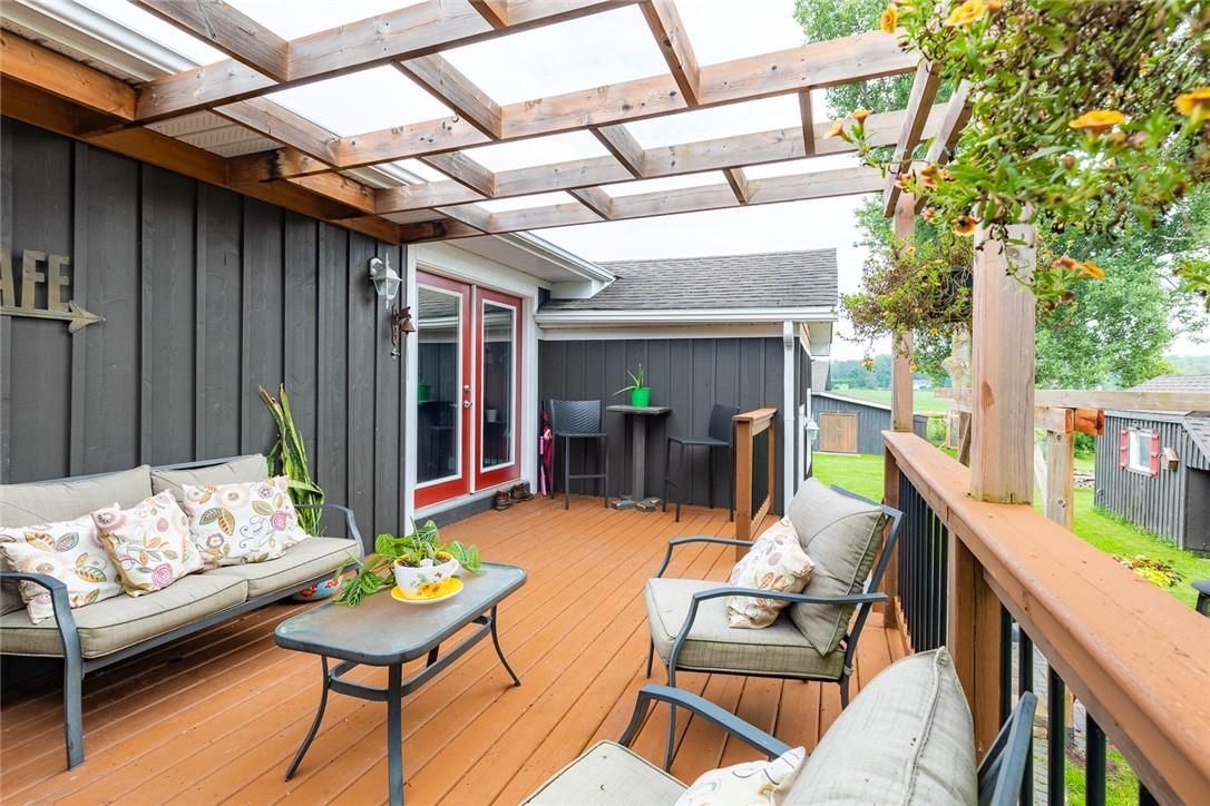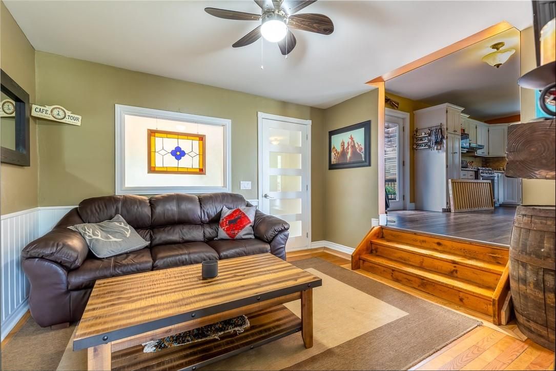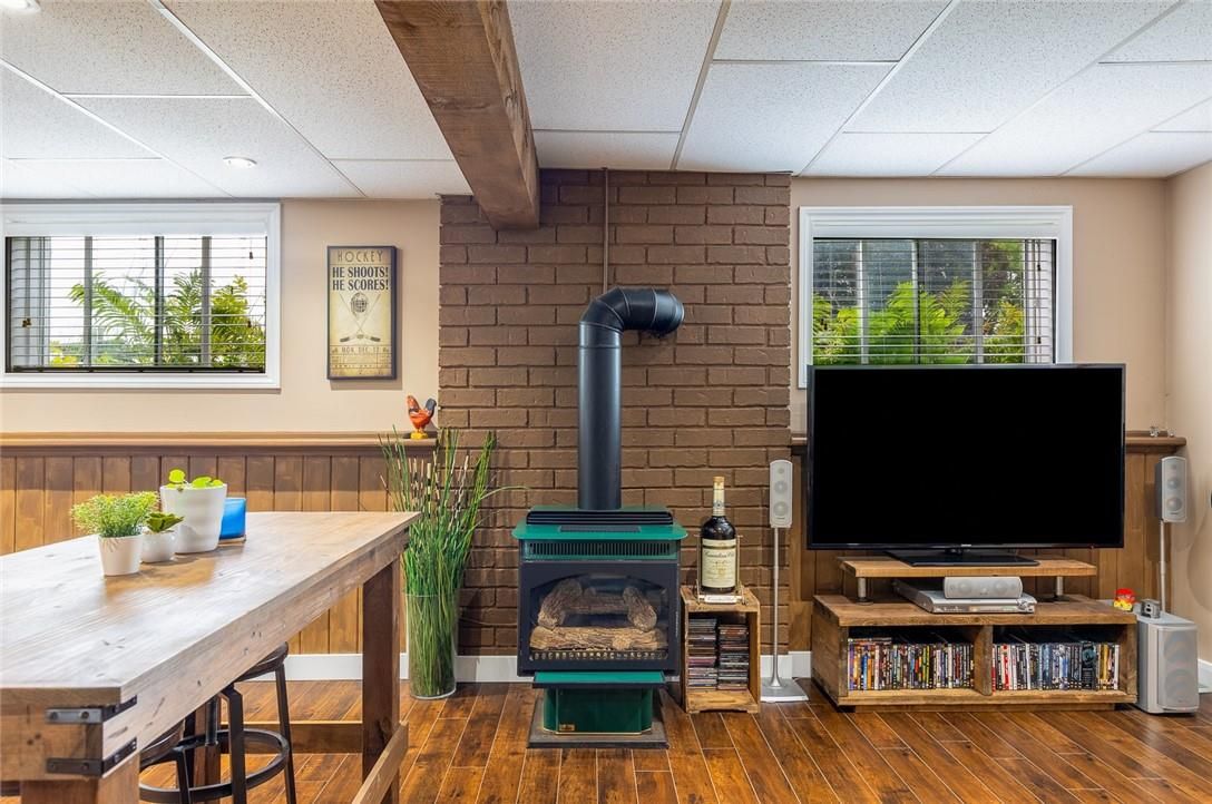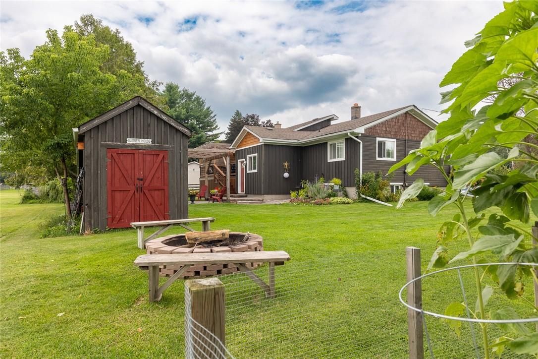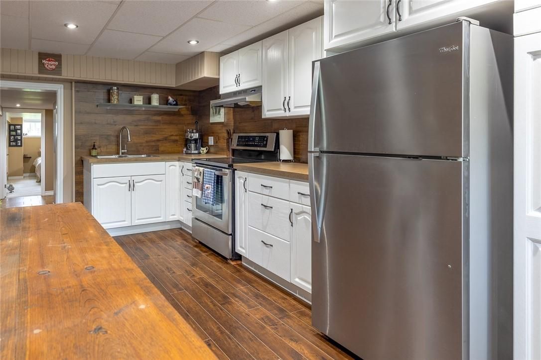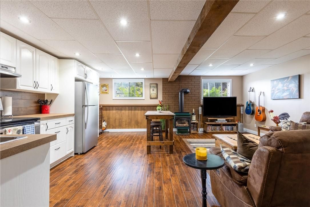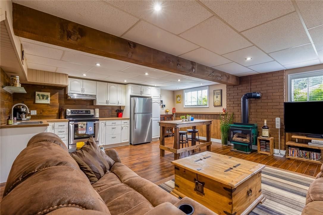Move in ready smoke and allergy free home can be yours. This home is perfect for entertaining boasting an open concept bright rustic kitchen dining room combo with an abundance of cupboard and counter space plus an island. Step down to a cozy living room with heated electric fireplace. Down the hall is the large master BR with sitting area (could be converted back to 2 BR) and a second good size BR with double closets. Both living room and kitchen access the backyard patio and deck. Basement has a gorgeous open concept full kitchen/dining room and living room space with large bright above grade windows, gas fireplace, double sink, wainscotting and loads of pantry counter and cupboard space. Basement has a good size 3rd B/R with above grade windows and large closet with carpet + a 3 pc Bath. Backyard showcasing a unistone patio with gazebo, plus 10'x20' deck off the kitchen, large shed for storage, 28'x21' fully insulated & heated garage w 40amp panel, extra storage back of the garage.Well built chicken coop run including keeping the chickens. The laundry/utility room has shelving for storage, sump pump, 100 amp panel, well pump, water softener, water purification system. Don't miss out on this very well maintained home!