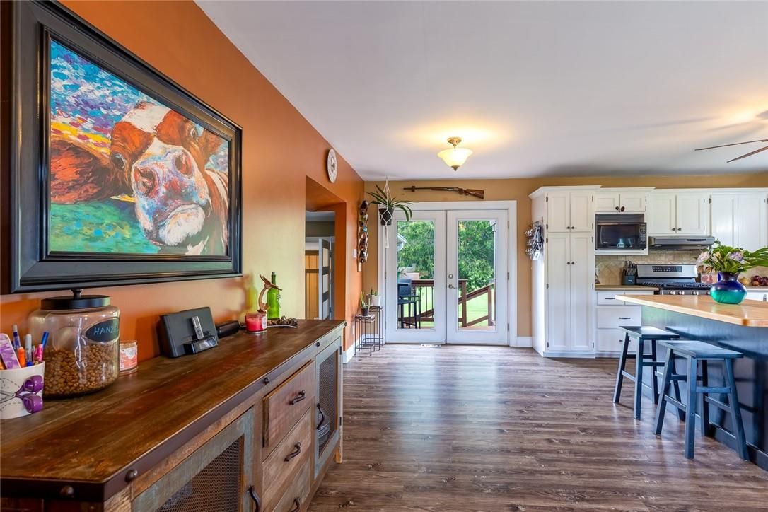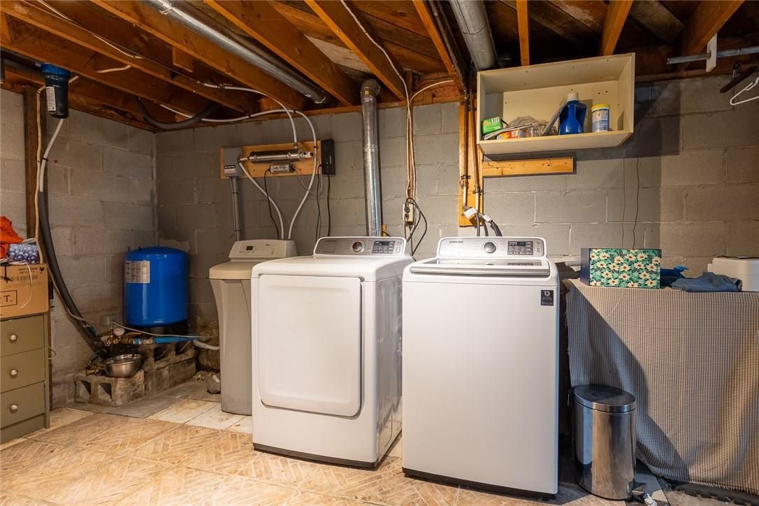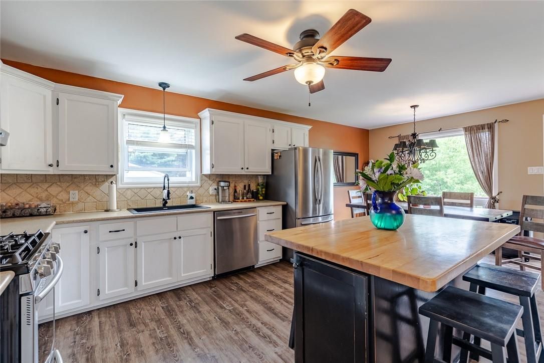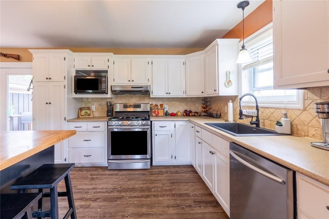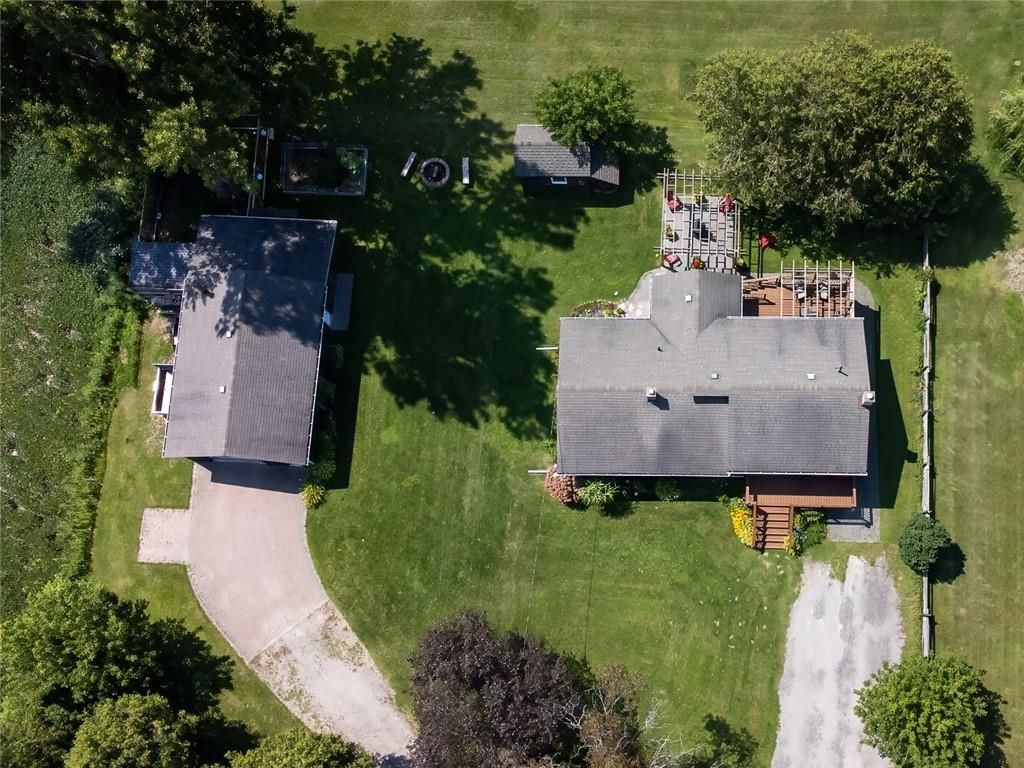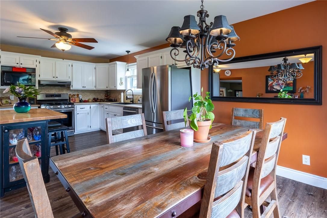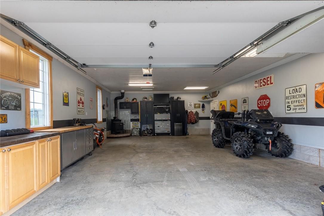 Move in ready smoke and allergy free home can be yours. This home is perfect for entertaining boasting an open concept bright rustic kitchen dining room combo with an abundance of cupboard and counter space plus an island. Step down to a cozy living room with heated electric fireplace. Down the hall is the large master BR with sitting area (could be converted back to 2 BR) and a second good size BR with double closets. Both living room and kitchen access the backyard patio and deck. Basement has a gorgeous open concept full kitchen/dining room and living room space with large bright above grade windows, gas fireplace, double sink, wainscotting and loads of pantry counter and cupboard space. Basement has a good size 3rd B/R with above grade windows and large closet with carpet + a 3 pc Bath. Backyard showcasing a unistone patio with gazebo, plus 10'x20' deck off the kitchen, large shed for storage, 28'x21' fully insulated & heated garage w 40amp panel, extra storage back of the garage.Well built chicken coop run including keeping the chickens. The laundry/utility room has shelving for storage, sump pump, 100 amp panel, well pump, water softener, water purification system. Don't miss out on this very well maintained home!