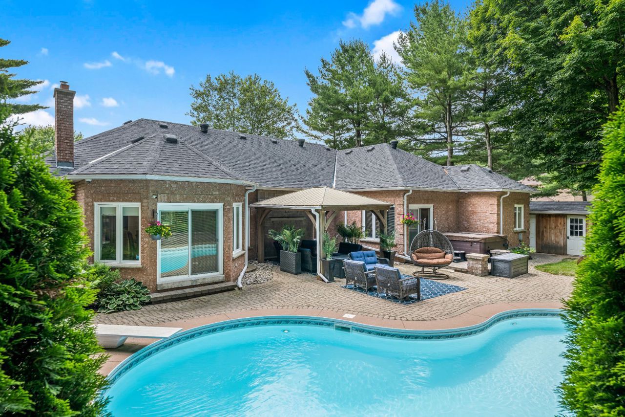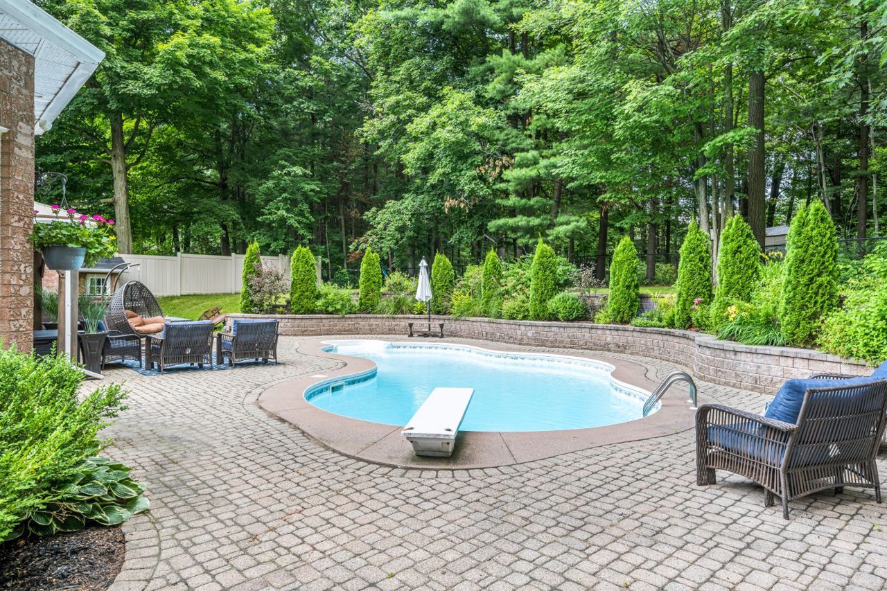 EXPERIENCE UNMATCHED ELEGANCE IN STONEGATE MANOR ON A SPRAWLING CORNER LOT WITH AN IN-GROUND SALTWATER POOL! Welcome to 2 Edgecombe Terrace, on a large .71 acre lot. The exterior features landscaped pathways & a 3-car garage. Hardwood floors, crown moulding & pot lights flow throughout. Main-floor office with French doors, sunken living room with 2-way f/p to the backyard & formal dining room with coffered ceiling, stone f/p & w/o. The eat-in kitchen boasts s/s appliances, granite countertops & wall-to-wall cabinets. The primary suite offers a w/i closet, a luxurious 5pc ensuite & a w/o. Two additional bedrooms share a 4pc bathroom. The lower level includes a guest suite with a 4pc semi-ensuite, spacious rec room with a bar & an extra bedroom. Private outdoor paradise with in-ground saltwater pool, pool house, entertainers’ patio, outdoor fireplace, perennial gardens & hot tub. Conveniently located near parks, Snow Valley Ski Resort & Golf Courses, only 10 minutes from Barrie.