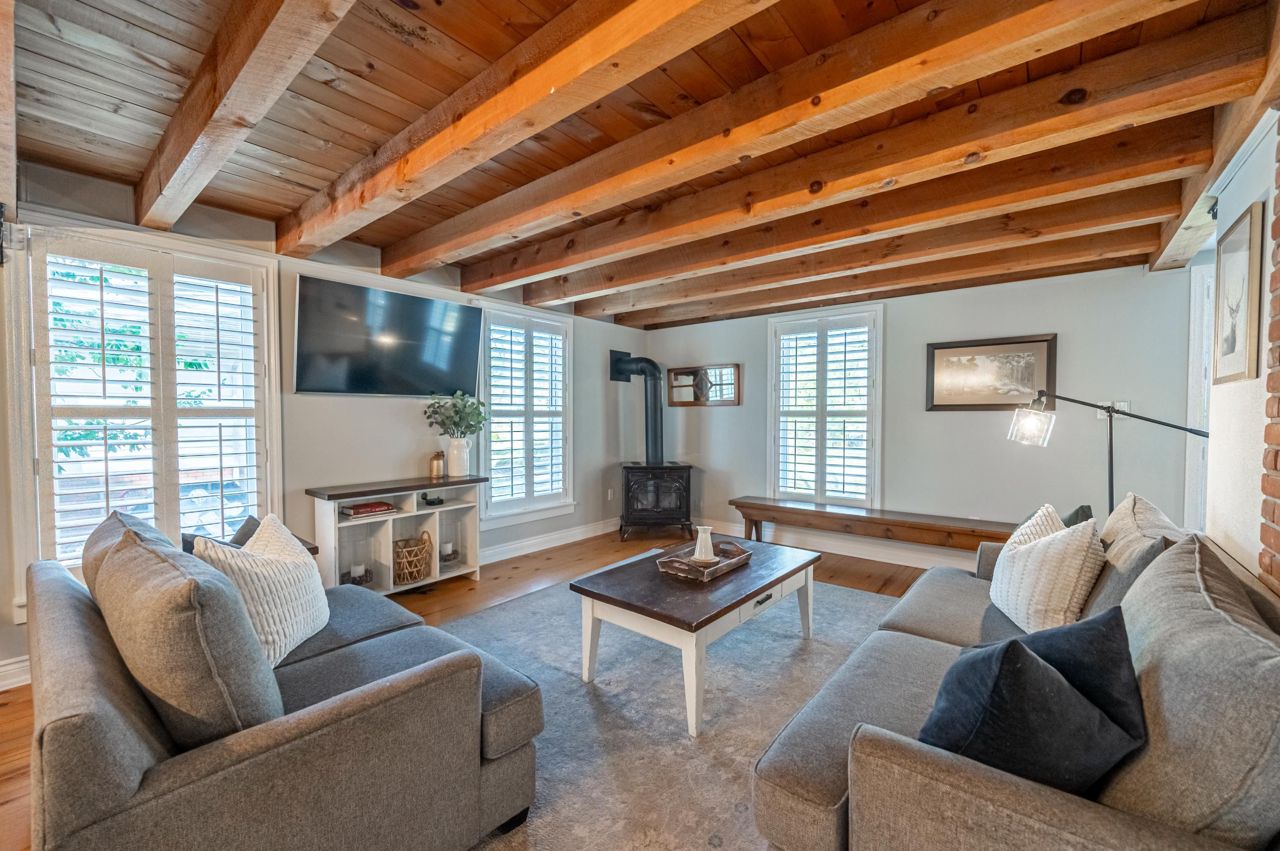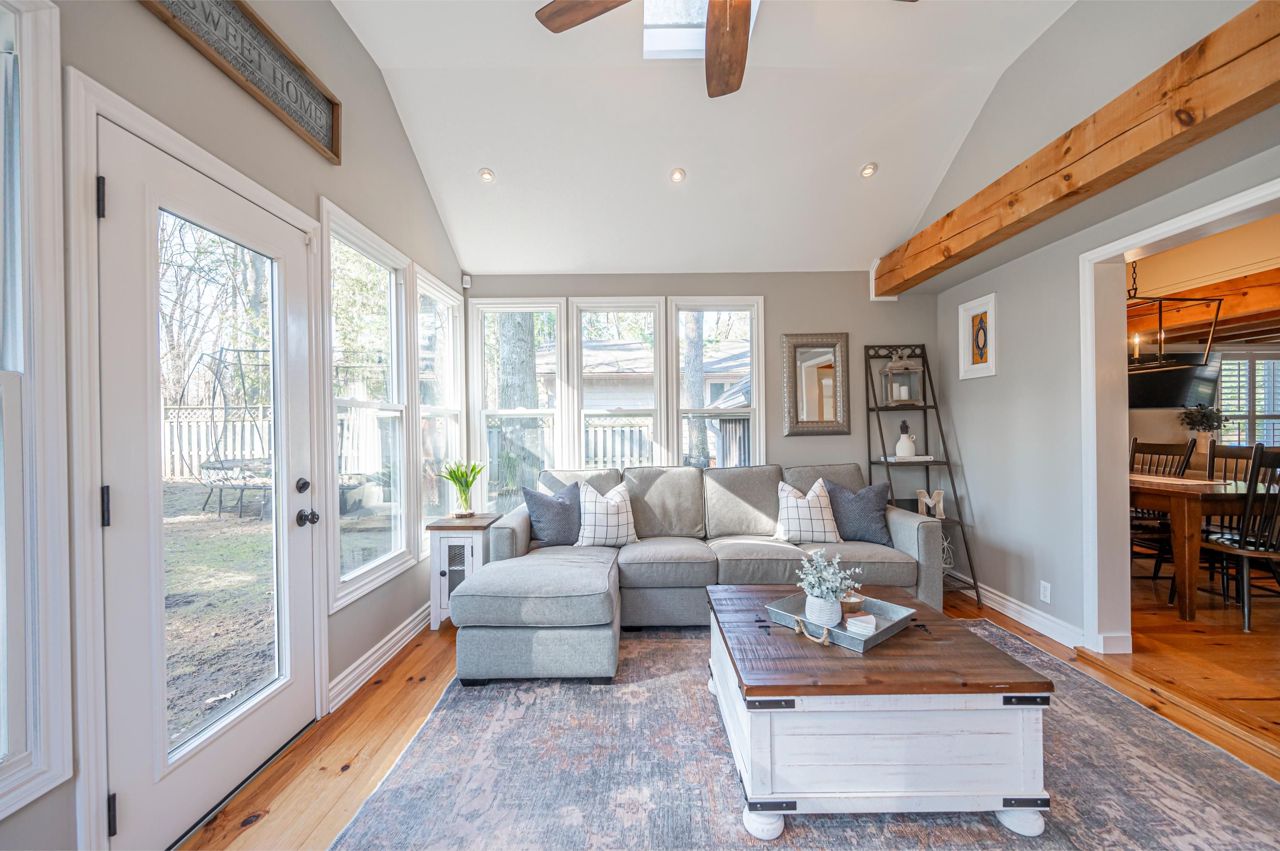 STUNNING HOME ON NEARLY HALF AN ACRE WITH MODERN UPGRADES & A DETACHED 10X16 SHOP! Welcome home to 3 Ghibb Avenue in Springwater. This charming property, nestled in the sought-after community of Anten Mills, seamlessly combines rustic allure with contemporary comforts. Located in peaceful Springwater, it offers easy access to Simcoe County trails and the vibrant city of Barrie. Situated on a generous, nearly half-acre lot enveloped by mature trees, the home showcases a timeless board-and-batten exterior and a convenient double-car garage with inside access. The recently renovated kitchen boasts sleek quartz countertops and high-end appliances, including a gas range, while the adjacent formal dining room features a convenient built-in servery. In the living room, exposed wood beams and brick accents complement the gleaming hardwood floors and a newly installed gas fireplace, leading seamlessly to a sun-drenched four-season sunroom ideal for year-round relaxation. With a main floor bedroom and powder room, an upper-level primary suite complete with an ensuite and private balcony, and a newly finished lower level (completed in 2022) featuring a stylish wet bar with quartz countertops and a luxurious bathroom boasting an oversized shower, this property offers ample space for both daily living and entertaining. Outside, the expansive, fully fenced yard provides a private retreat, complete with a detached shop with hydro, a storage shed, interlock walkways, and a spacious patio with a firepit area, perfect for hosting gatherings amidst the serene beauty of nature. #HomeToStay