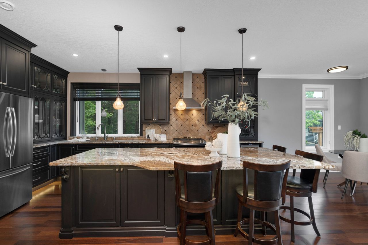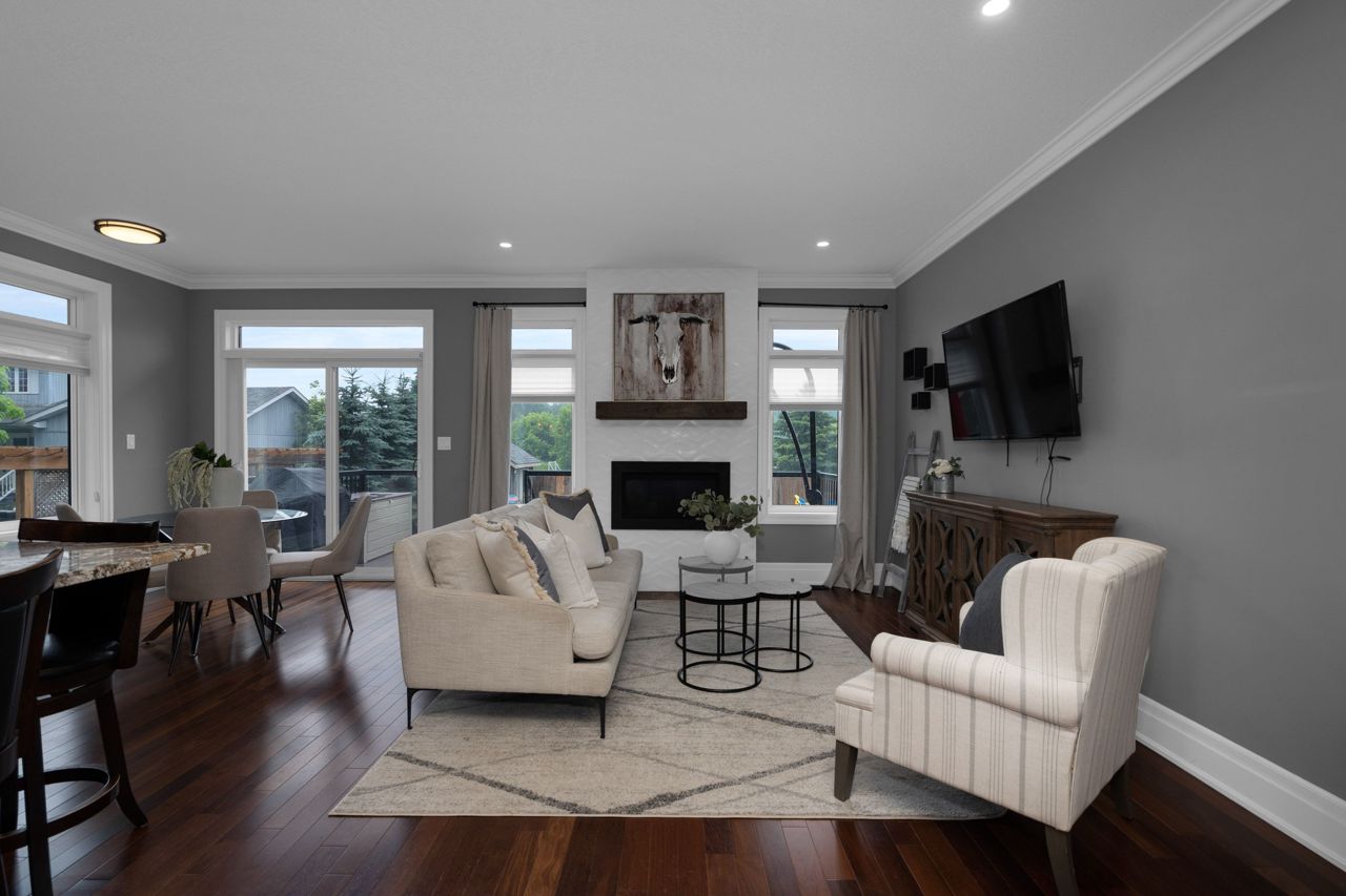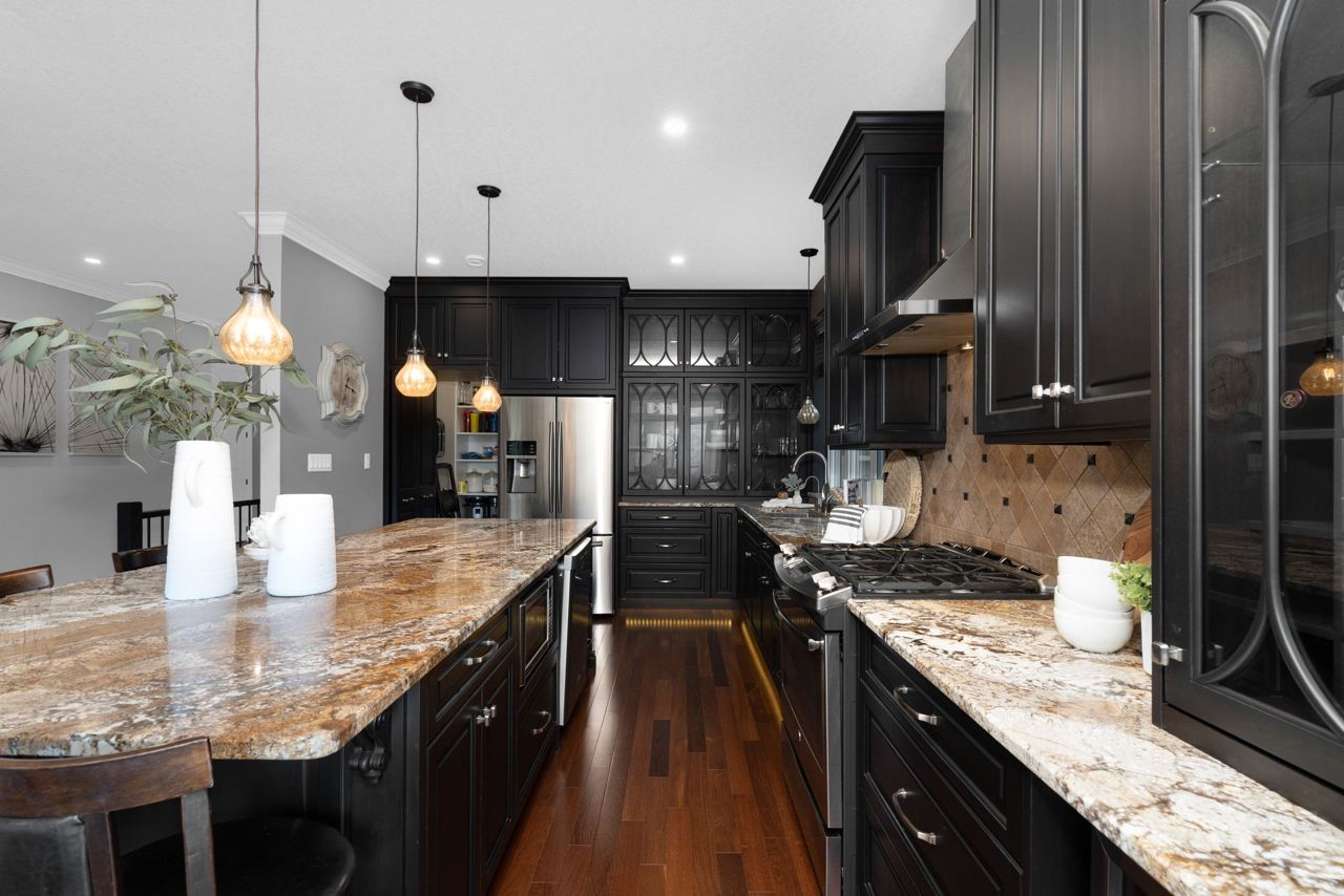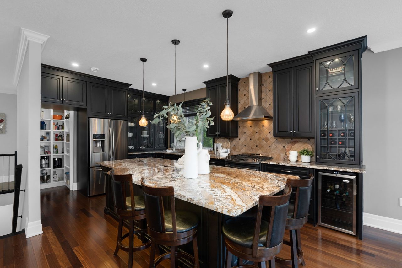 This immaculate home features a 2-car heated garage & features 4 bedrooms, 3 full baths, a fully finished bsmt & mn floor laundry. Step inside and be greeted by the spacious & open concept layout, complemented by Brazilian chestnut flooring that flows seamlessly throughout the home. The kitchen is a true chef's delight, w/ sleek granite countertops, ample storage space, hidden pantry, slow close cabinetry & more. 9 ft California knockdown ceilings, 8' doors, and crown molding are just some of the many features you will appreciate in this home. Escape to the luxurious primary suite, complete with its own en-suite bath featuring modern finishes, heated floors, double sinks & a w/i shower. Fully finished bsmt offers even more living space, with lg recreation area, a third full bath, & plenty of storage. Enjoy the convenience of a prime location, w/ easy access to local amenities, schools, parks, & more. This turnkey home has been meticulously maintained & updated with modern finishes.Tire Rack in Garage, whirlpool wine fridge, bar fridge & kegerator