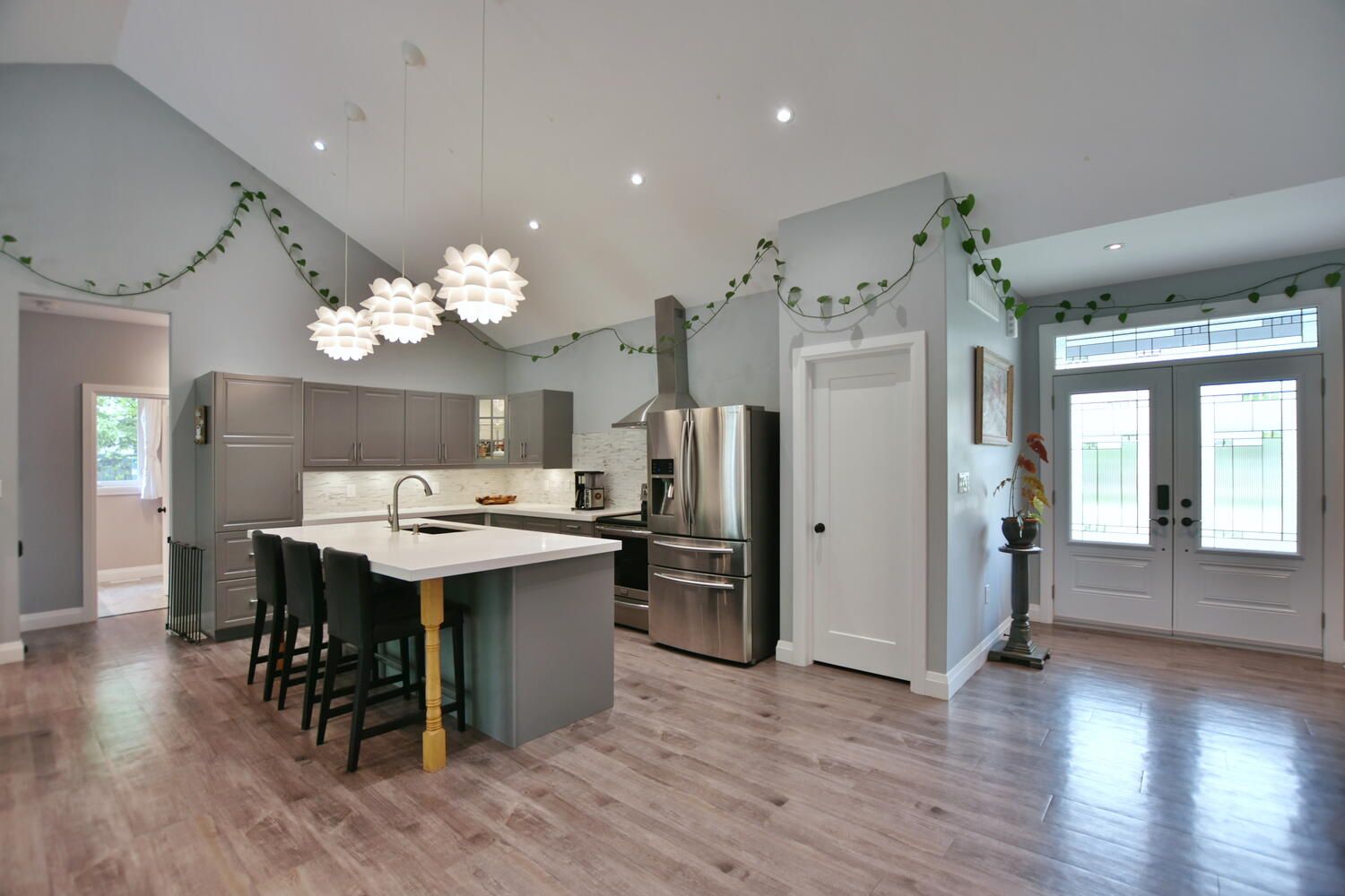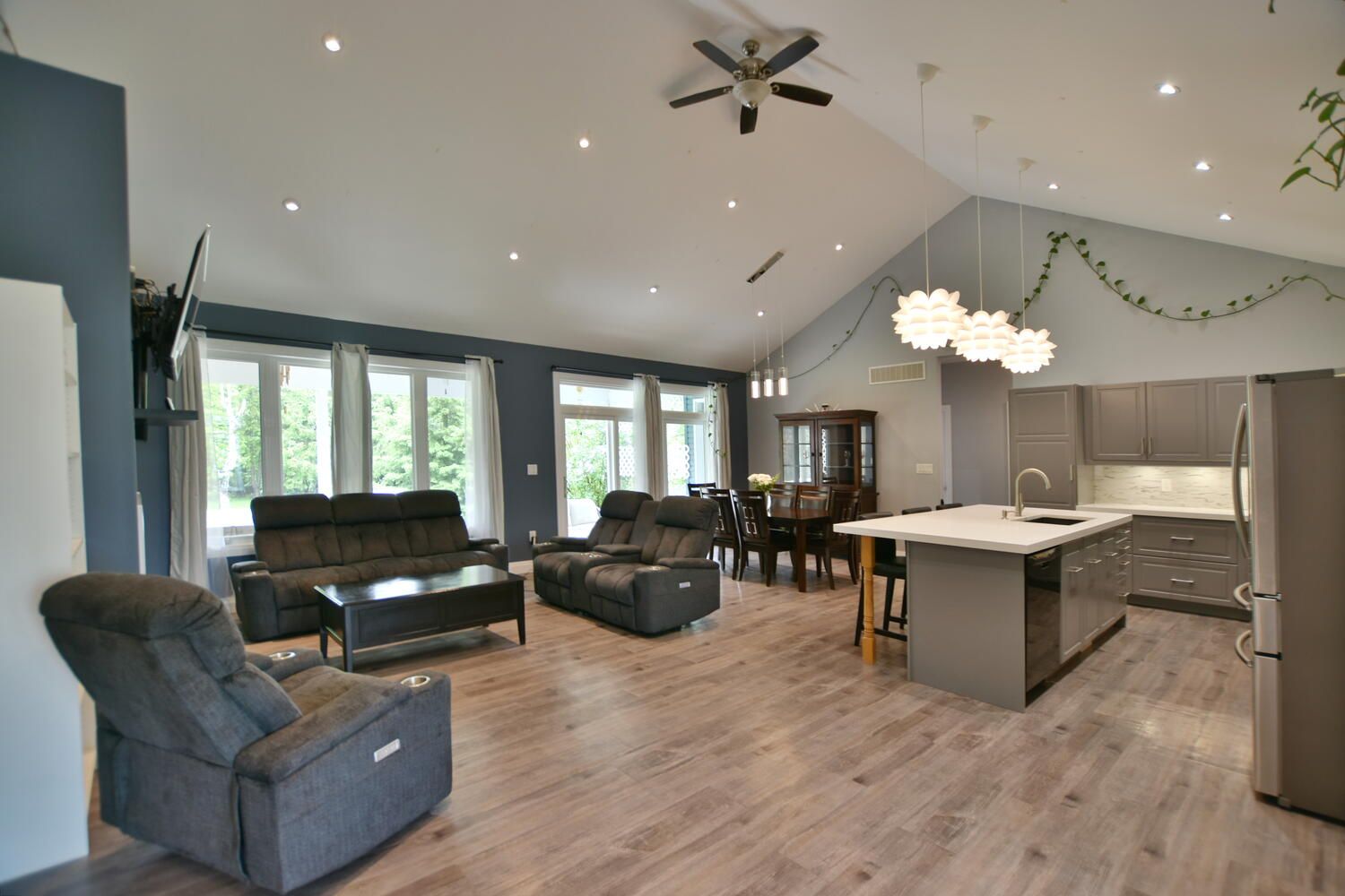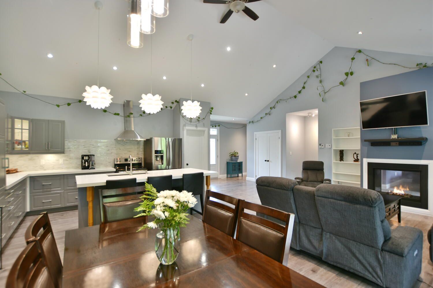 Welcome to your dream home! This stunning, one-floor living oasis offers a seamless blend of modern luxury and rural tranquility. Nestled in a serene setting just a short drive from the vibrant Wasaga Beach, this property boasts an array of impressive features designed for comfortable and stylish living. Step inside to an inviting open-concept living space highlighted by vaulted ceilings, creating an airy and spacious atmosphere. The upgraded kitchen is a chef's delight, featuring peek-a-boo drawers, slow-close hinges, and sleek quartz countertops. A tasteful backsplash and a walk-in pantry provide both beauty and functionality. This home includes three generously sized bedrooms, perfect for family or guests. The primary suite is a true retreat with a walk-in closet and a luxurious three-piece ensuite. Indulge in the walk-in glass shower, complete with a rain shower and invigorating body sprays. The living area centres around a unique two-sided propane gas fireplace, offering warmth and ambiance both in the Primary Bedroom and living room. Step outside to the covered patio, where you can unwind in the hot tub and enjoy the privacy of your expansive yard. Additional features include a double car garage, providing ample space for vehicles and storage, and a high and dry crawl space ideal for additional storage needs. The home is equipped with on-demand hot water, ensuring energy efficiency and convenience. Experience the perfect blend of rural charm and modern amenities in this exceptional home, where every detail has been carefully considered for your comfort and enjoyment. Don't miss the opportunity to make this your forever home!