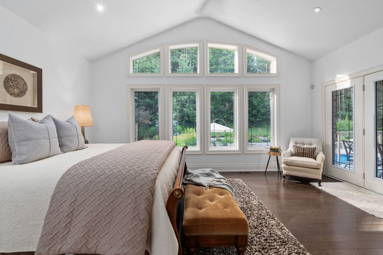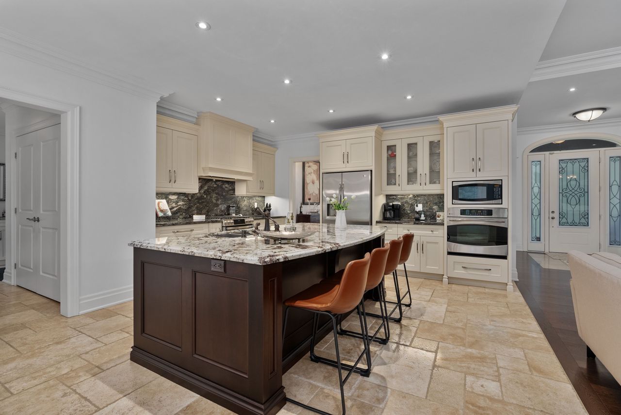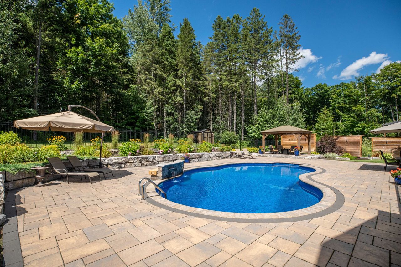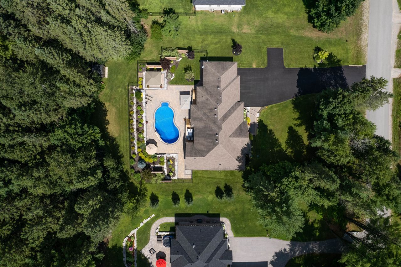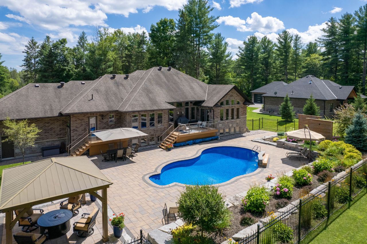35 Gallagher Cres boasts 5,000 sq of living space full of natural bright light, an estate lot of over 1 acre a landscaped yard complete with a pool, multiple decks, ample patio areas for entertaining and beautiful gardens. A gorgeous entryway, full of natural light, welcomes you into the home with travertine tile and maple hardwood floors that flow effortlessly into the open-concept kitchen and living space. High ceilings and large windows bring the gorgeous landscaping of the property indoors to create an inviting and calming atmosphere. The 2,512 square foot main floor offers three bedrooms, including the primary. The vaulted ceilings in the primary bedroom create a separate oasis from the rest of the home, and the large windows provide gorgeous daylight. The primary en-suite is a stunning five-piece bathroom with large double-sink vanity with stone countertops, a spacious glass shower, and a stand-alone soaker tub. This en-suite offers the perfect reprieve from your busy work week.The Fully Finished Basement Offers Extra Living Space With Two Additional Bedrooms And A Jack-And-Jill Bathroom With Heated Floors, As Well As A Home Office. A Separate Games Area And Theatre Room Provide Abundant Space For Fun With Family.