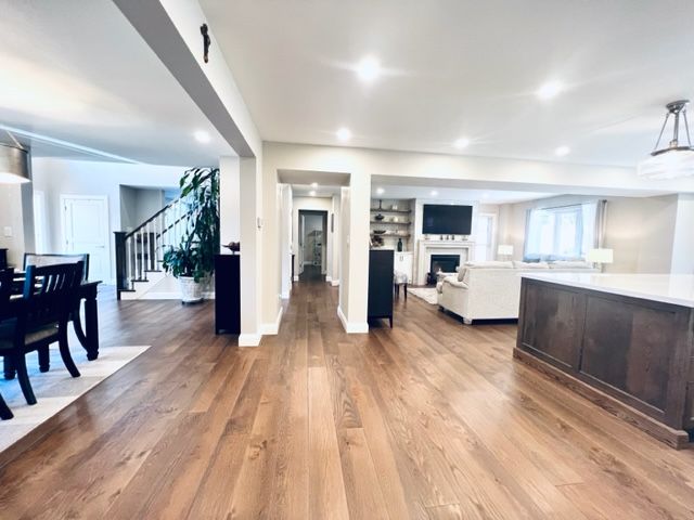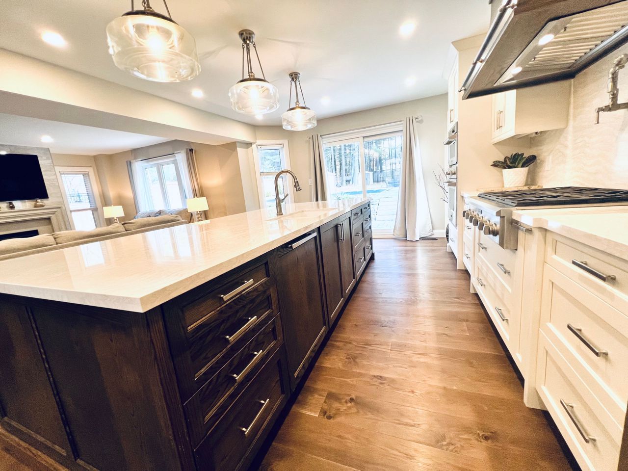 Welcome to this elegant picturesque home on 0.71 acre (114 ft x 271 ft) lot in the prestigious Stonegate Estates. Interior and exterior updates in 2021-2022. Over $350K (new 2021) of extensive interior updates & high-end finishes on the main & 2nd flrs by a professional interior designer. Main flr updates include high-end custom-built chef's kitchen with a huge 11ft x 4.5 ft quartz breakfast island with built-in cabinetry, quartz counters & backflash, hi-end built-in Monogram SS kitchen appliances, pot-filler, soft-close white cabinetry, pantry. Main flr features a Family rm with Cambria gas fp w stone & quartz frame, a bright living rm, spacious dining rm, an office, a powder rm, & a laundry/mud rm. The second flr has the Primary bedrm features a custom built walk-in closet, a 5 pc ensuite with free-standing tub & a huge glass shower. The 2nd flr has 3 other spacious bedrms, closet shelvings, and a full bathroom. Both main and 2nd flrs have hi-end wide-plank hardwood flooring (carpet free), soft-closed cabinetry, and quartz counters. The backyard entertainment oasis has over $200k (new 2022) of extensive updates that features a 32ft heated I/G pool, pool cabana, landscaped patio with armour stones, natural stone steps, interlocking stone patio, 5-seat hot tub, pressure-treated privacy fence, new sod, and perennial gardens. You'll enjoy the ultimate privacy, serenity, and mature trees. The unfinished basement awaits your creativity with its concrete walk-up entry (2022), 2 sump pumps, bath rough-ins, cold rm with shelving, and storage shelving. Front of the house features I/G sprinkler (2022), perennial gardens, interlocking steps & driveway. 3-car garage with door entries to house and yard and custom New Age storage unit (2020). Steps to school bus stop. Mins drive to schools, mall, hospital, lakeshore, ski resorts, stores and amenities. Don't miss this opportunity to own this beautiful property!Mins. drive to H400, mall, stores, schools, hospital, Georgian college, lakeshore, downtown, farm markets, ski resorts.