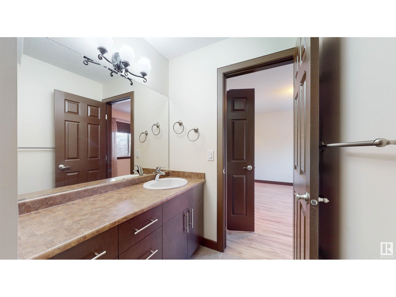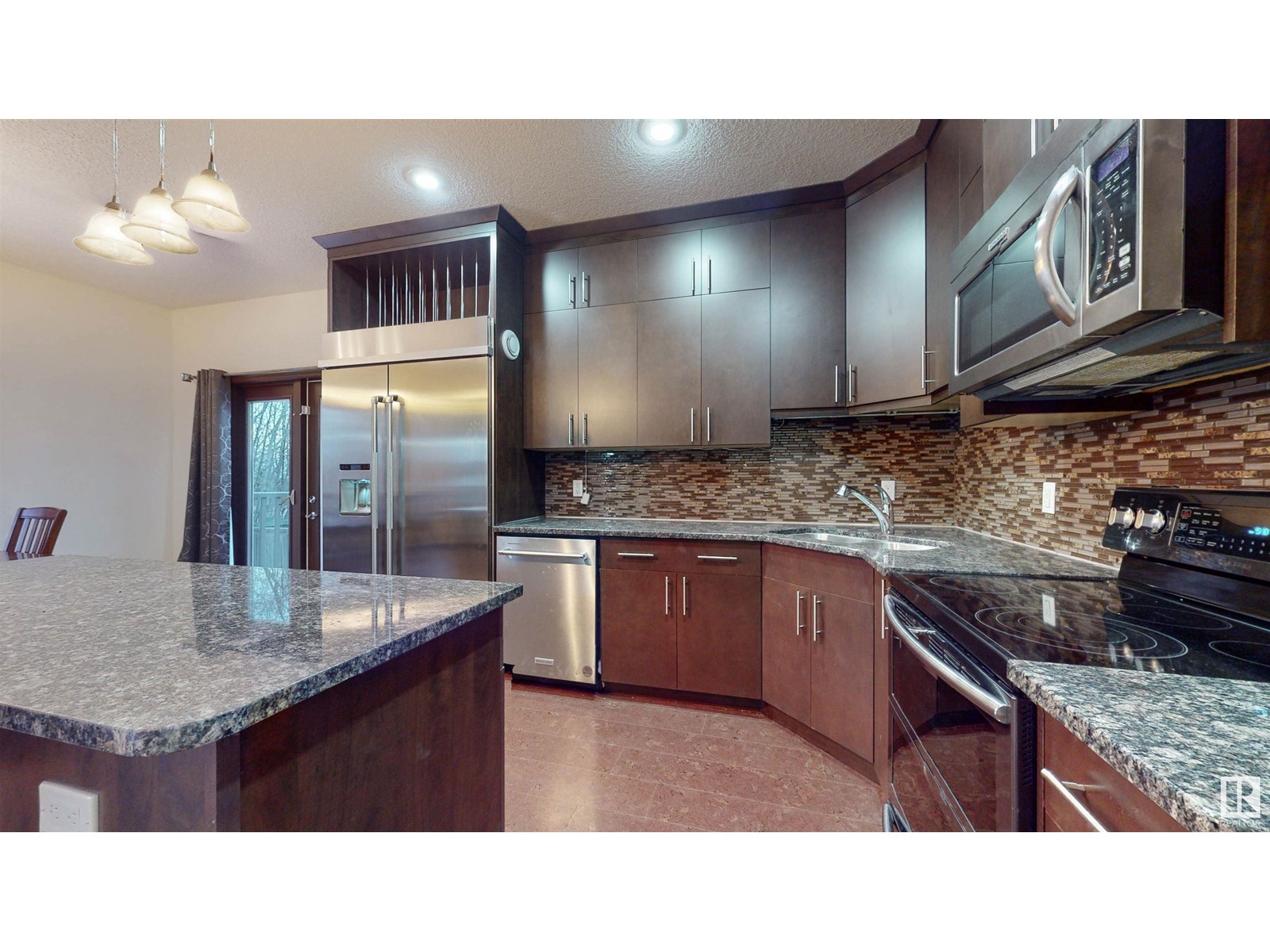 Spacious fully finished 2 storey home backing onto treed greenspace and steps from Jubilee Park. Upper level provides 4 bedrooms each with walk in closets and ensuites (2 bedrooms share jack & jill ensuite). Spacious laundry with sink also on upper level for convenience. Main floor has spacious foyer with walk in closet, office/den, living room, dining and kitchen has floor-to-ceiling dark chocolate cabinetry, massive walk in pantry and newly updated granite counters, faucets & cork flooring. Garden door leads to maintenance free deck & lower concrete patio and into the private backyard. Lower level has in-floor heat for added comfort, oversized windows in the spacious family room & flex room which can be used for 5th bedroom (no closet), along with 3pc bath, storage room & mechanical room. (id:22211)