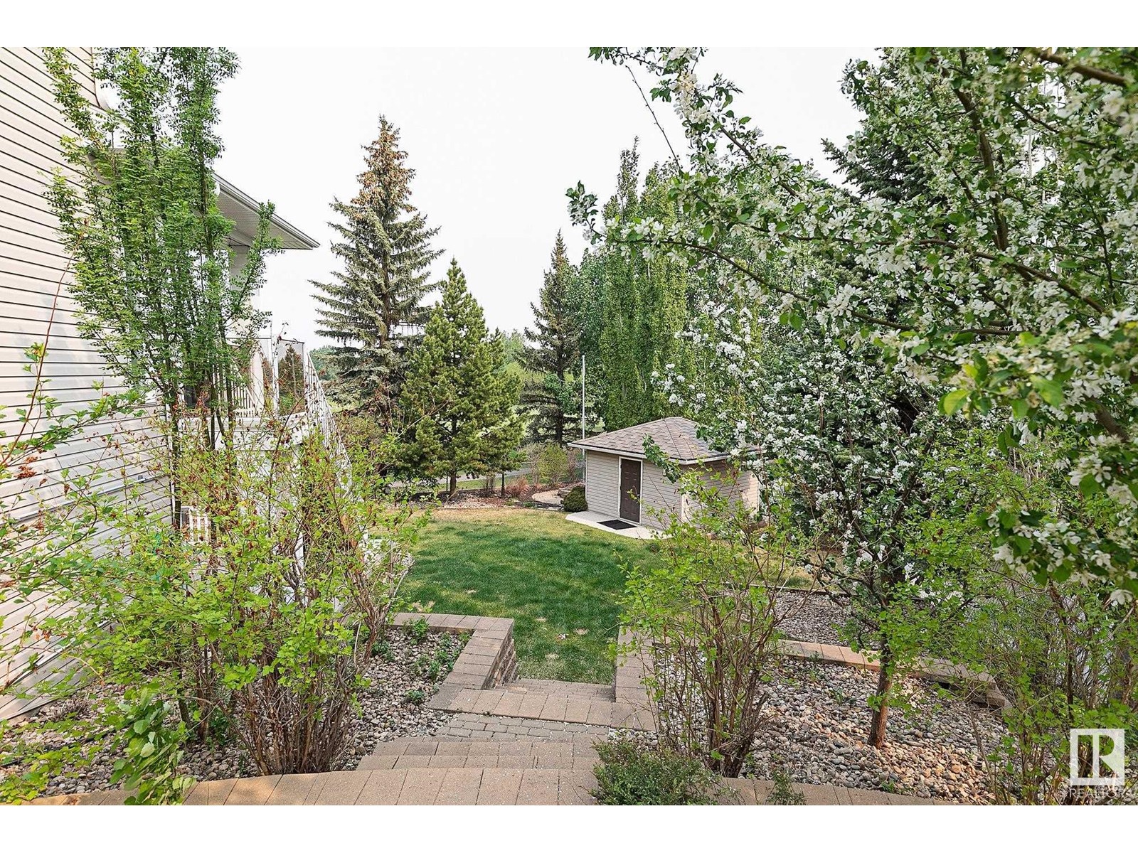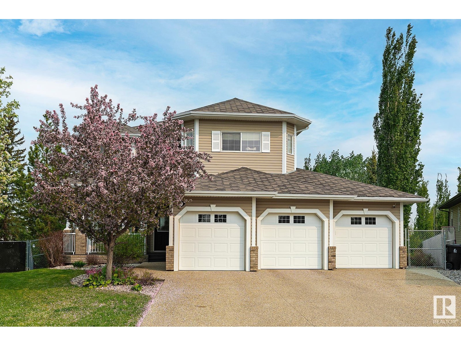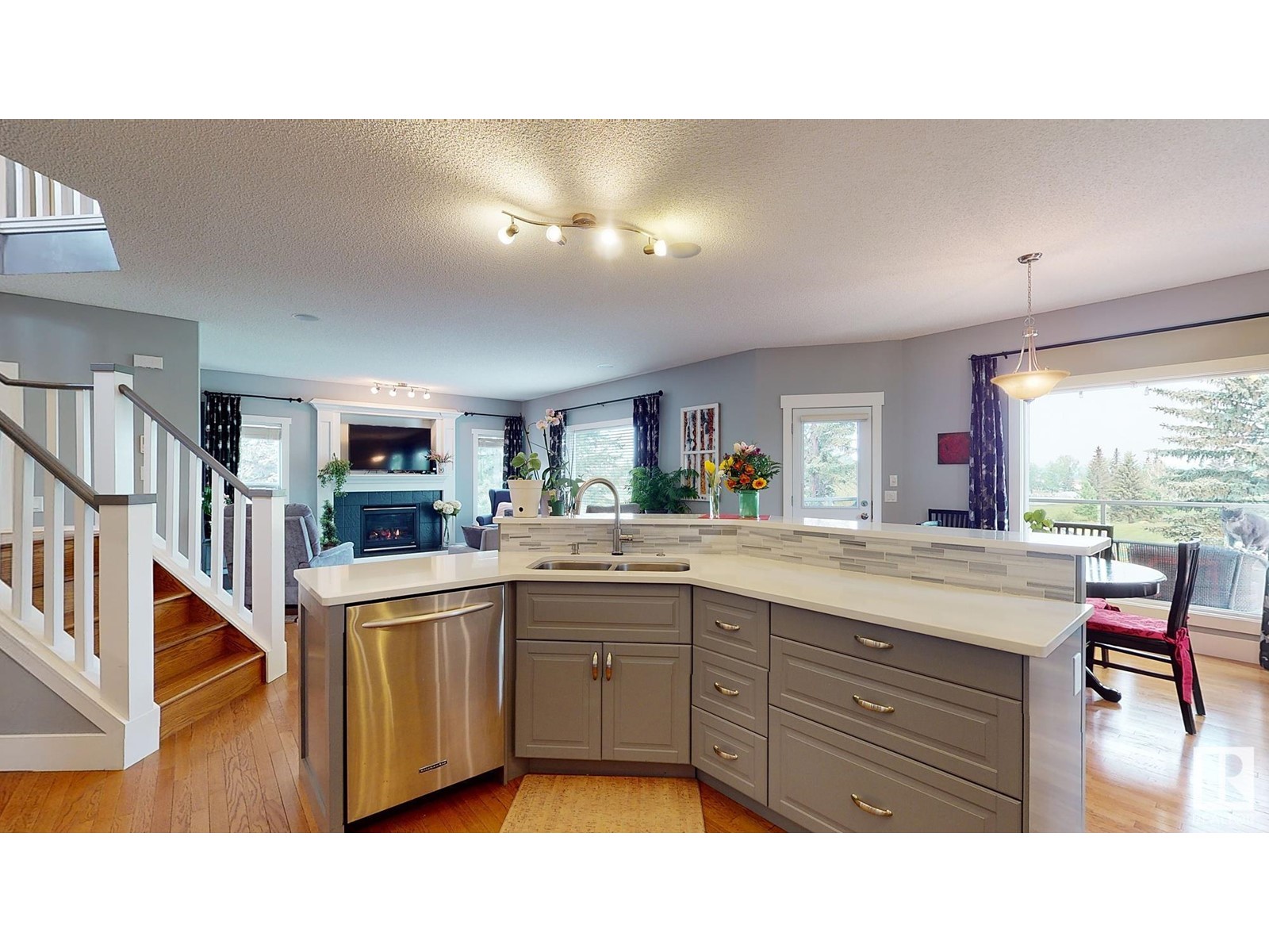 LUXURY ON THE LINKS in a CUL DE SAC! This STUNNING 2 story home embraces many STYLISH features with near 2600sf PLUS a FF walkout bsmt! MODERNIZED throughout with NEW kitchen /new paint /flooring /upgraded bathrooms etc. Located on an enviable PIE lot backing the 2nd hole on the LINKS Golf Course! 2 POND VIEWS! Custom designed kitchen boasts SS appl and modern to ceiling cabinetry. *Front verandah *M/Fl office *den *3+1 bdrms *mud room w/laundry, cabinets & sink *bonus rm *hot tub *2 FP. Unwind in the master suite w/ corner FP, sitting area +5-pce. Bsmt has 4th bdrm, FR, 4-pce bath & opens onto huge aggregate patio for ultimate outdoor entertaining! Enjoy the picture perfect setting from 2 levels of spacious patio & low-maint decking, 300+plants /shrubs /trees lining the perimeter of the EXPANSIVE yard offering privacy & tranquility! *fire pit *14x14' garden shed *brick walkway with retaining walls *Underground sprinkler *AIR CON *TRIPLE garage *Security sys *B/I Stereo *2 decks. VIEWS are OUTSTANDING! (id:22211)